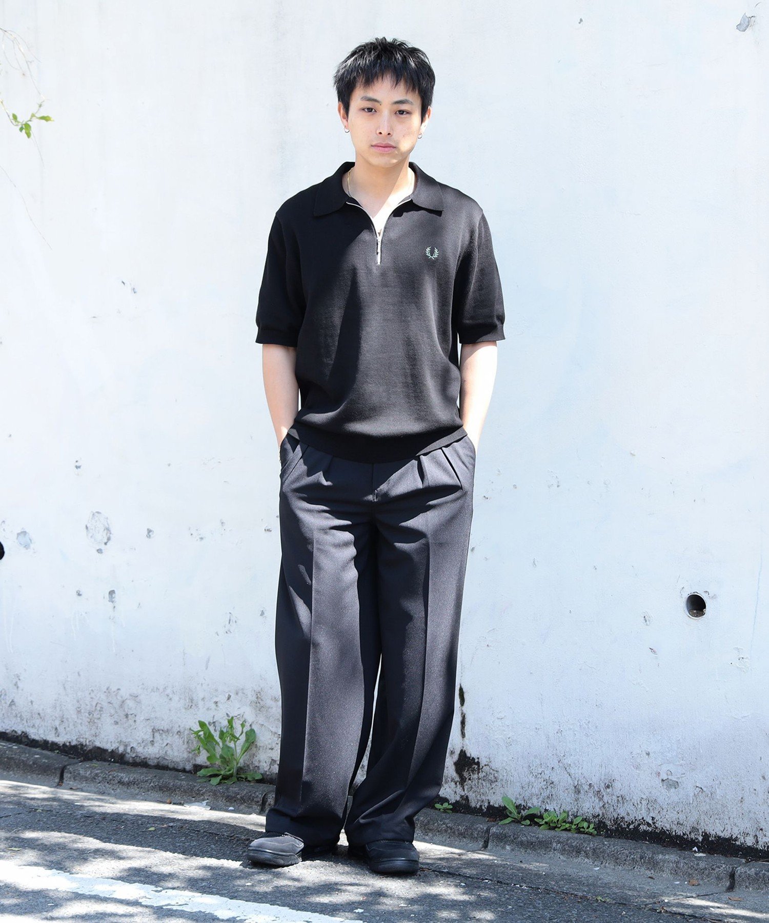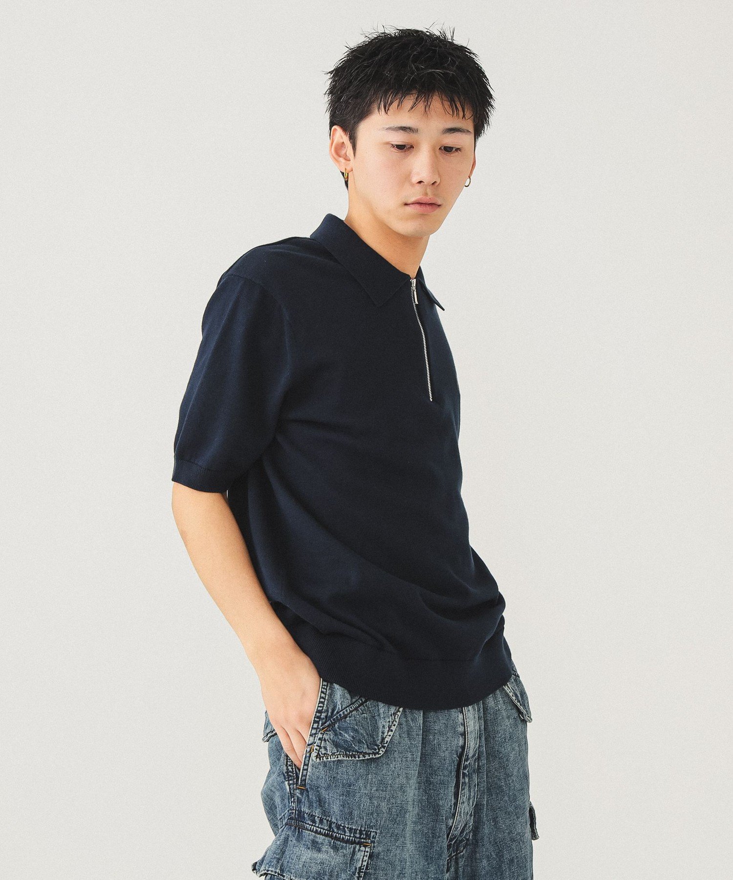 BEAMS 【別注】FRED PERRY / ハーフジップ ニットポロ ビームス メン トップス ポロシャツ ネイビー ブラック【送料無料】