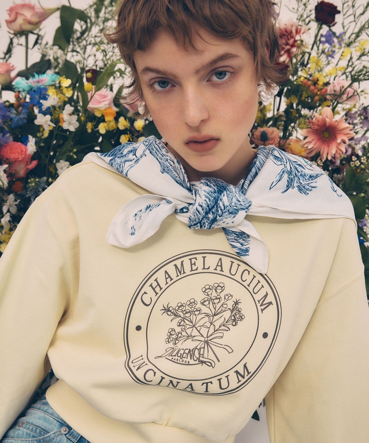 【SALE/18%OFF】VIS 【DILIGENCE PARLOUR】VIS別注モデルフラワーロゴスウェット【セットアップ対応】 ビス トップス スウェット・トレーナー ブルー イエロー ネイビー【送料無料】