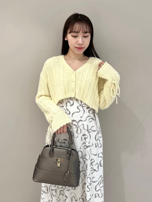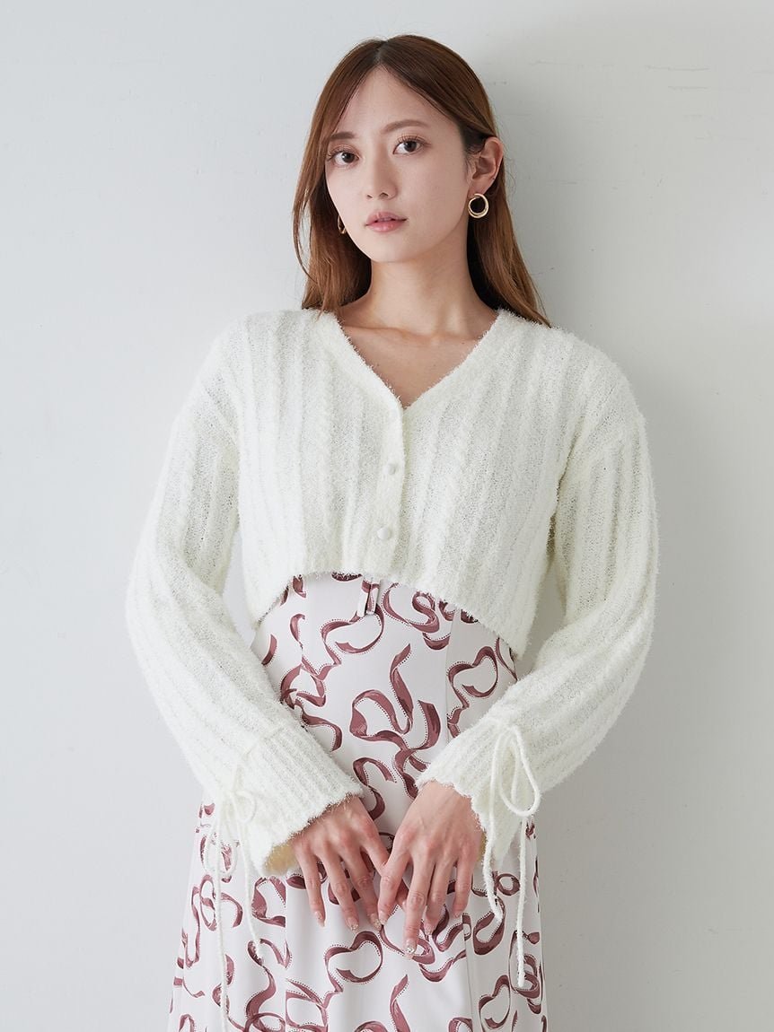 SNIDEL ケーブルリボンカーディガン スナイデル トップス カーディガン イエロー ピンク ホワイト【送料無料】