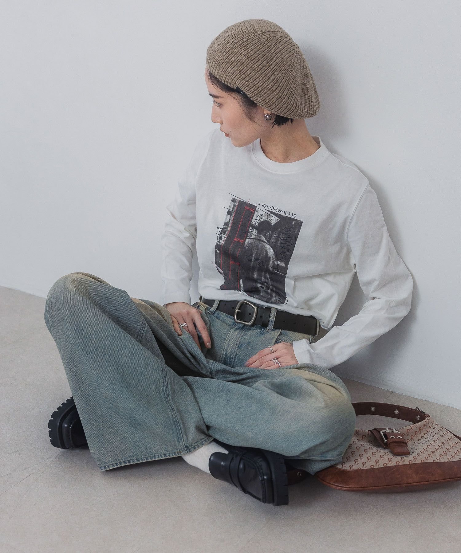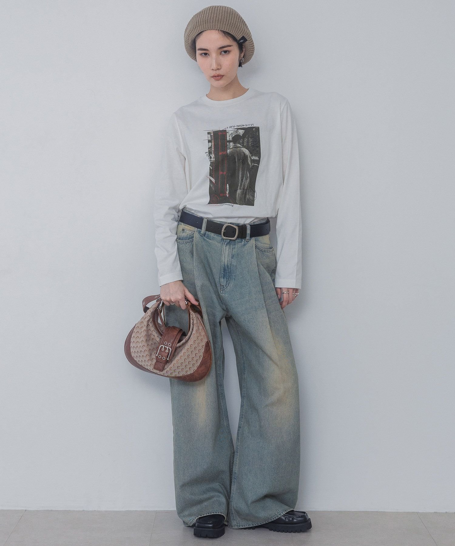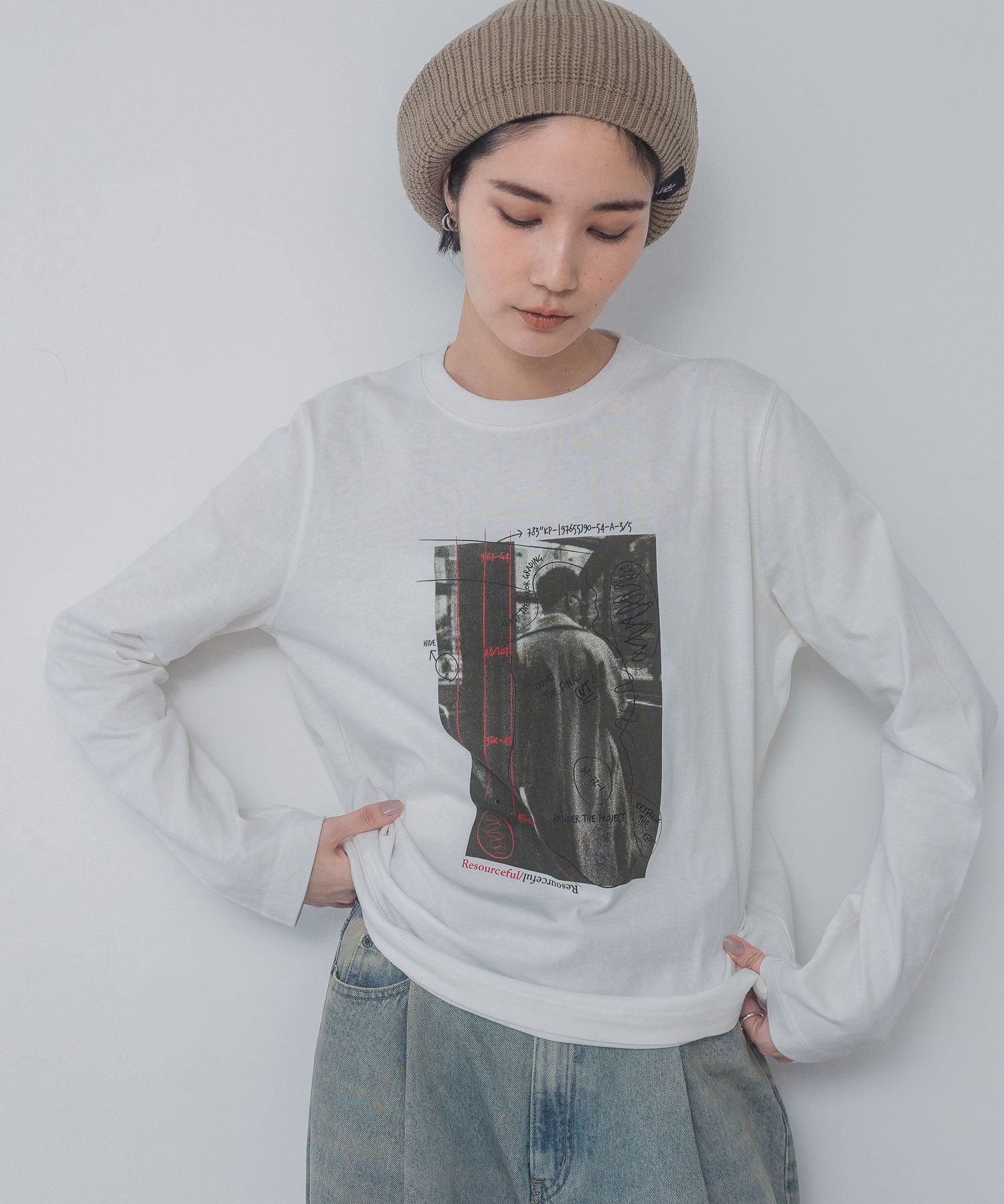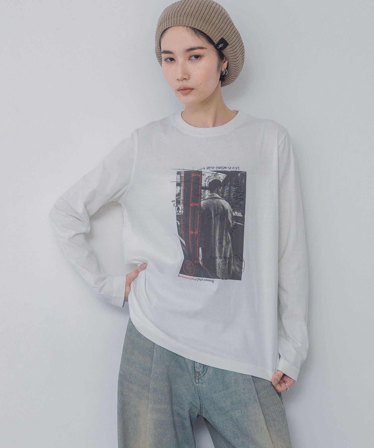 【SALE/30%OFF】JEANASIS フォトアートグラフィックロンTEE ジーナシス トップス カットソー・Tシャツ ホワイト グレー ブラック