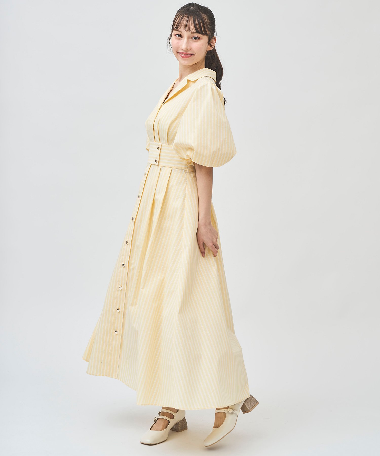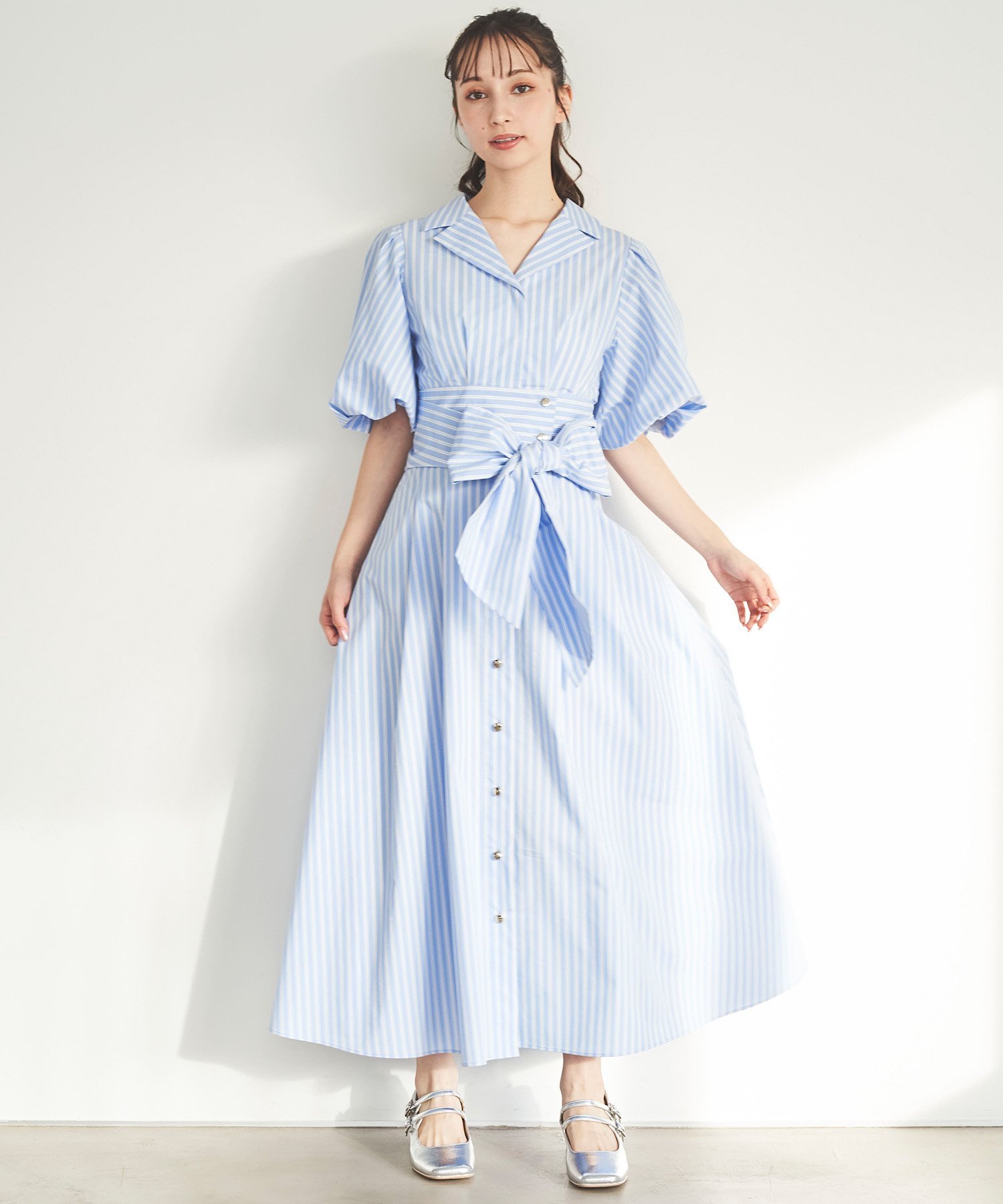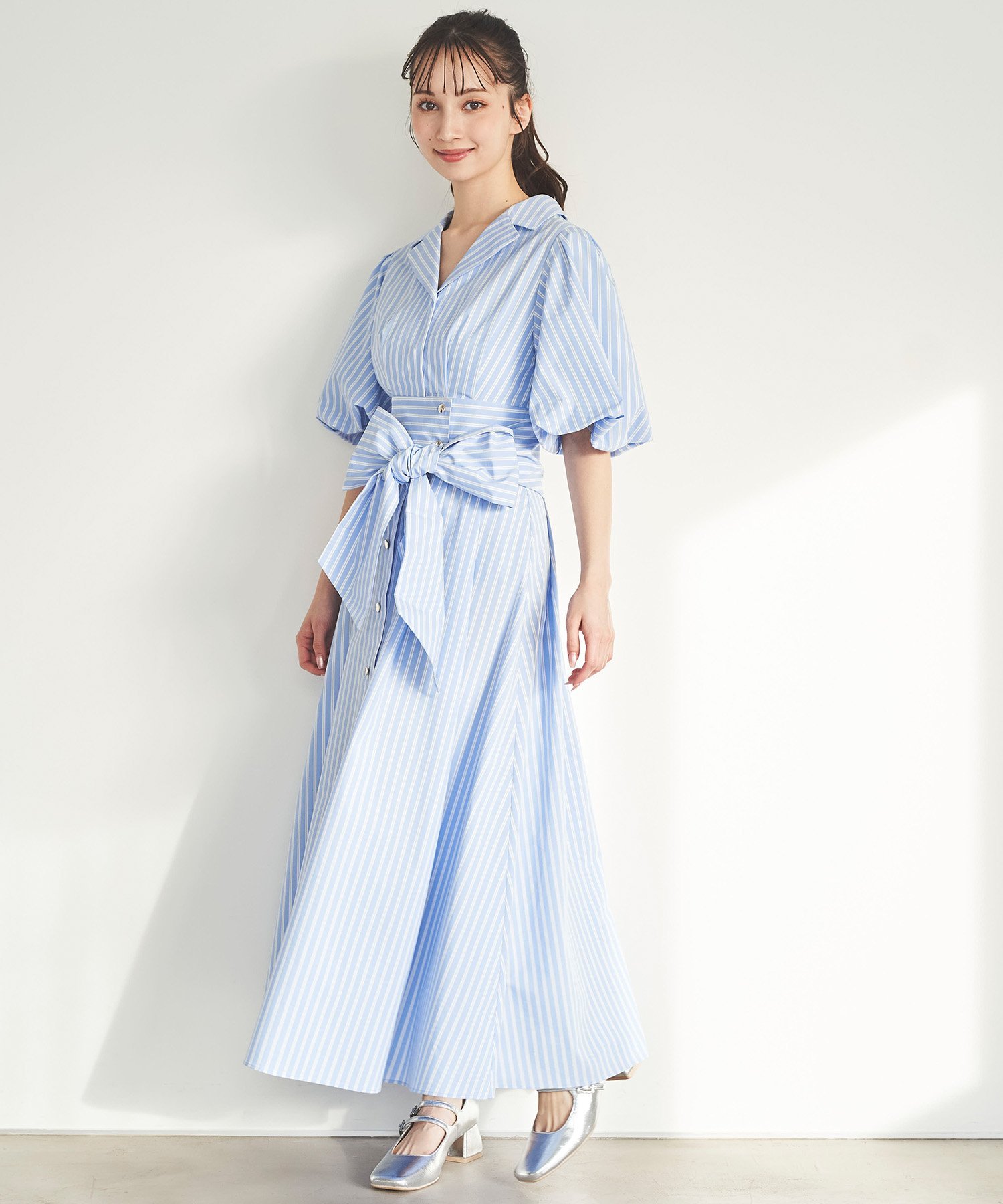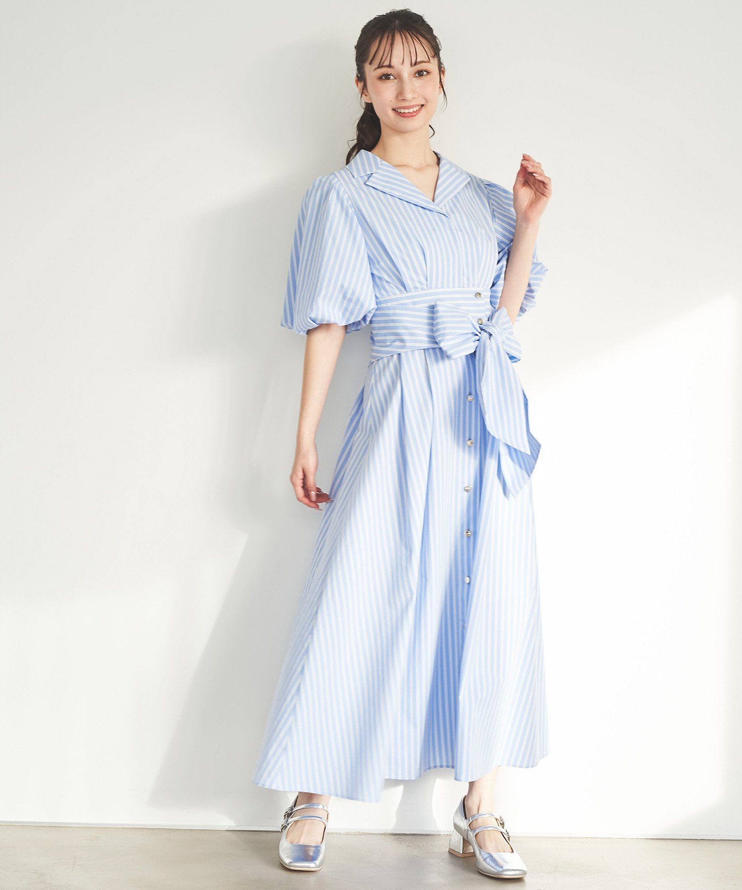 31 Sons de mode パフスリーブテーラードシャツワンピース トランテアン ソン ドゥ モード ワンピース・ドレス ワンピース ブルー ネイビー イエロー ホワイト【送料無料】