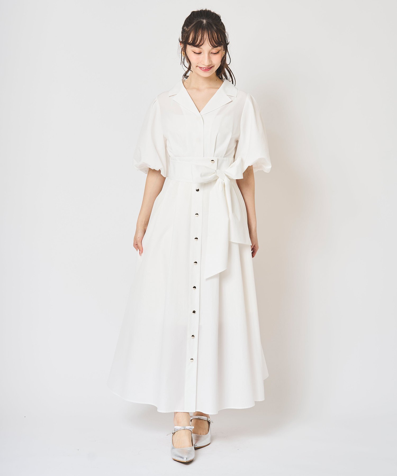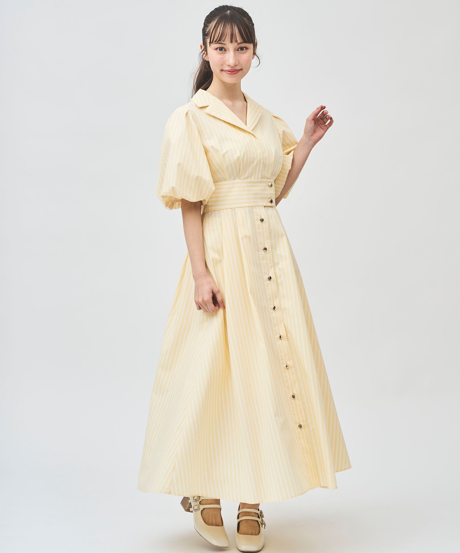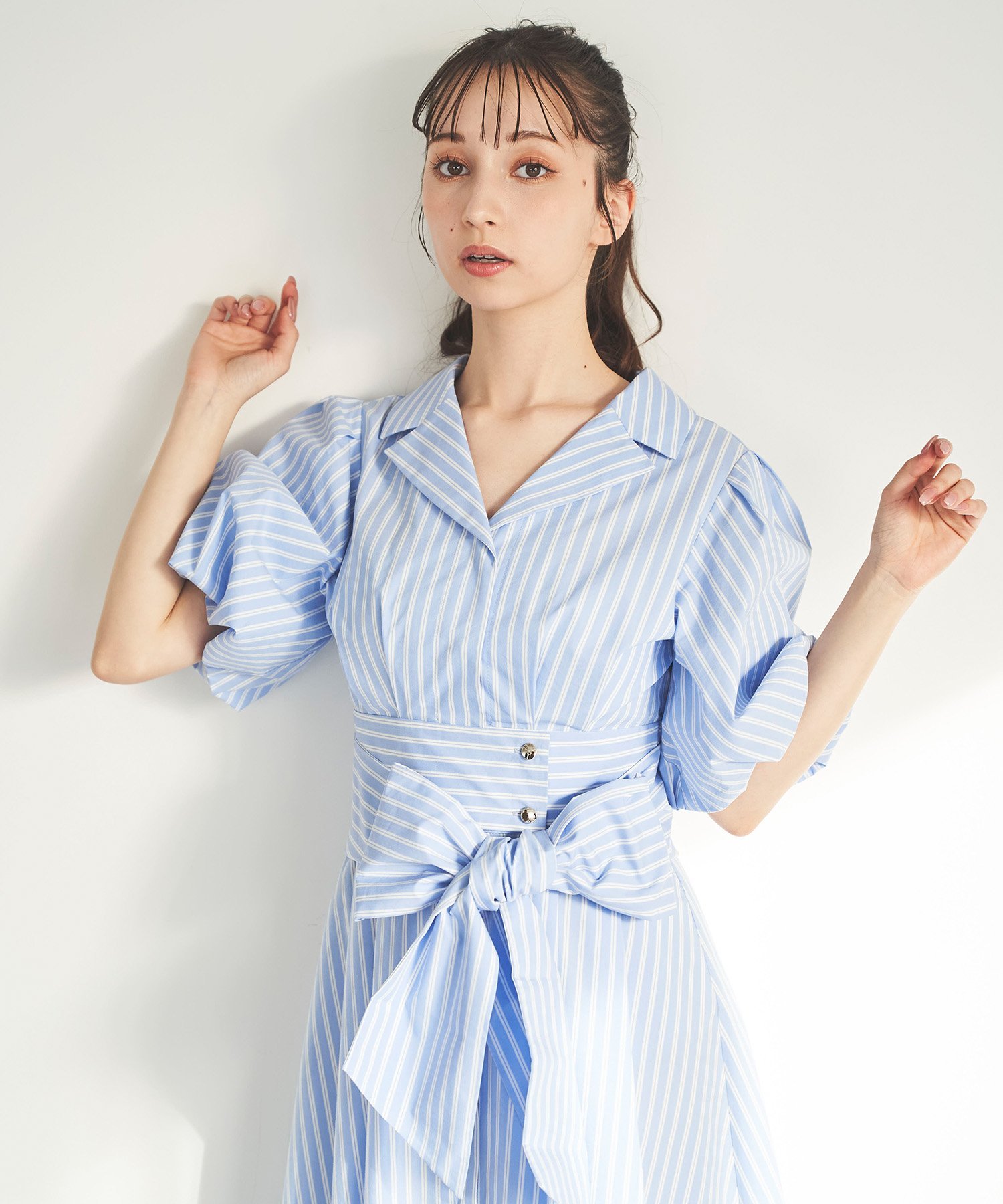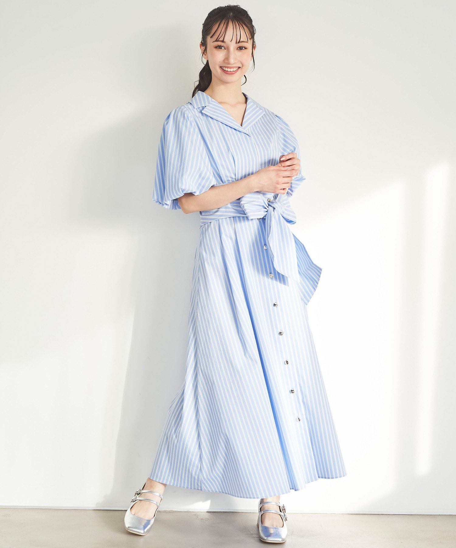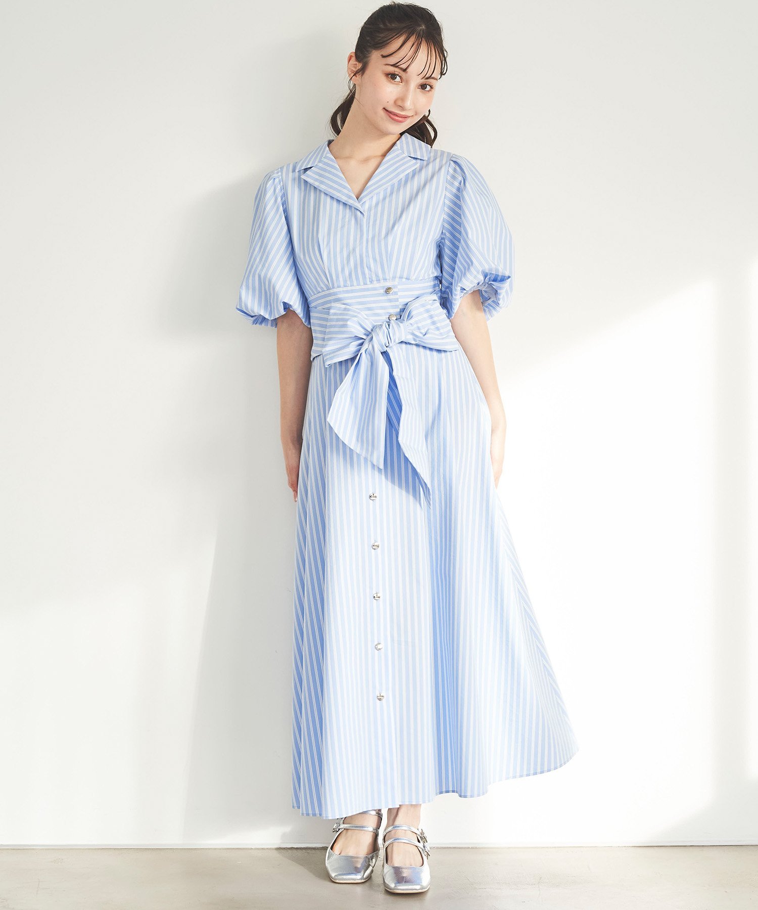 31 Sons de mode パフスリーブテーラードシャツワンピース トランテアン ソン ドゥ モード ワンピース・ドレス ワンピース ブルー ネイビー イエロー ホワイト【送料無料】