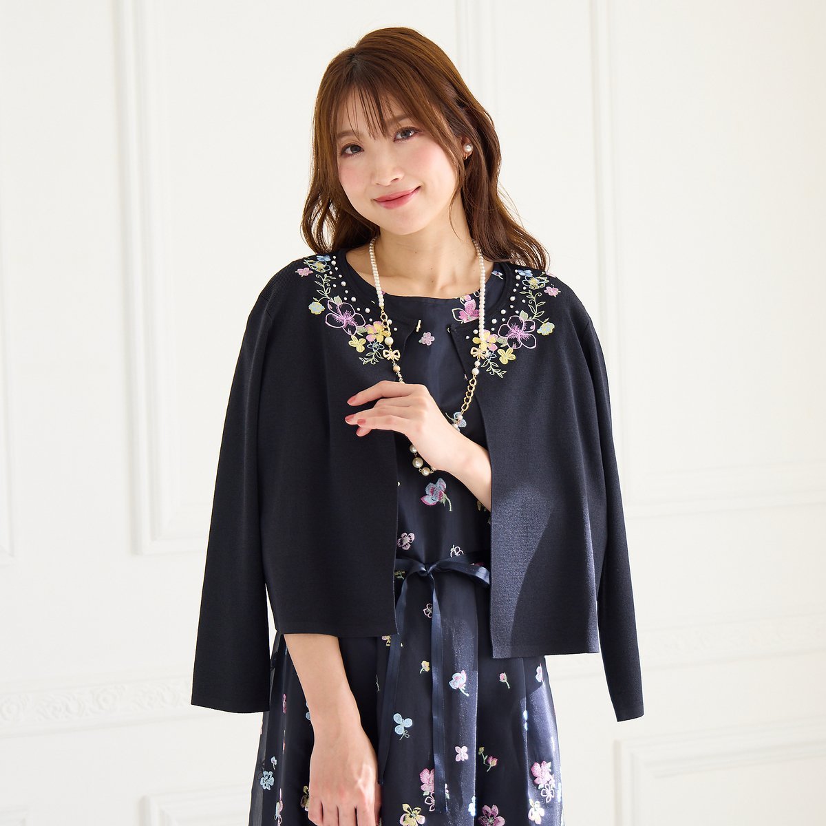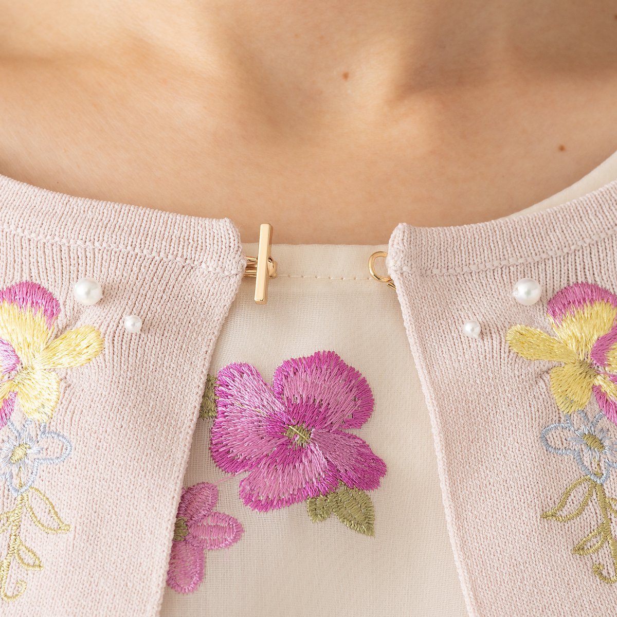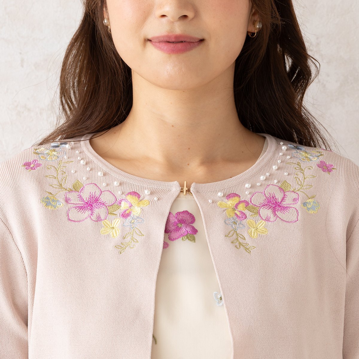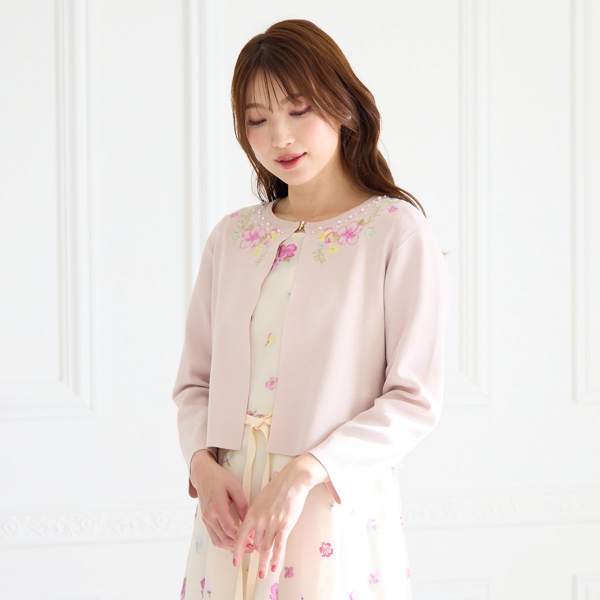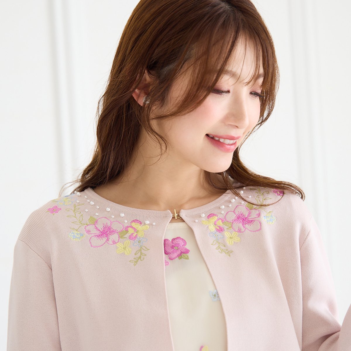 【SALE/10%OFF】Rose Tiara フラワー刺繍ニットカーディガン ローズティアラ トップス カーディガン ブルー ベージュ【送料無料】