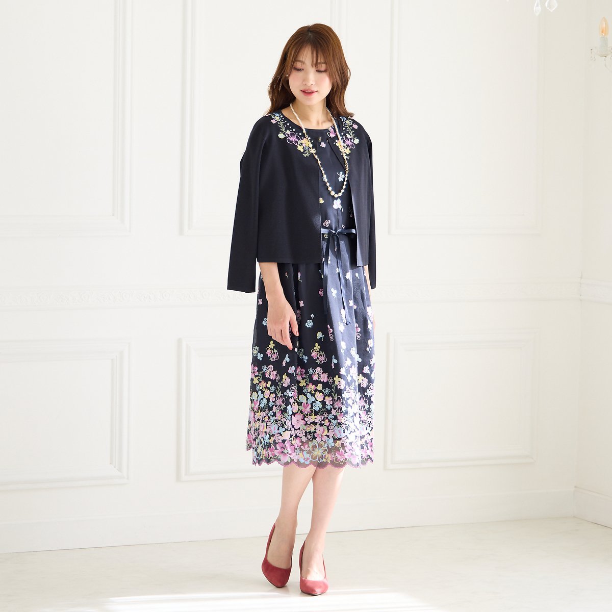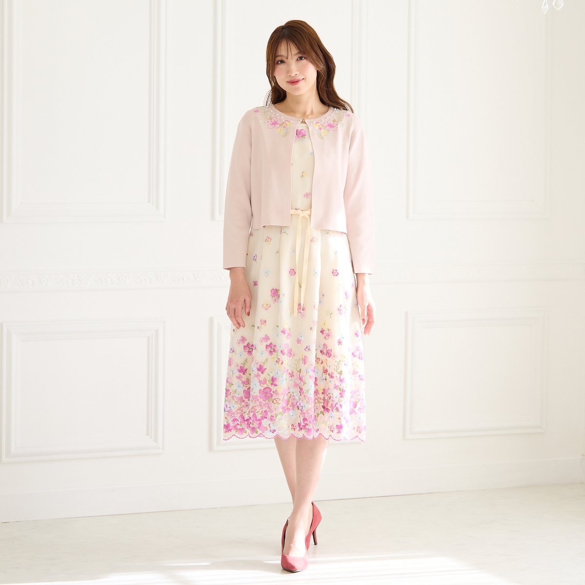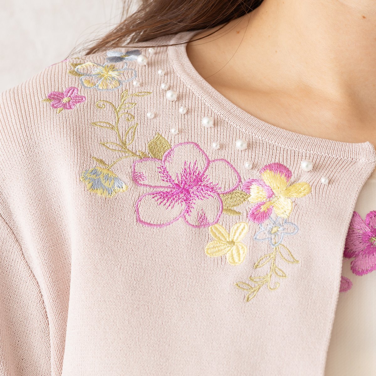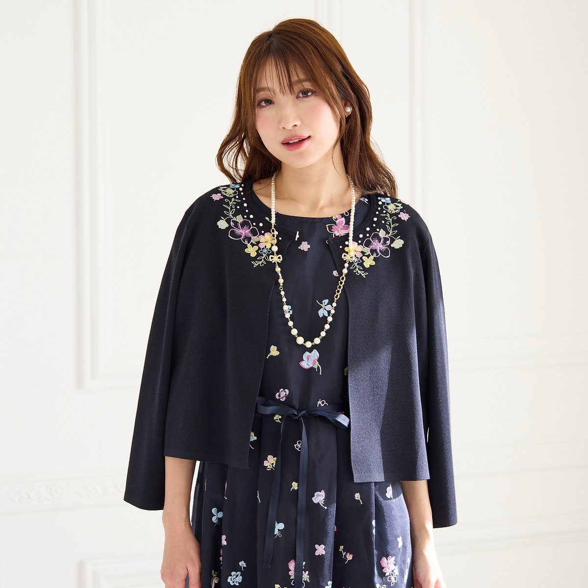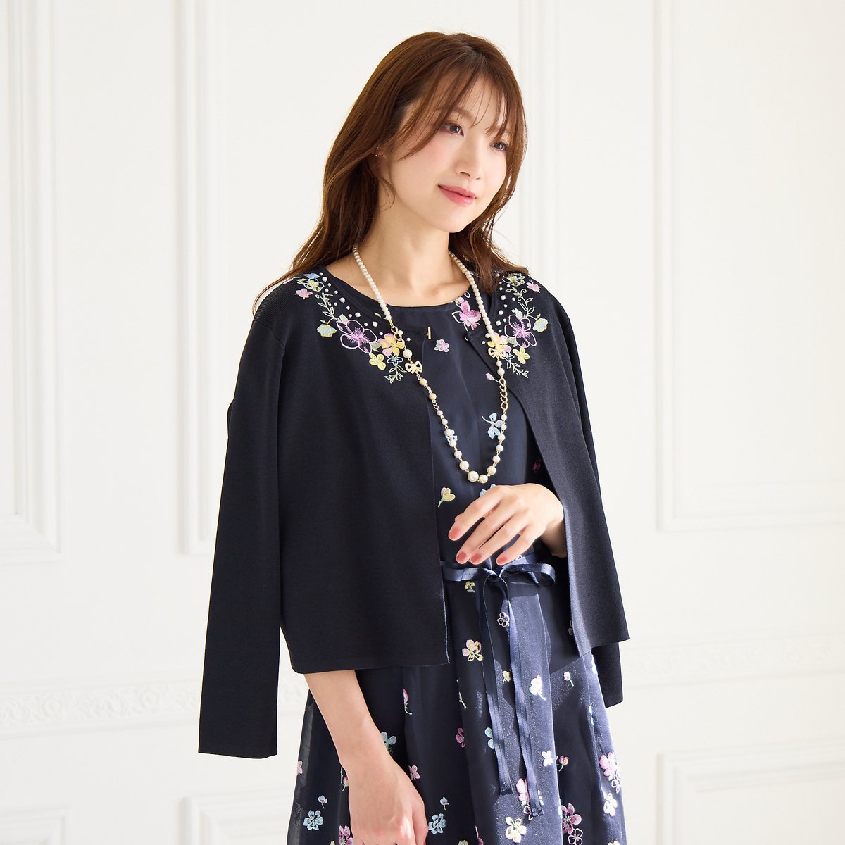 【SALE/10%OFF】Rose Tiara フラワー刺繍ニットカーディガン ローズティアラ トップス カーディガン ブルー ベージュ【送料無料】