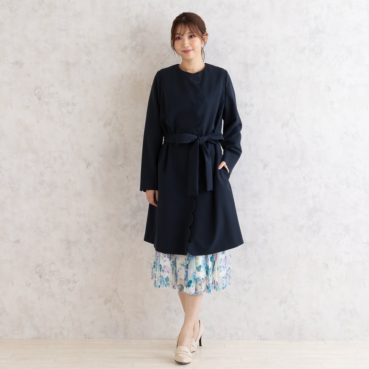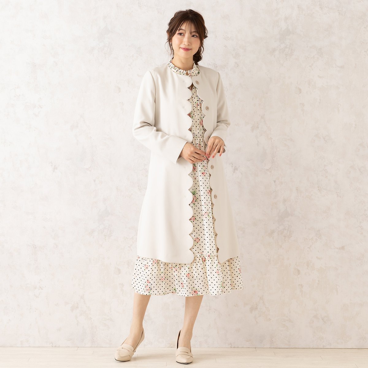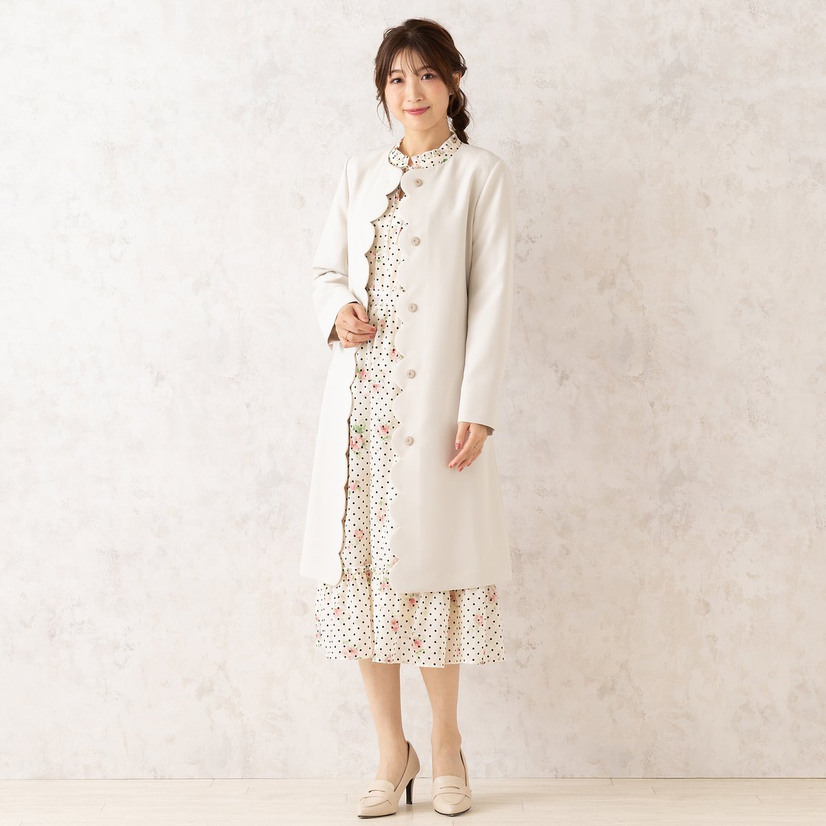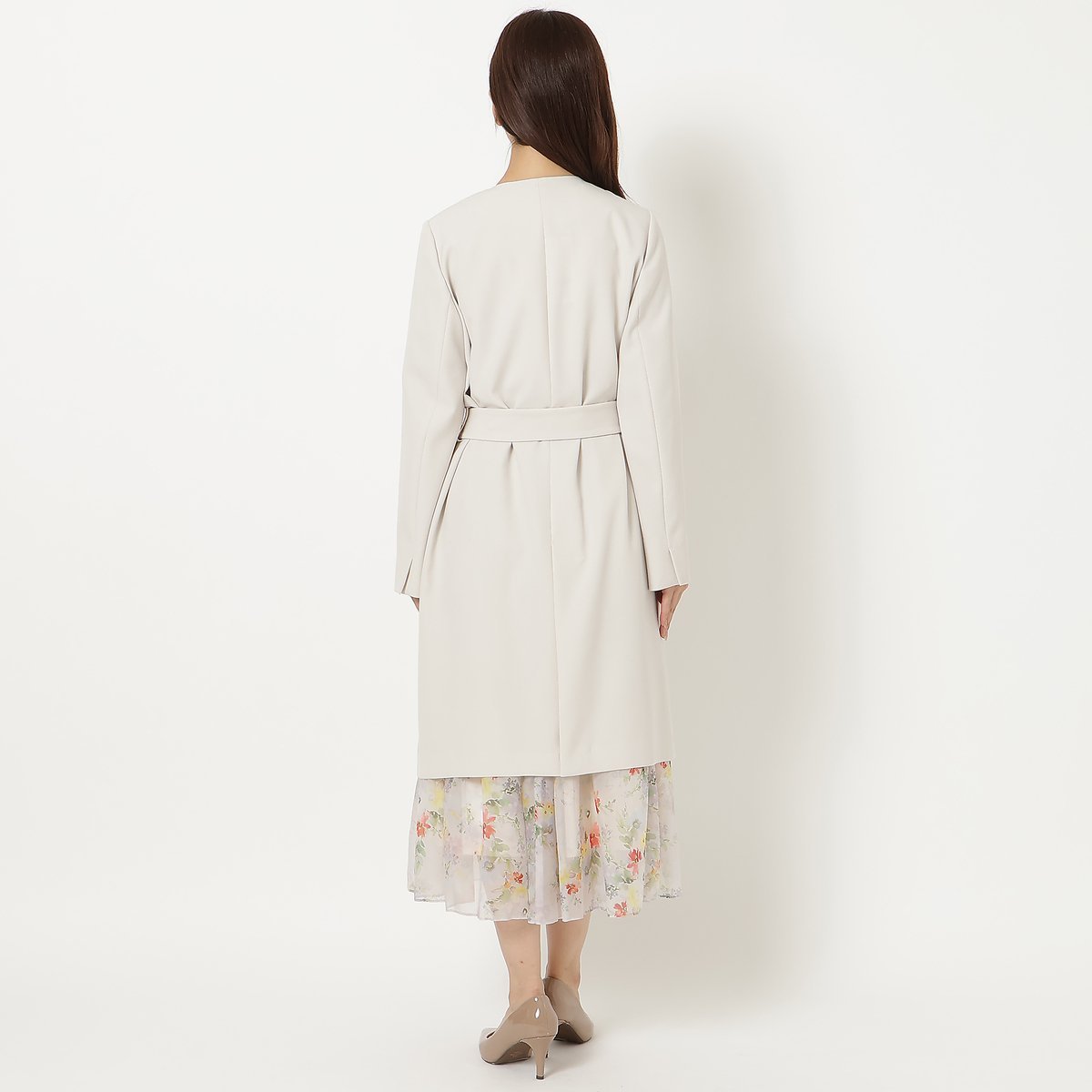 Rose Tiara ダブルクロスノーカラーコート ローズティアラ ジャケット・アウター その他のジャケット・アウター ベージュ ブラック【送料無料】