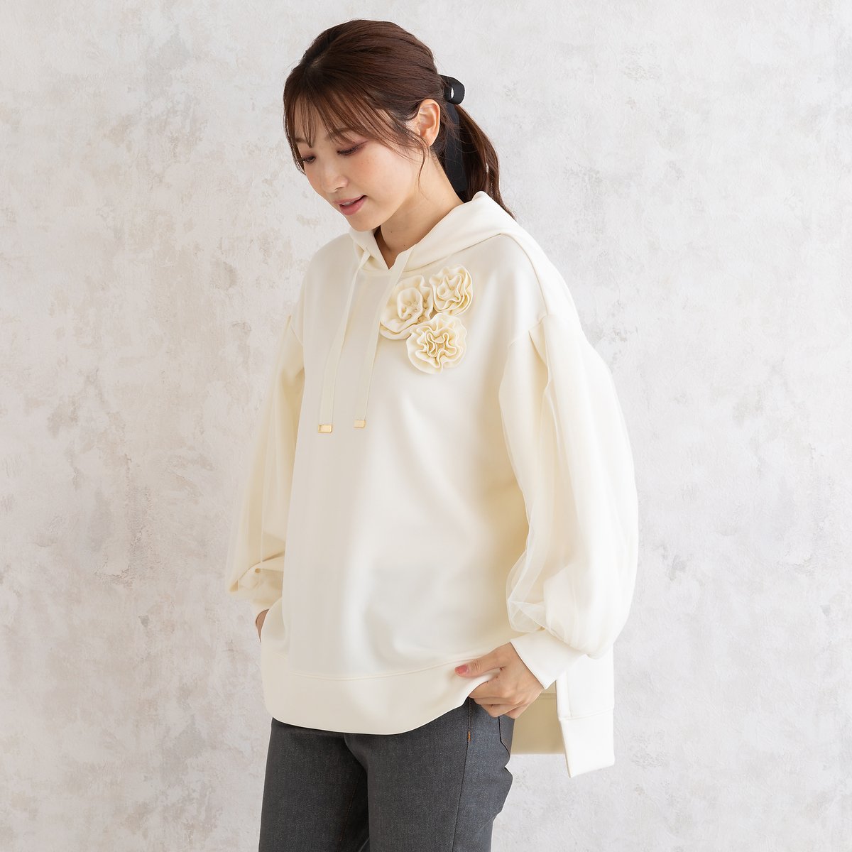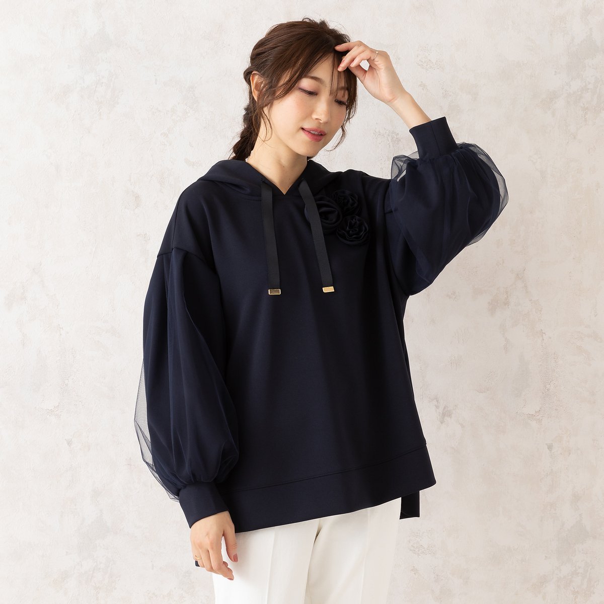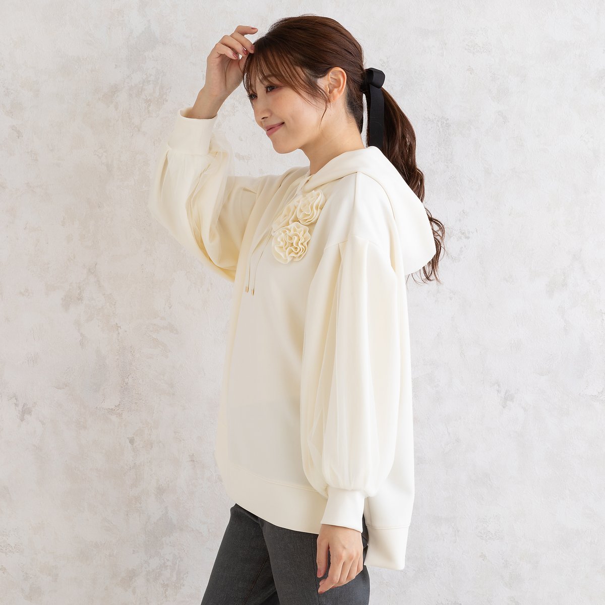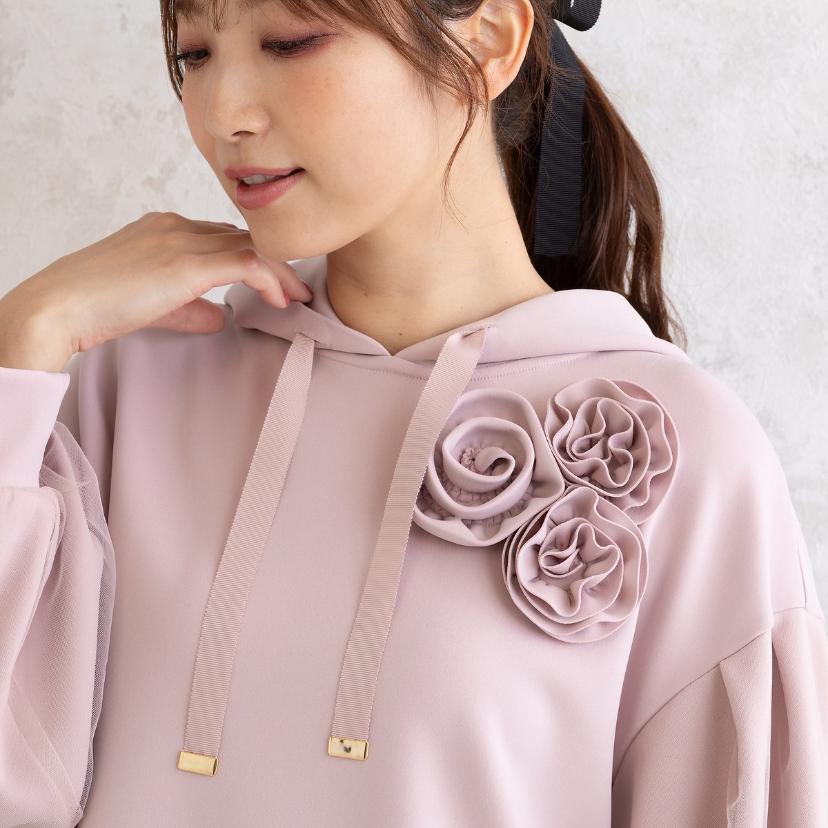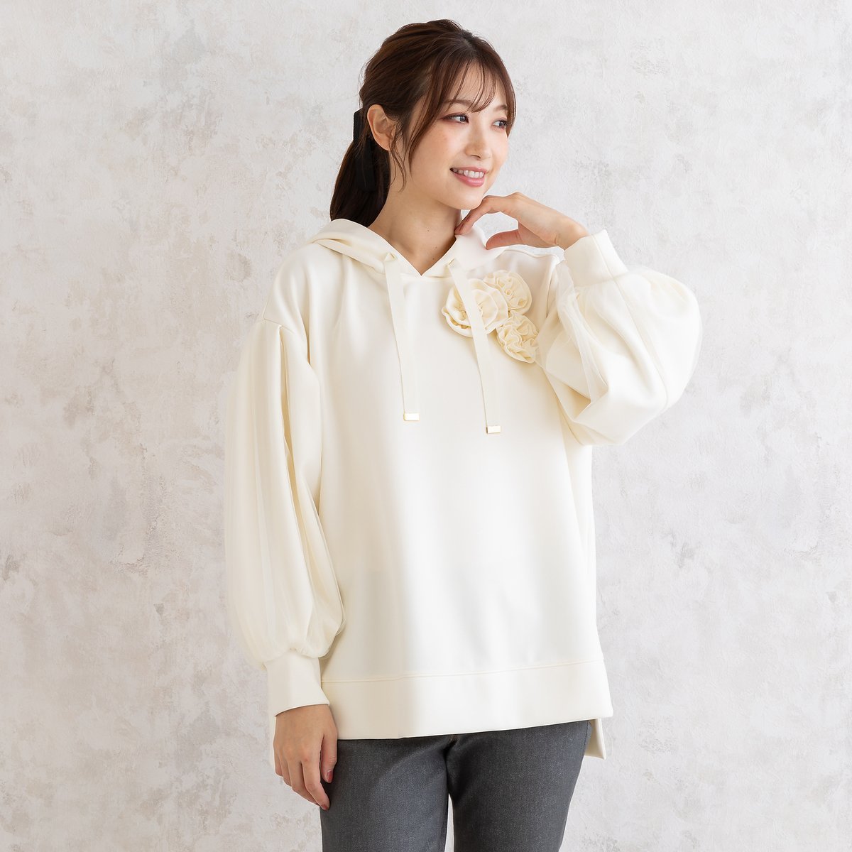 Rose Tiara オーバーサイズパーカー ローズティアラ トップス パーカー・フーディー ホワイト ピンク ブルー【送料無料】