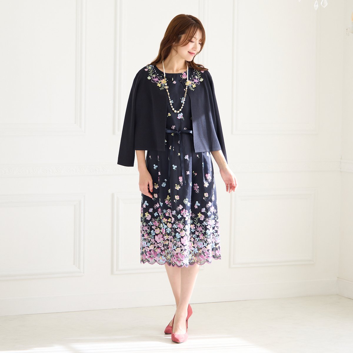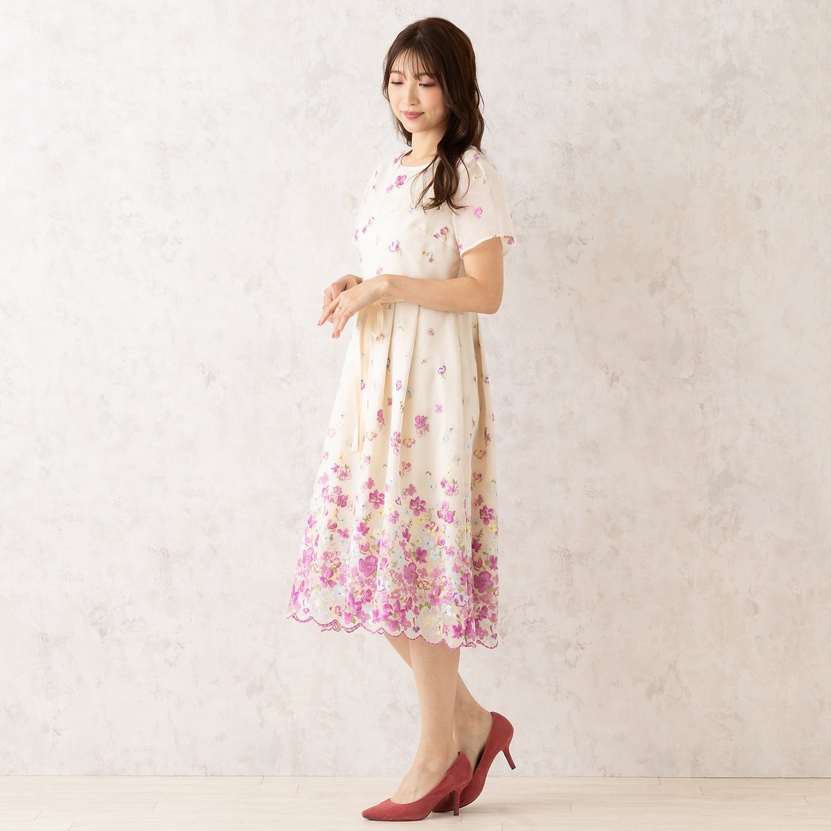 【SALE/10%OFF】Rose Tiara 吹き上げフラワー刺繍ワンピース ローズティアラ ワンピース・ドレス その他のワンピース・ドレス ブルー ベージュ【送料無料】