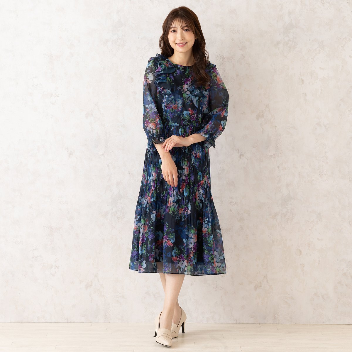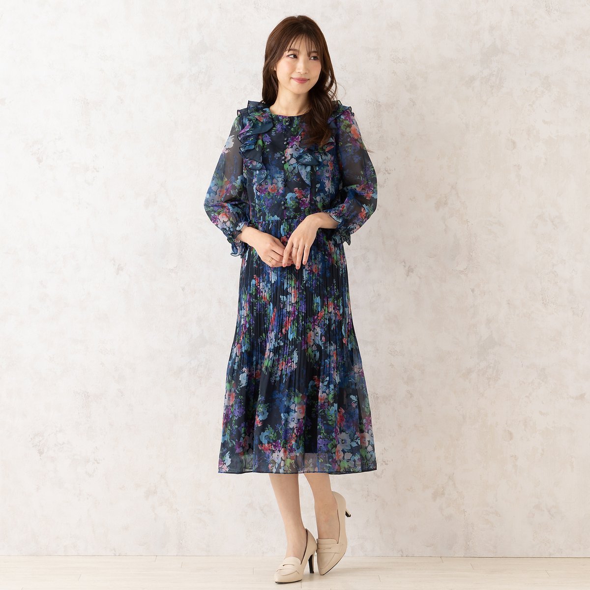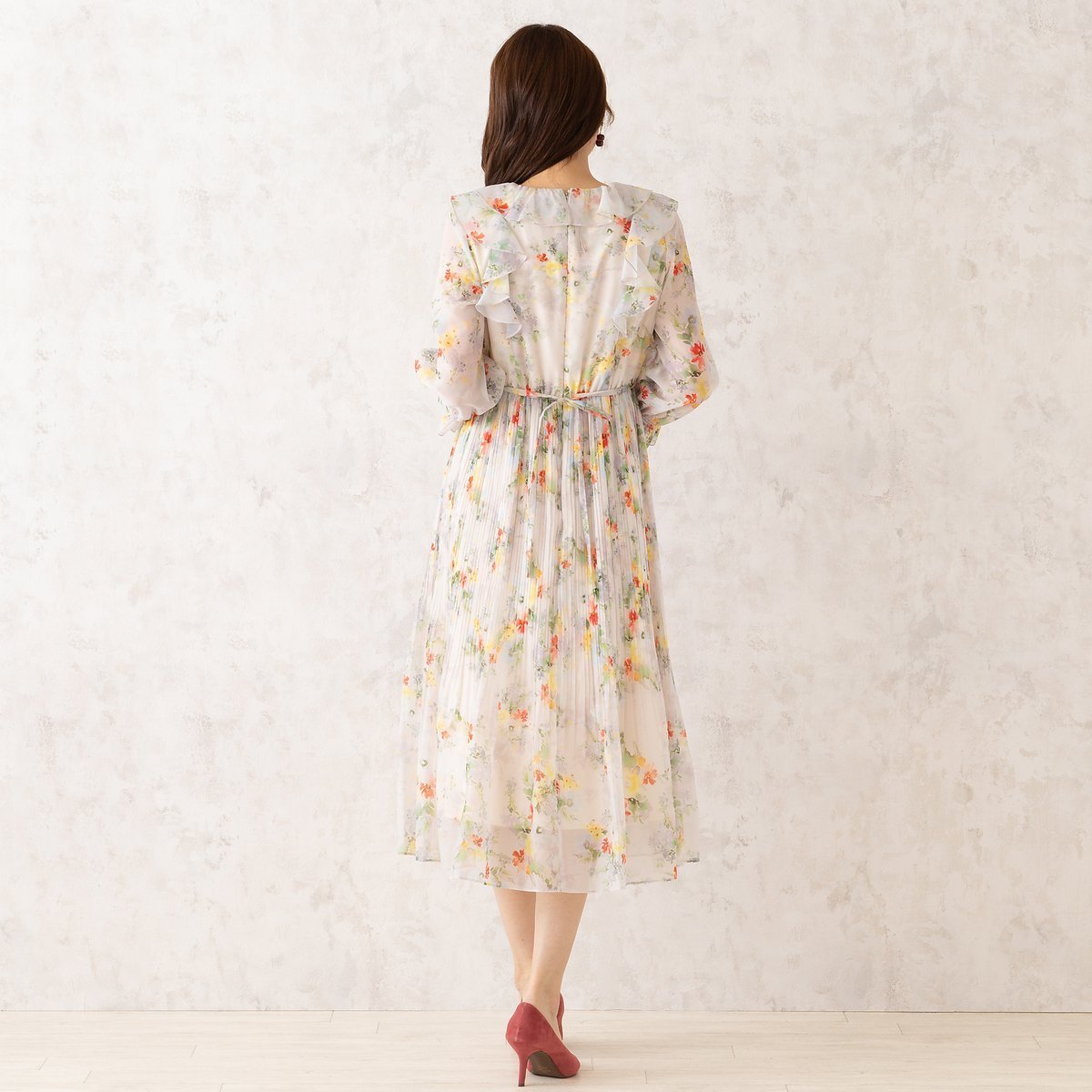 Rose Tiara フリルフラワープリーツワンピース ローズティアラ ワンピース・ドレス その他のワンピース・ドレス ブルー ベージュ【送料無料】