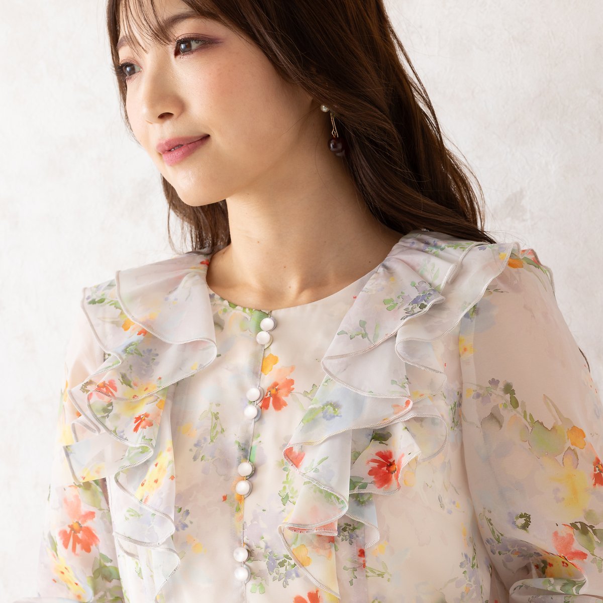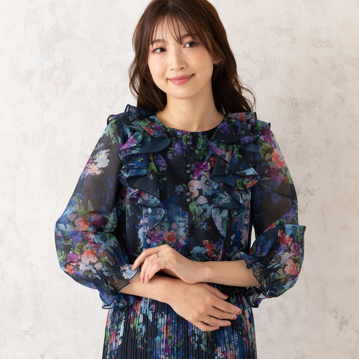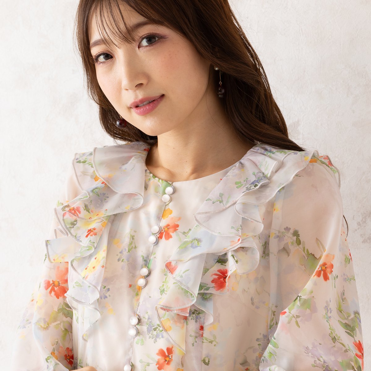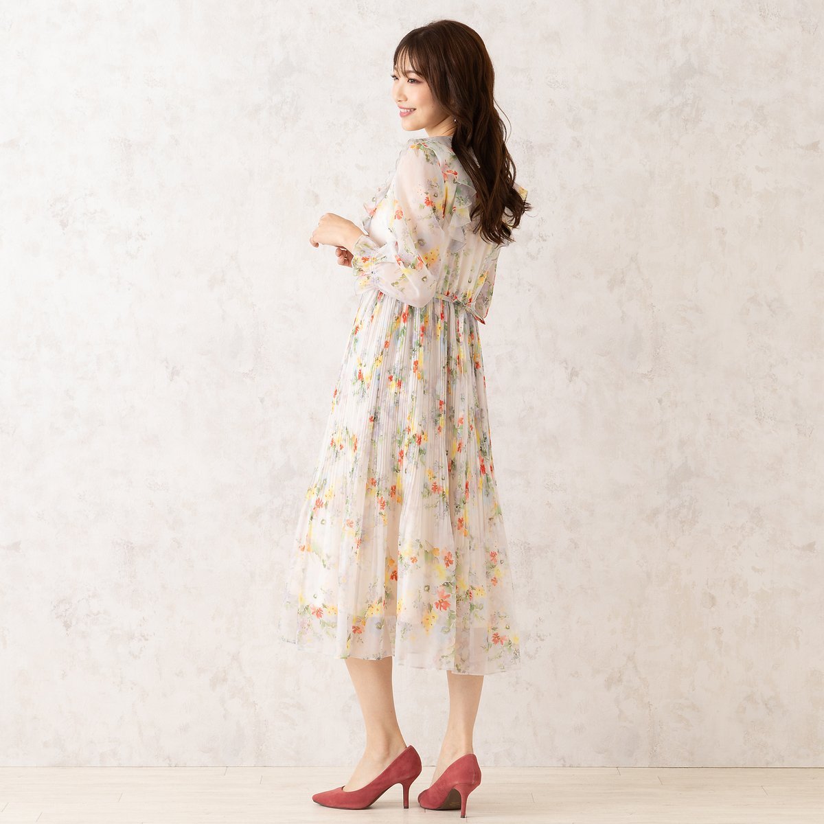 Rose Tiara フリルフラワープリーツワンピース ローズティアラ ワンピース・ドレス その他のワンピース・ドレス ブルー ベージュ【送料無料】