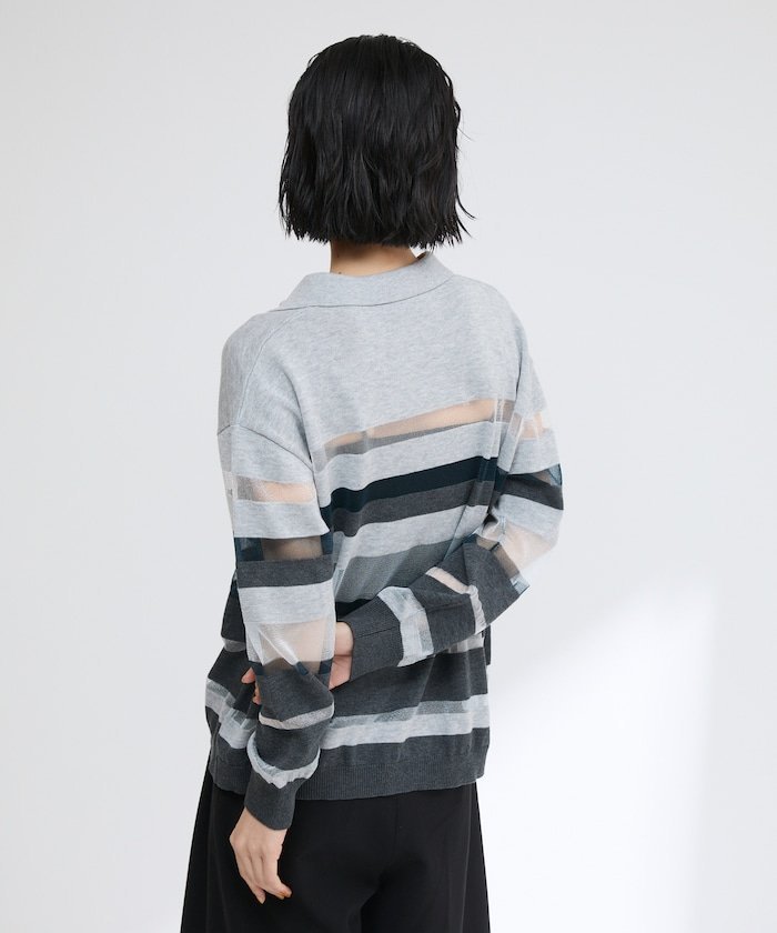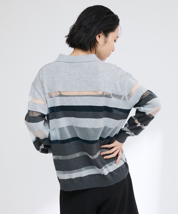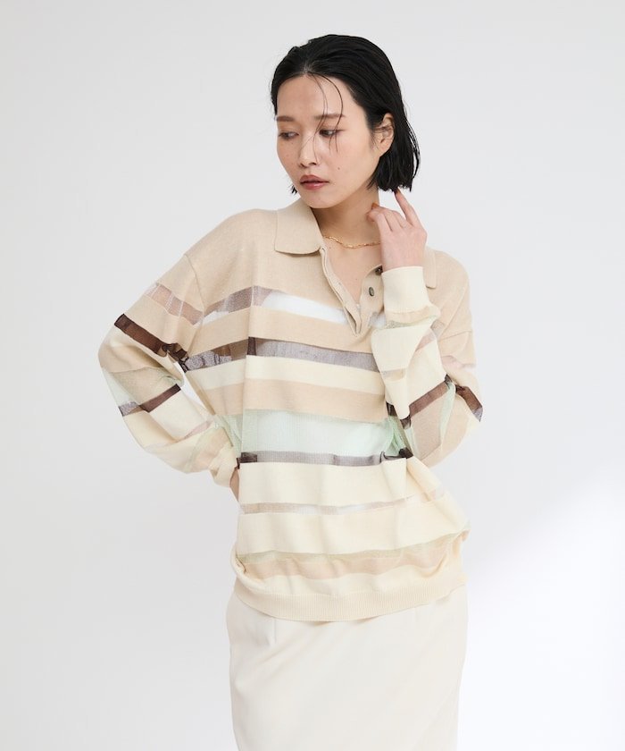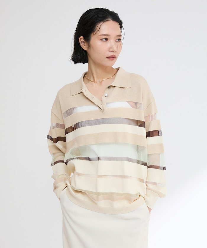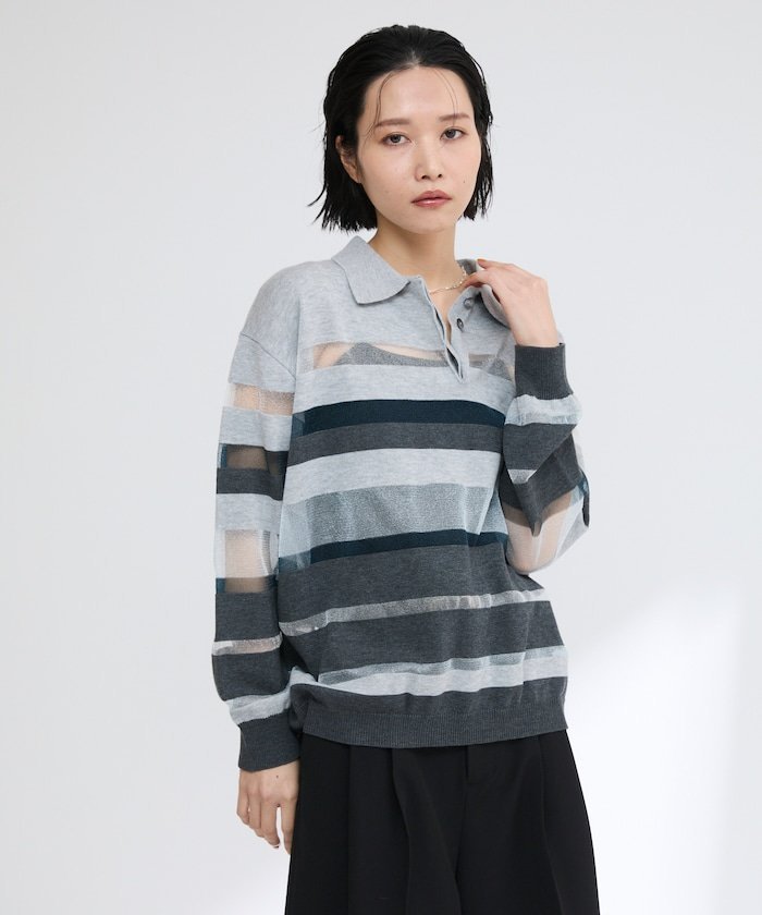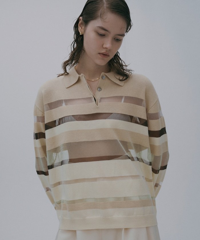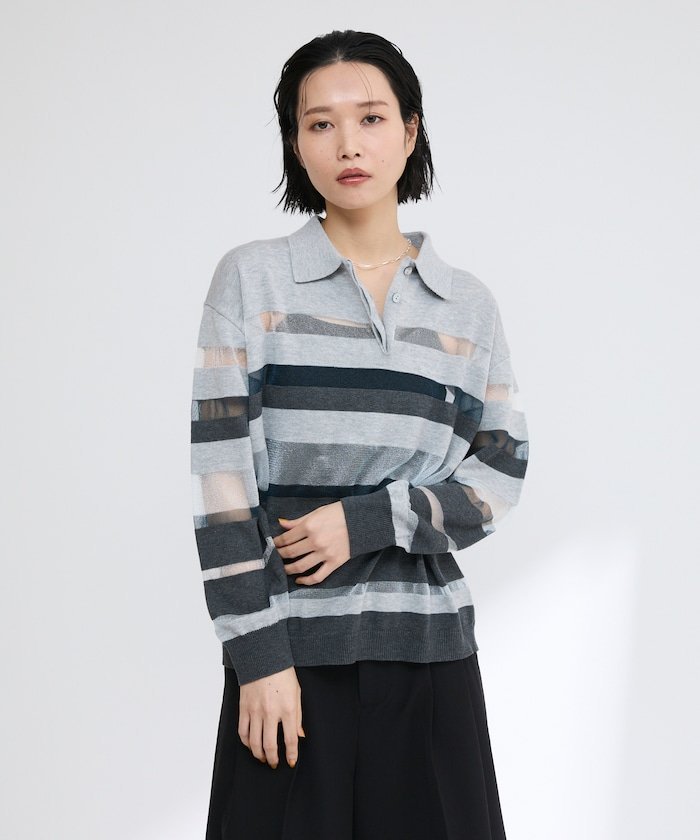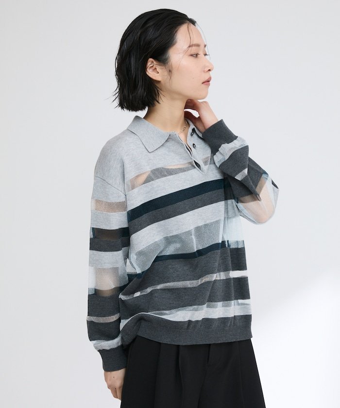 【SALE/50%OFF】Firsthand シアーランダムボーダーポロニット 25SS フリークスストア トップス ニット グレー ベージュ【送料無料】