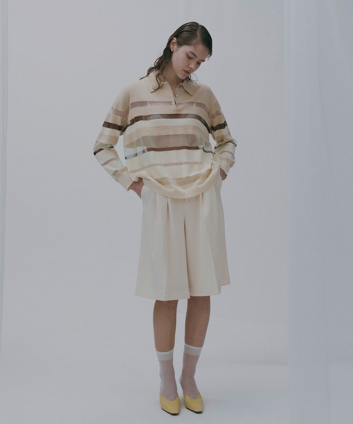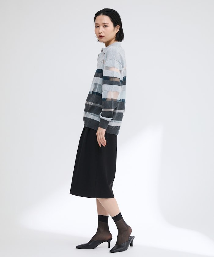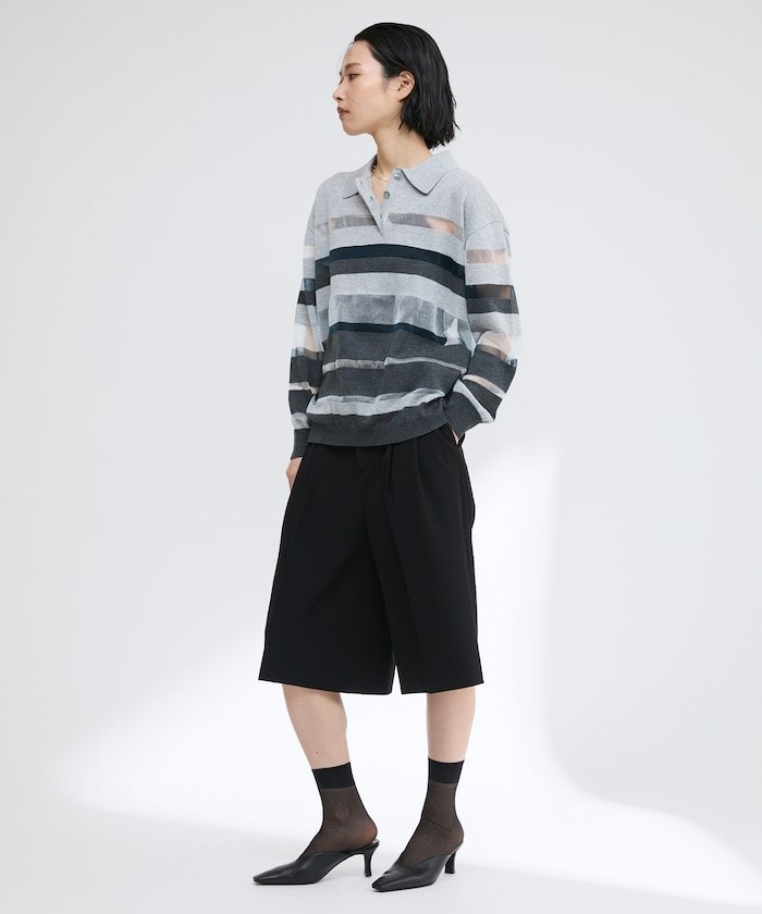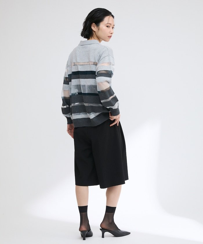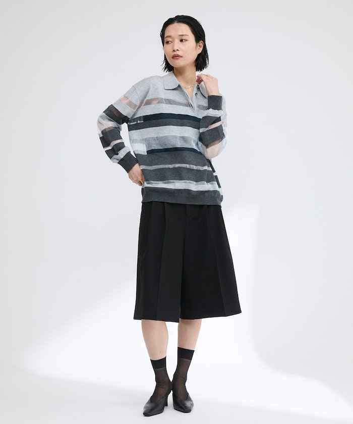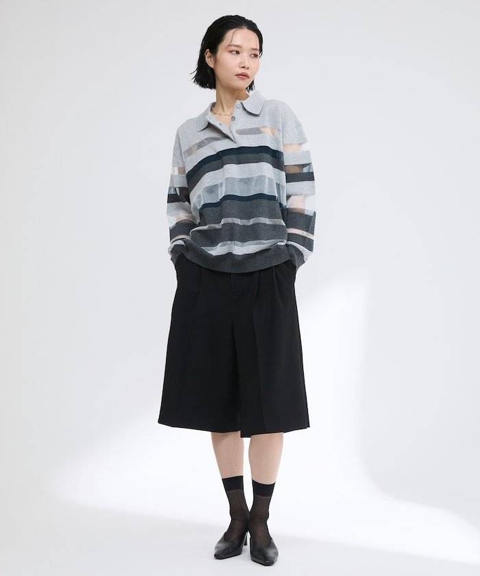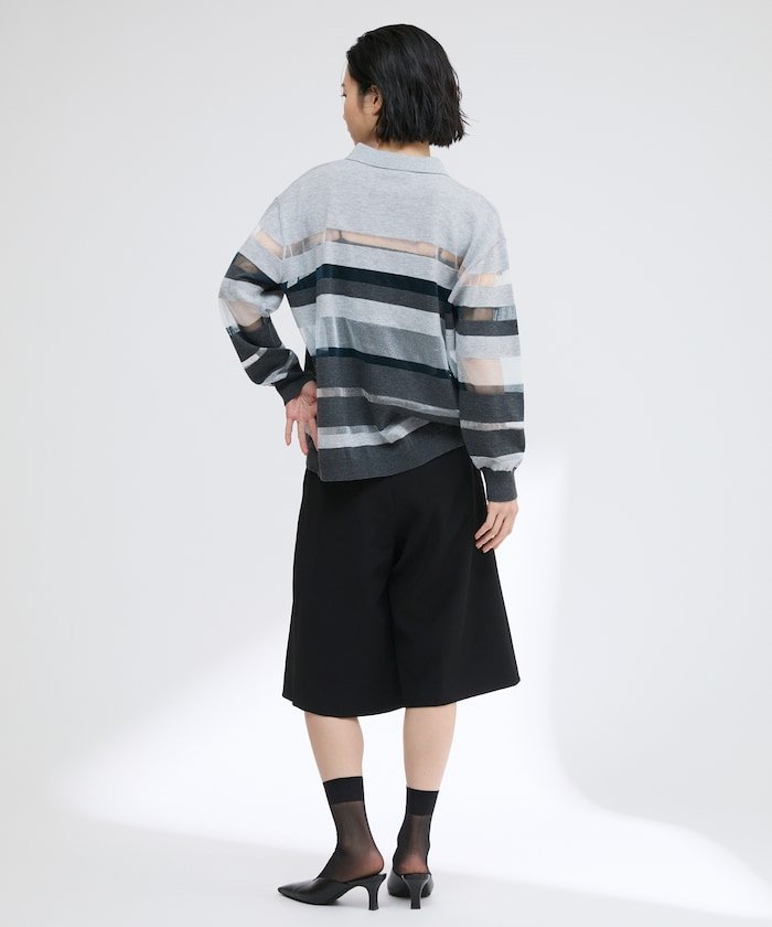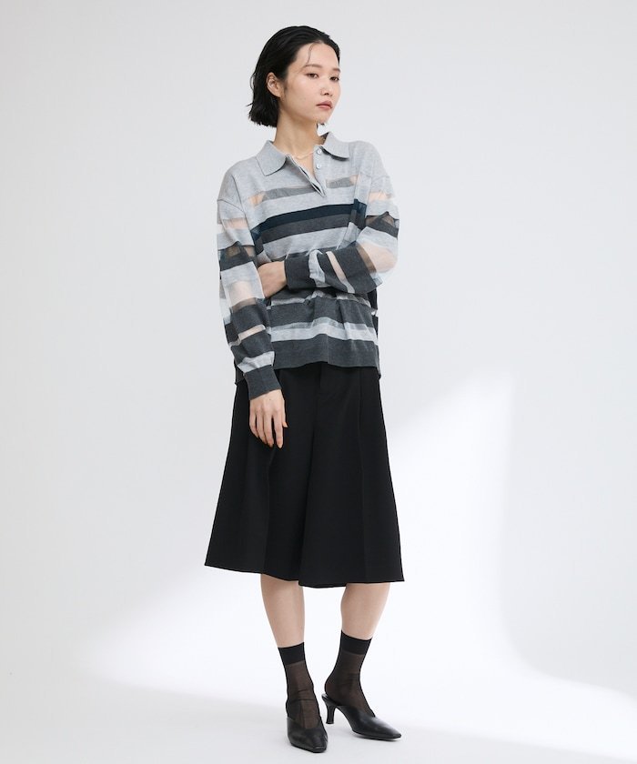 【SALE/50%OFF】Firsthand シアーランダムボーダーポロニット 25SS フリークスストア トップス ニット グレー ベージュ【送料無料】