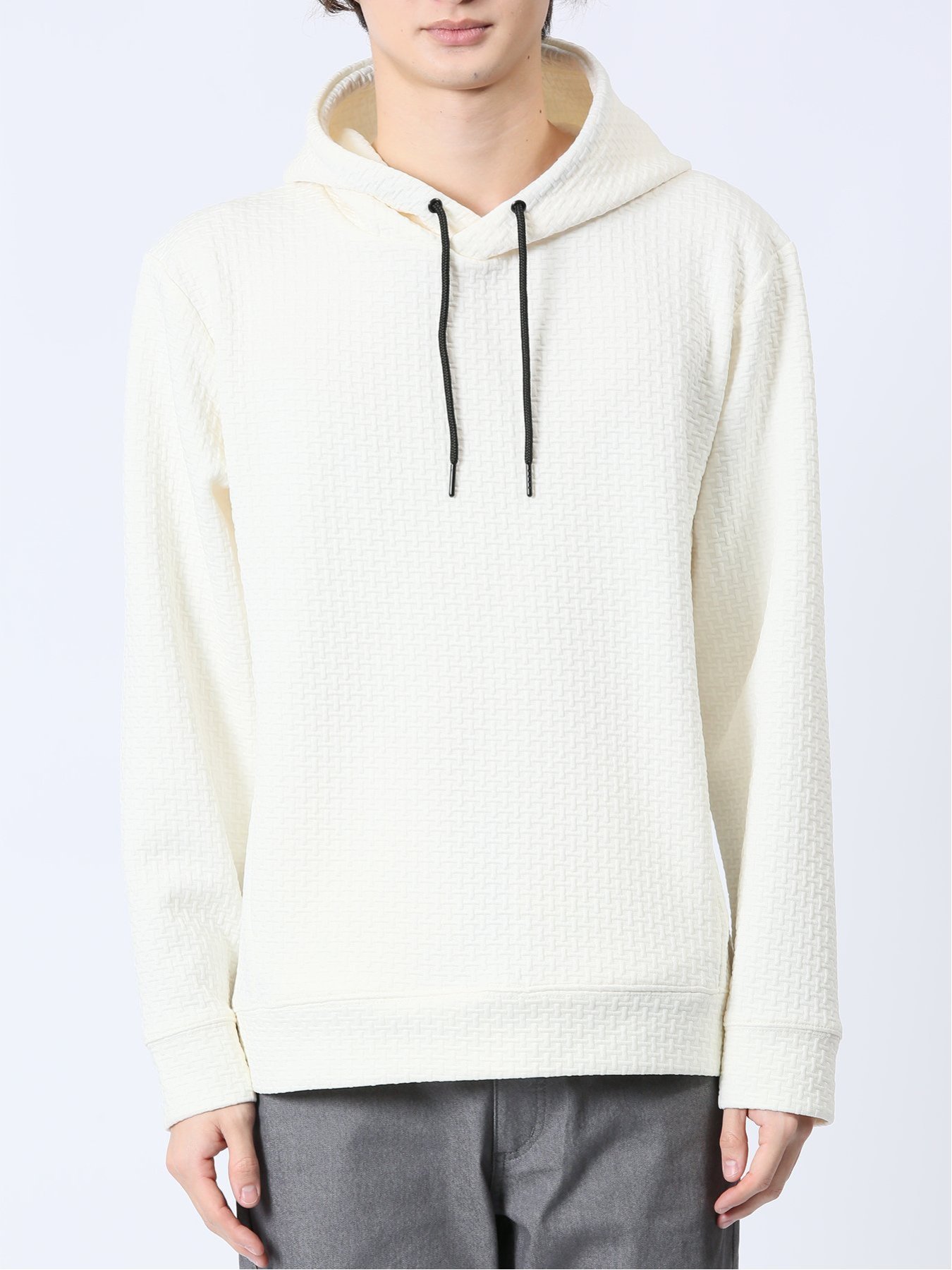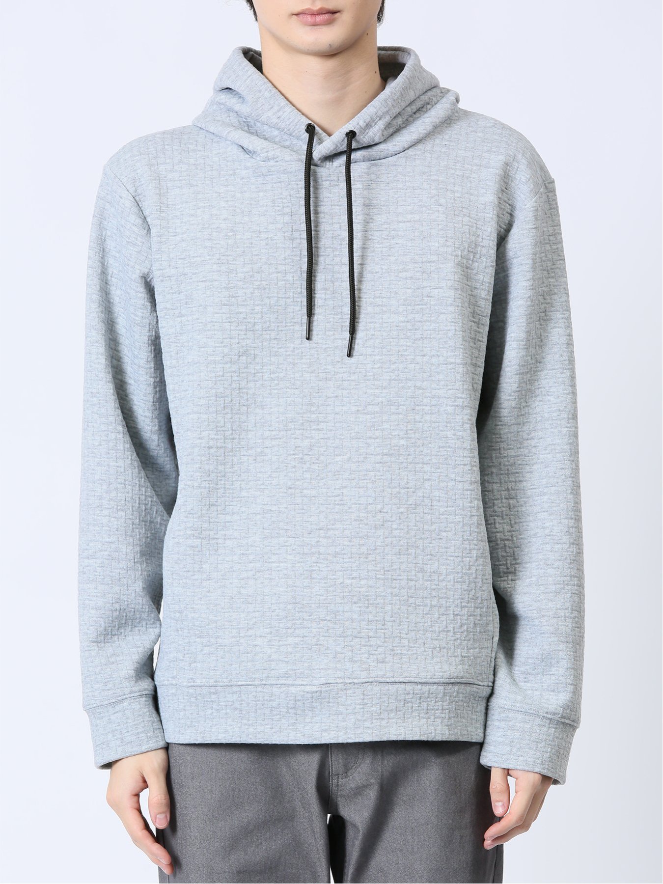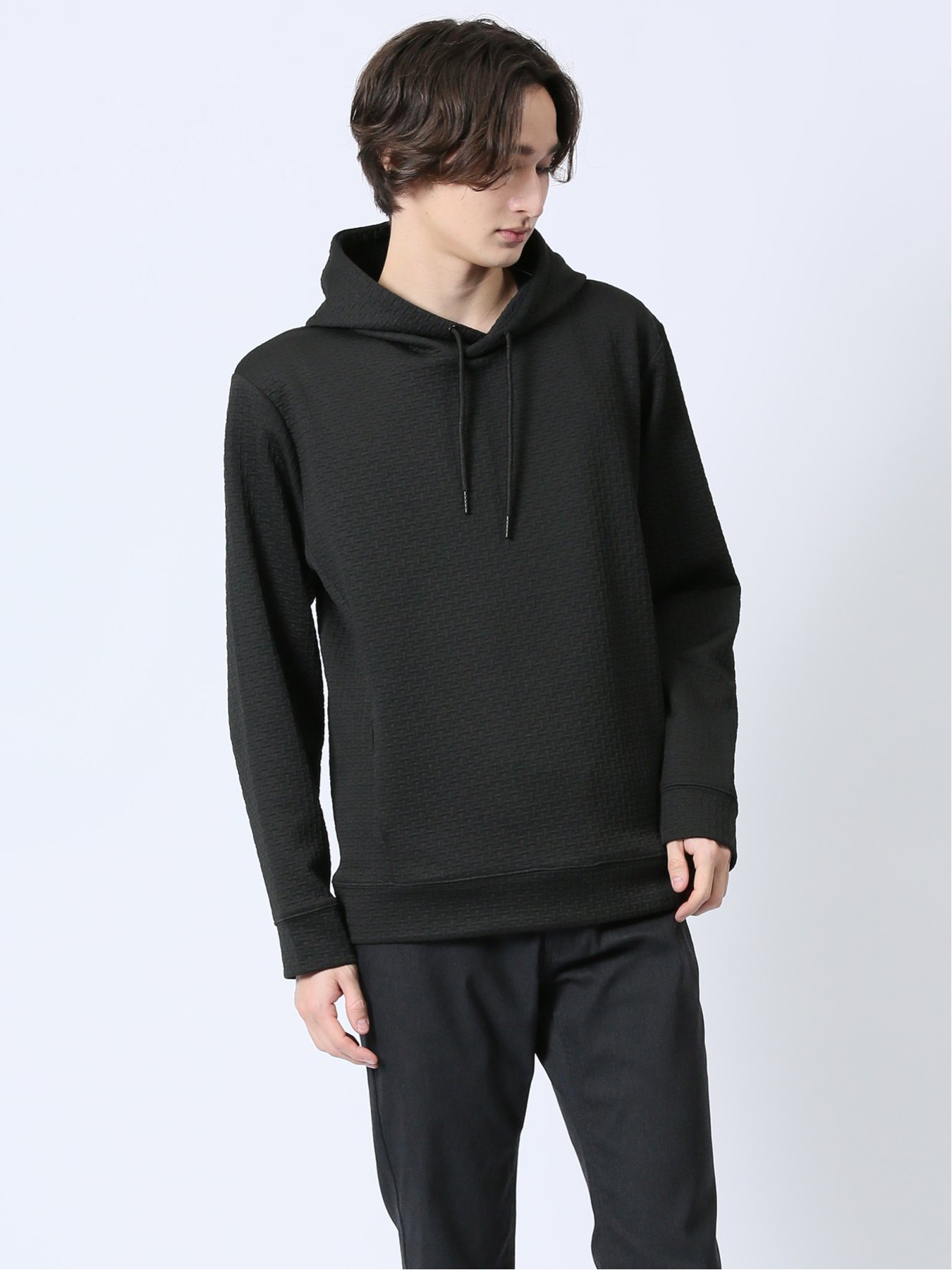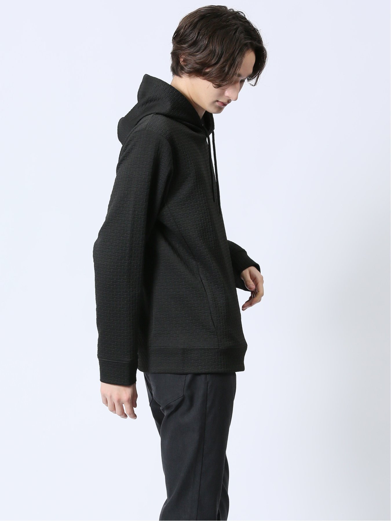 m.f.editorial ふくれジャガード 長袖プルパーカー 【25SS】 メンズ アウター カットソー カジュアル ライトアウター ビジネス ギフト プレゼント タカキュー トップス パーカー・フーディー ブラック グレー【送料無料】