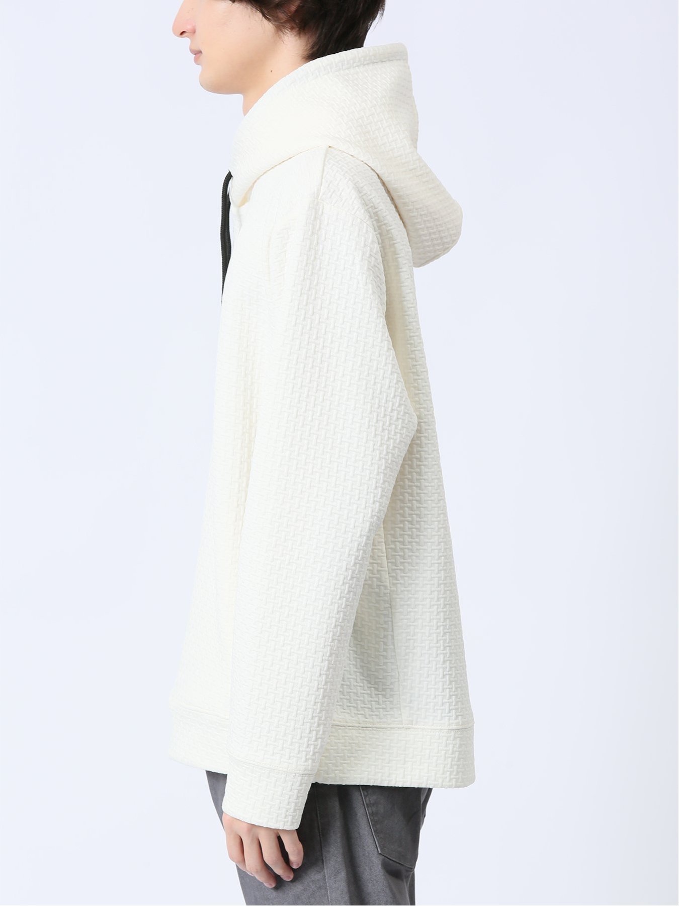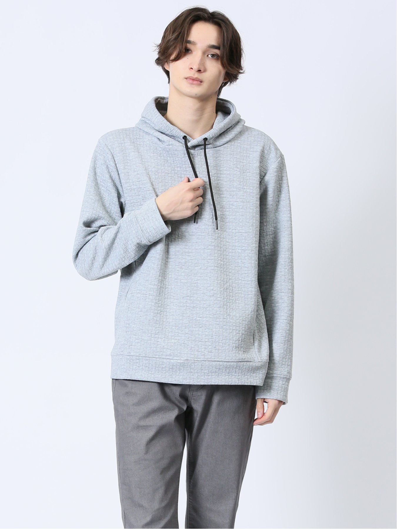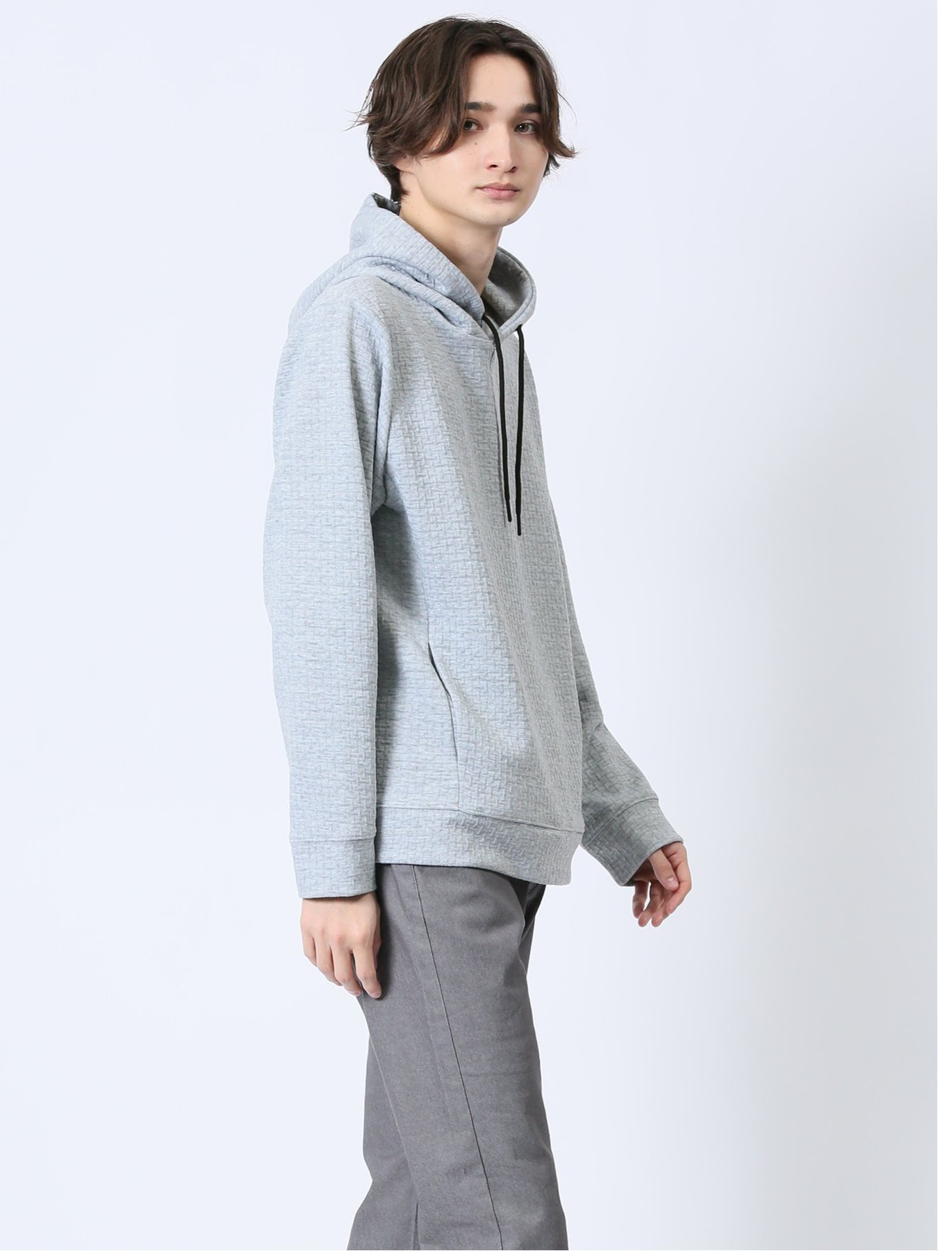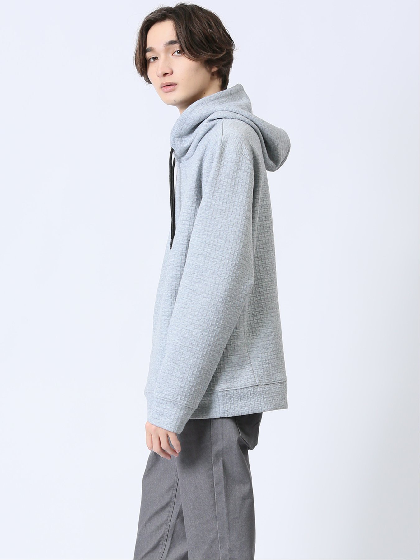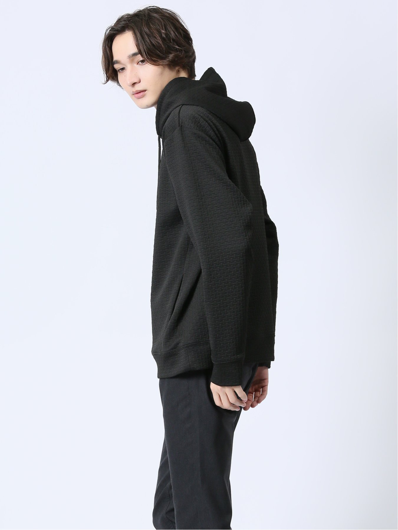 m.f.editorial ふくれジャガード 長袖プルパーカー 【25SS】 メンズ アウター カットソー カジュアル ライトアウター ビジネス ギフト プレゼント タカキュー トップス パーカー・フーディー ブラック グレー【送料無料】