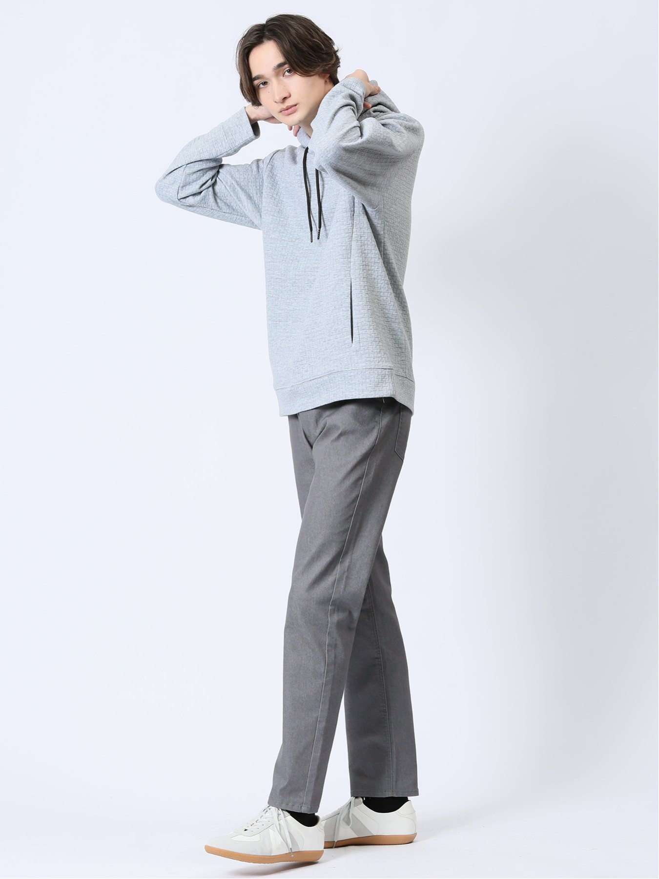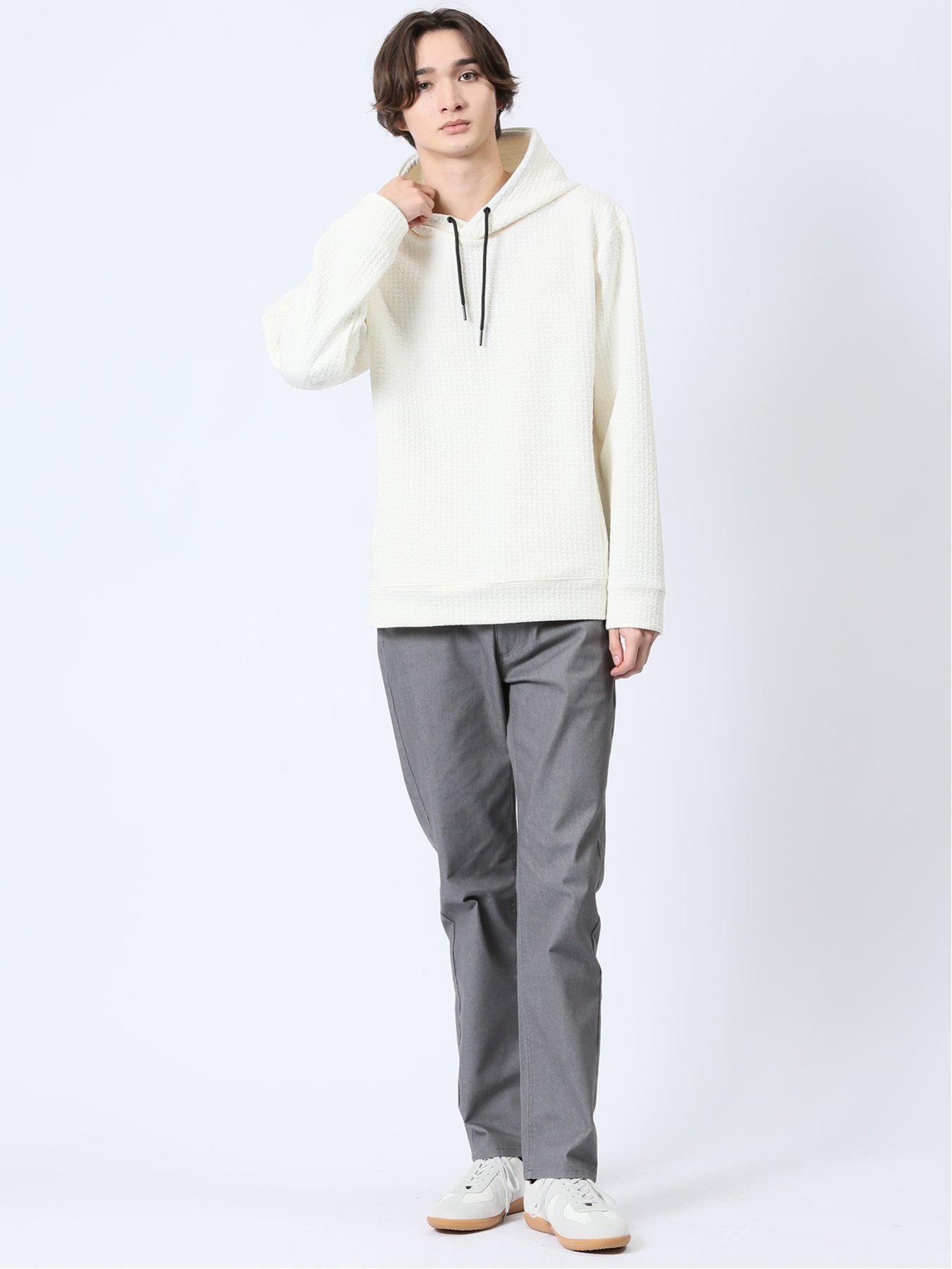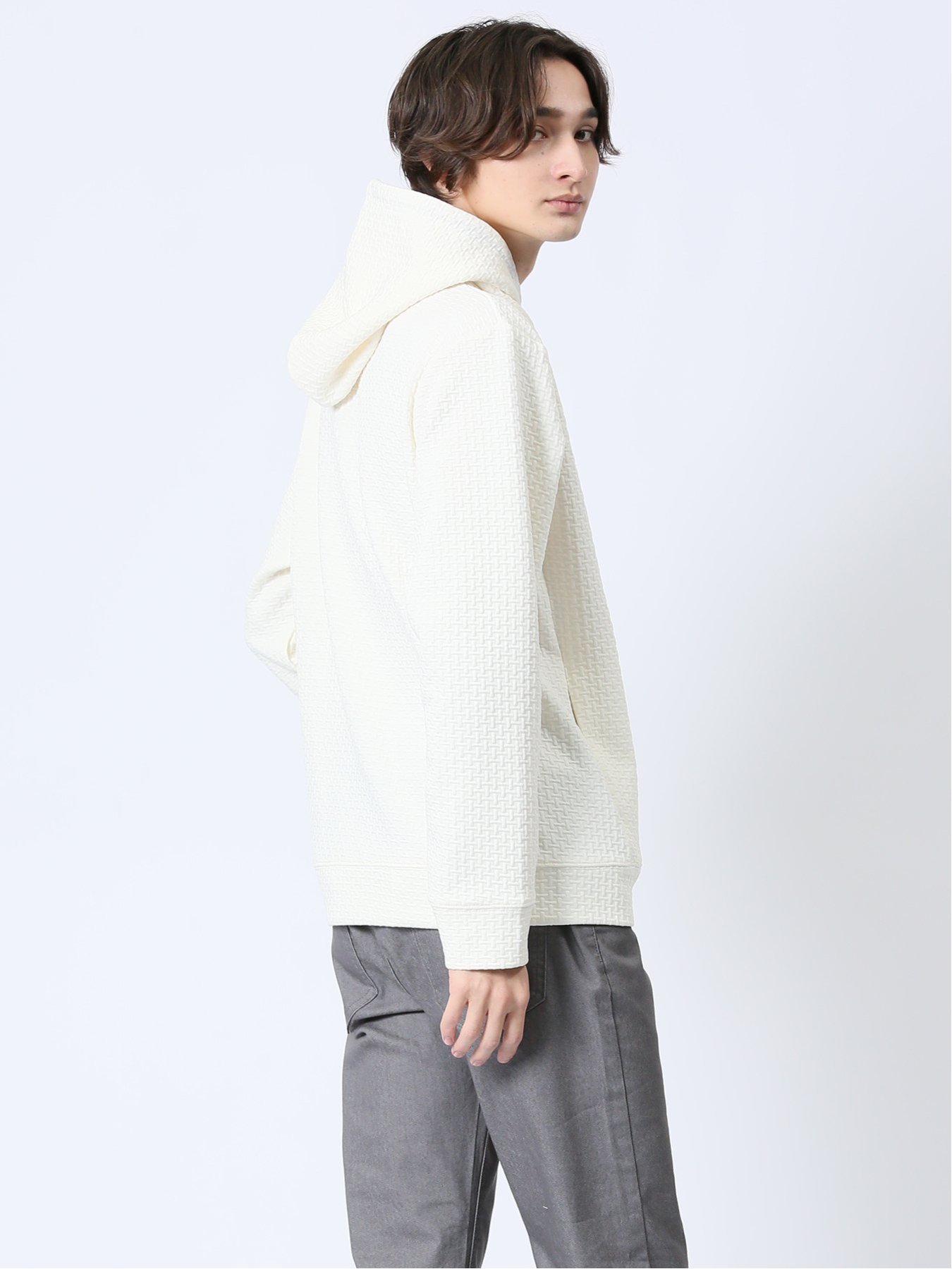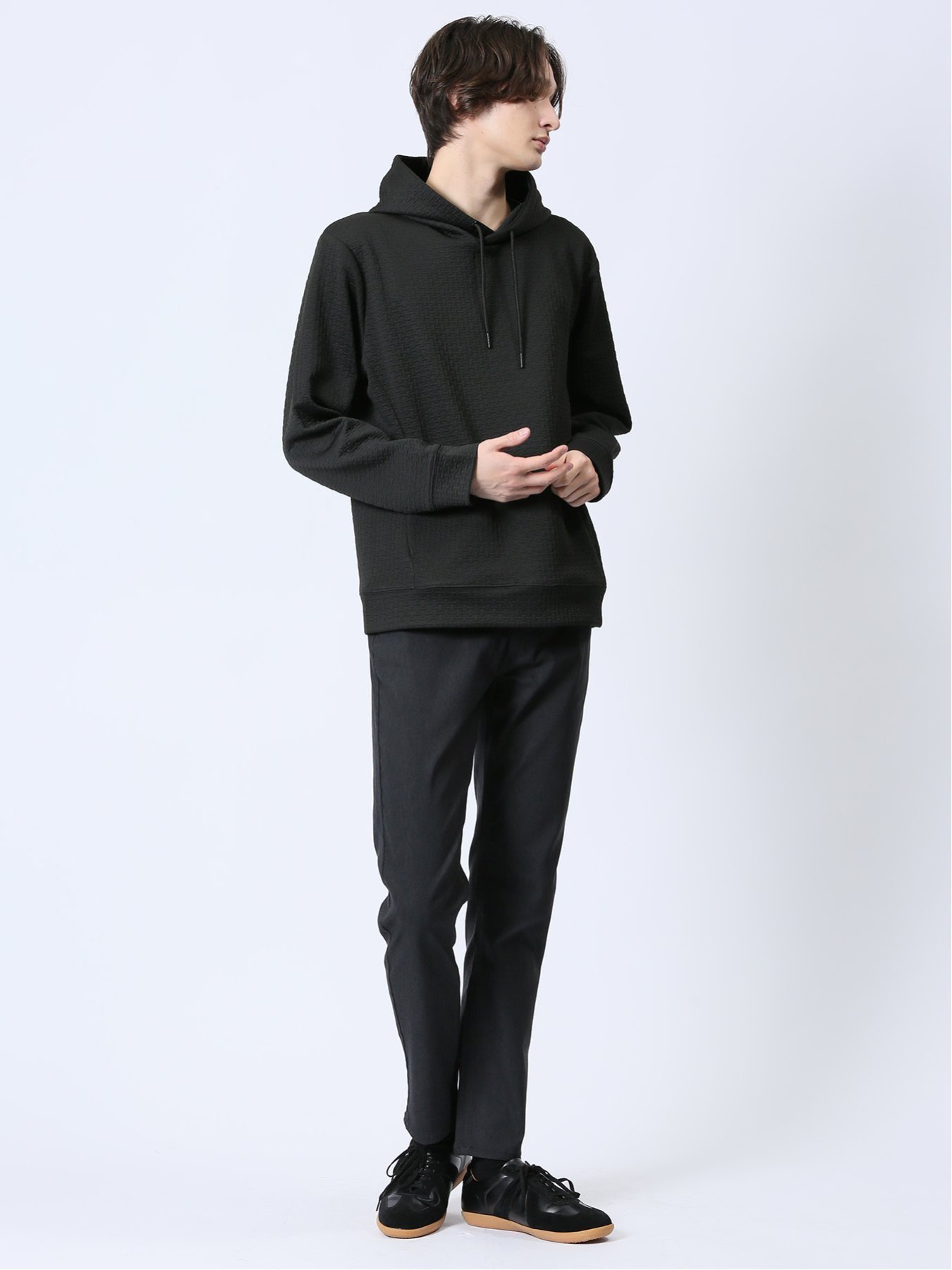 m.f.editorial ふくれジャガード 長袖プルパーカー 【25SS】 メンズ アウター カットソー カジュアル ライトアウター ビジネス ギフト プレゼント タカキュー トップス パーカー・フーディー ブラック グレー【送料無料】