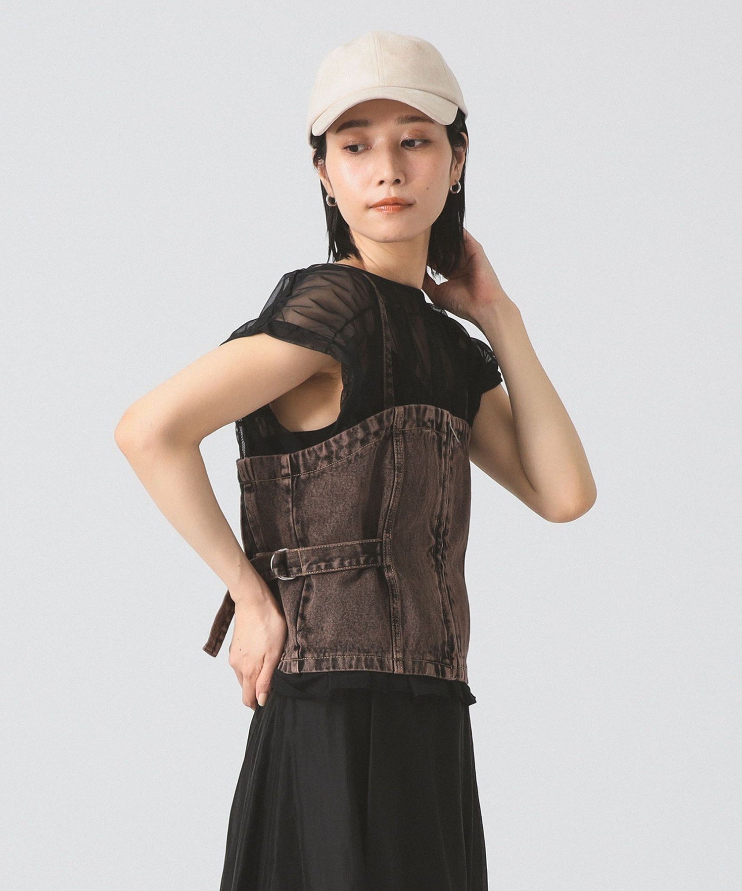 Ray BEAMS デニム ジップ ビスチェ ビームス ウイメン トップス その他のトップス ブラウン ブルー【送料無料】