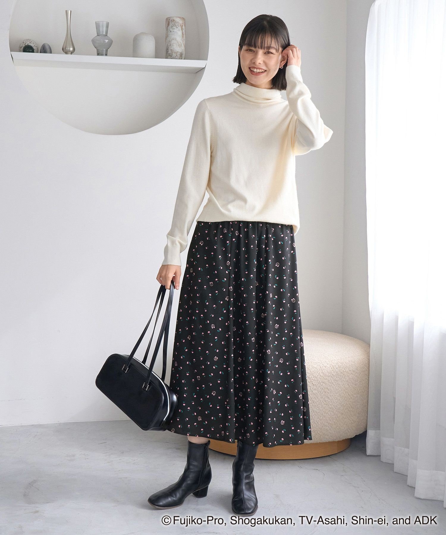 ROPE' PICNIC 【ドラえもんコレクション】花柄スカート/リンクコーデ ロペピクニック スカート その他のスカート ホワイト ブラック【送料無料】