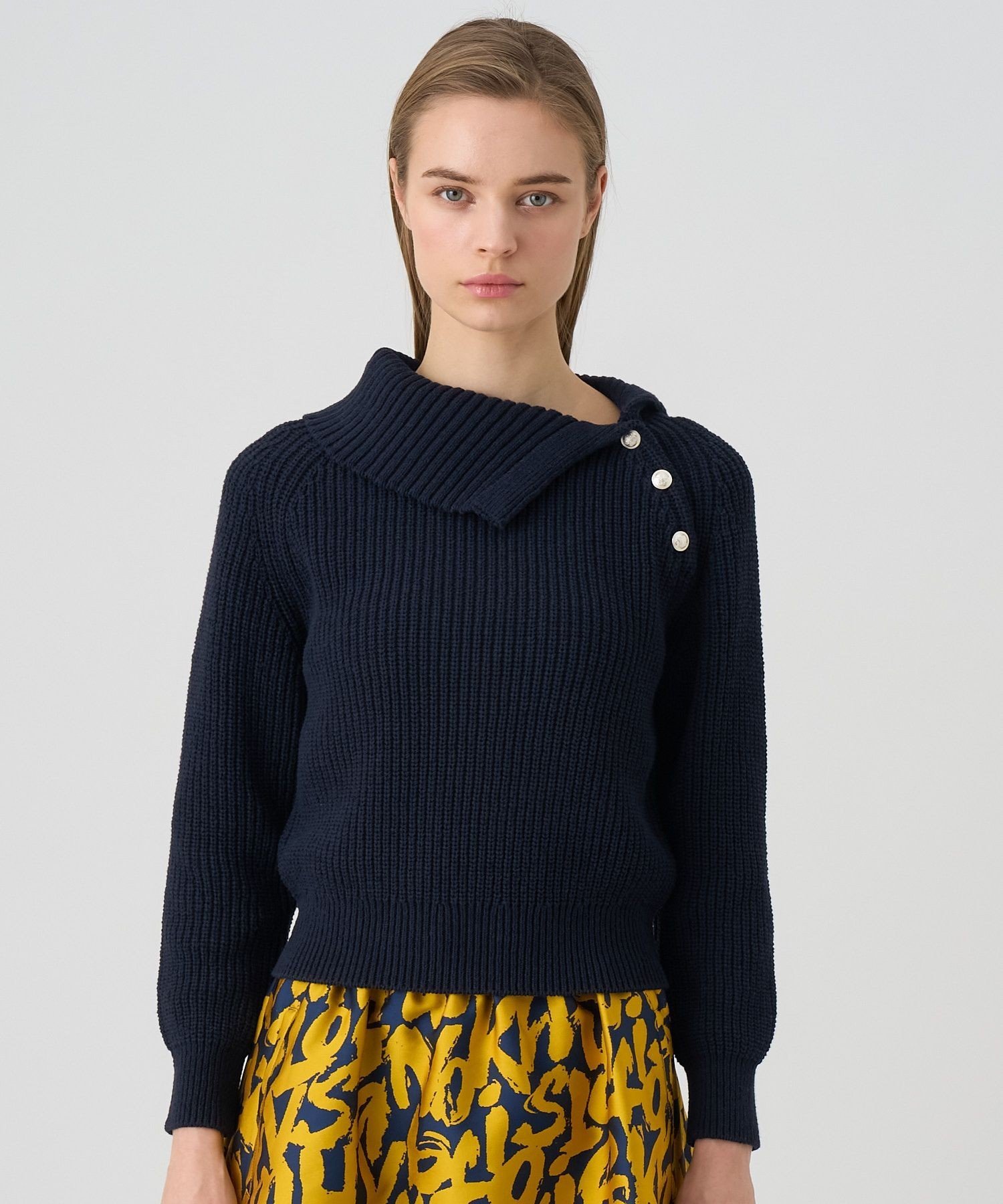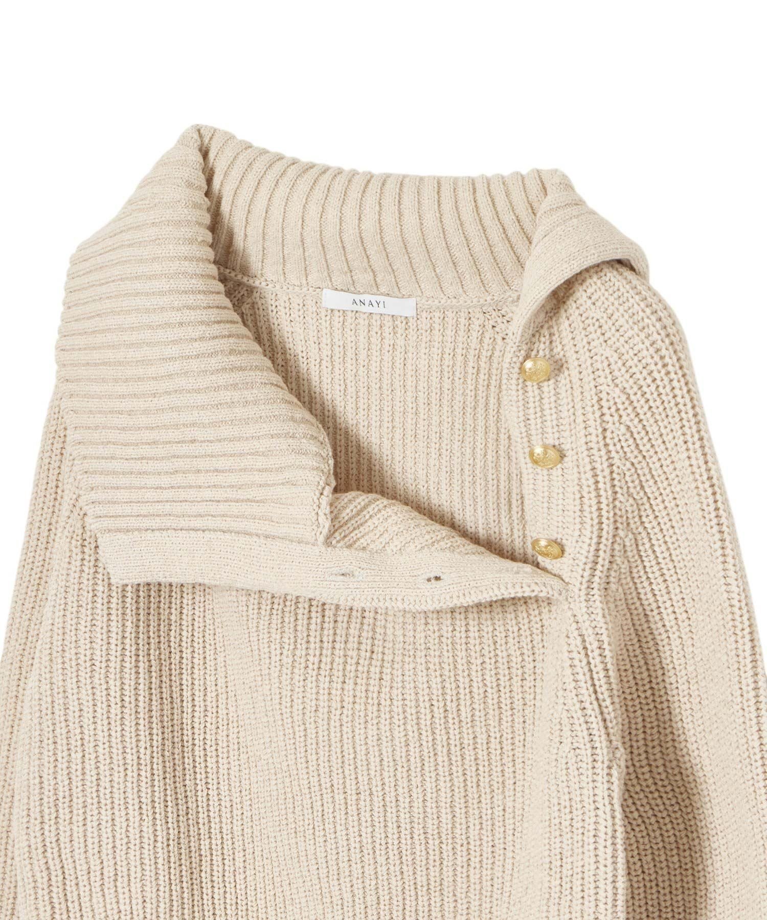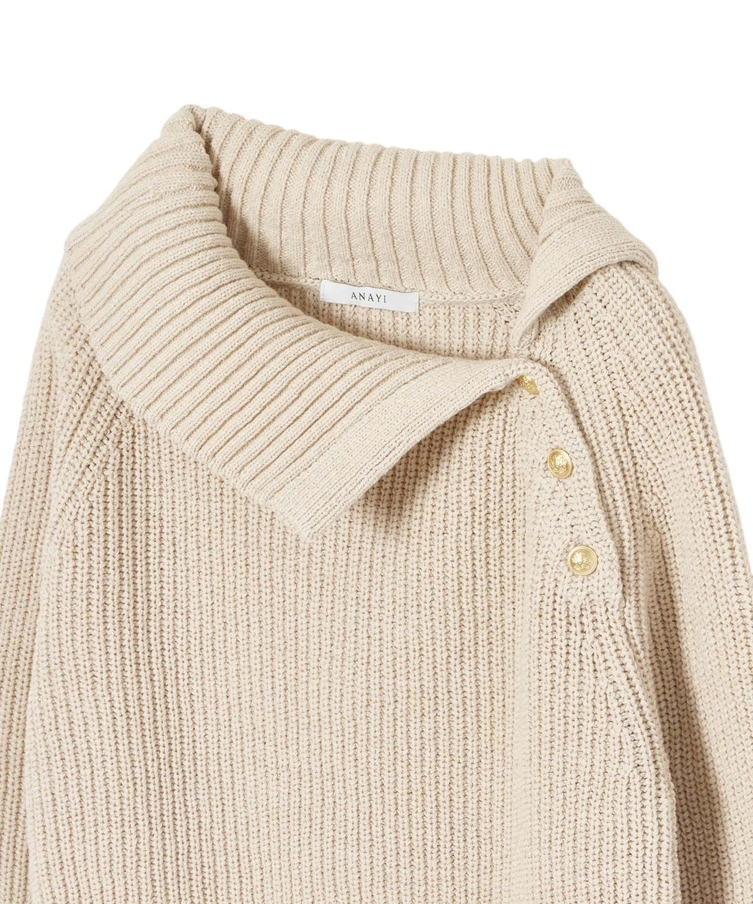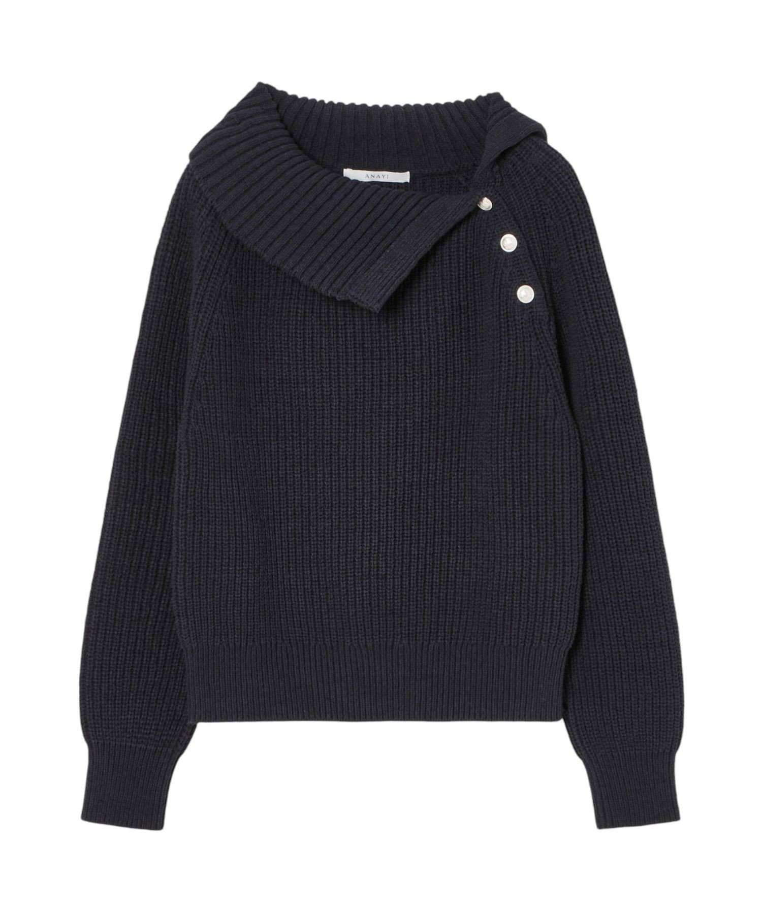 ANAYI アシメカラーラグラン プルオーバー アナイ トップス ニット ホワイト ネイビー ベージュ【送料無料】