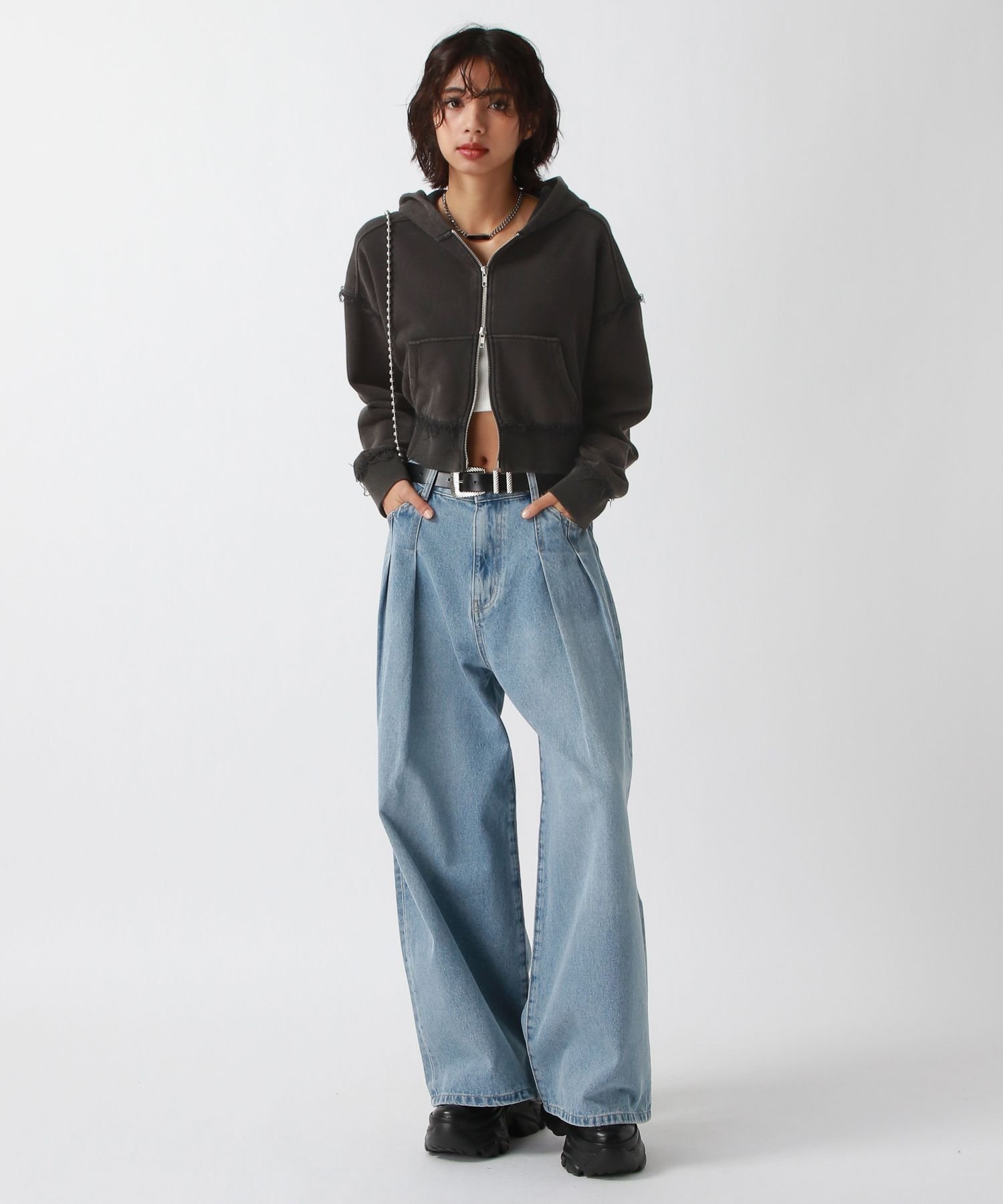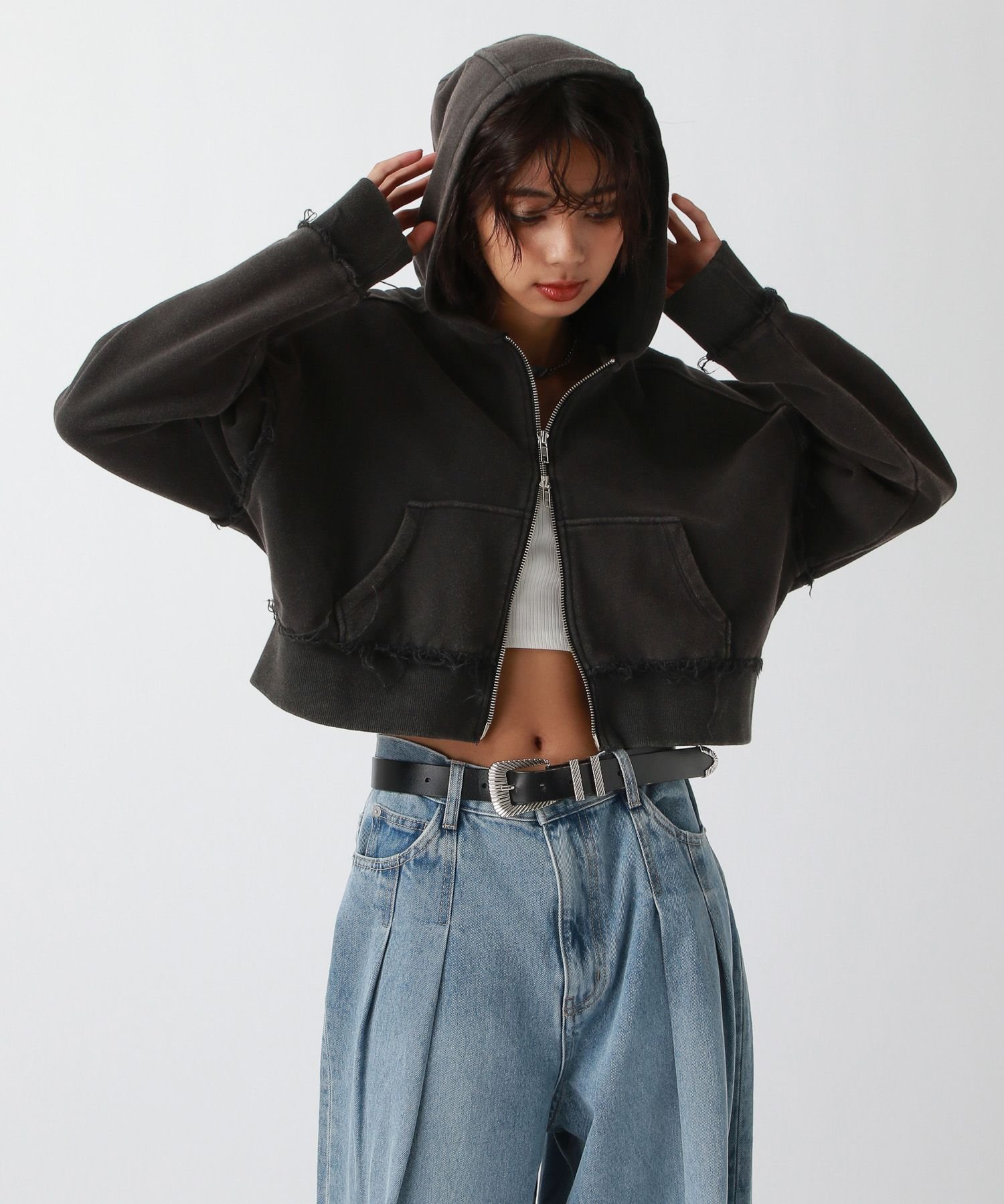 PAGEBOY グランジZIPショートパーカー ページボーイ トップス スウェット・トレーナー ホワイト グレー【送料無料】