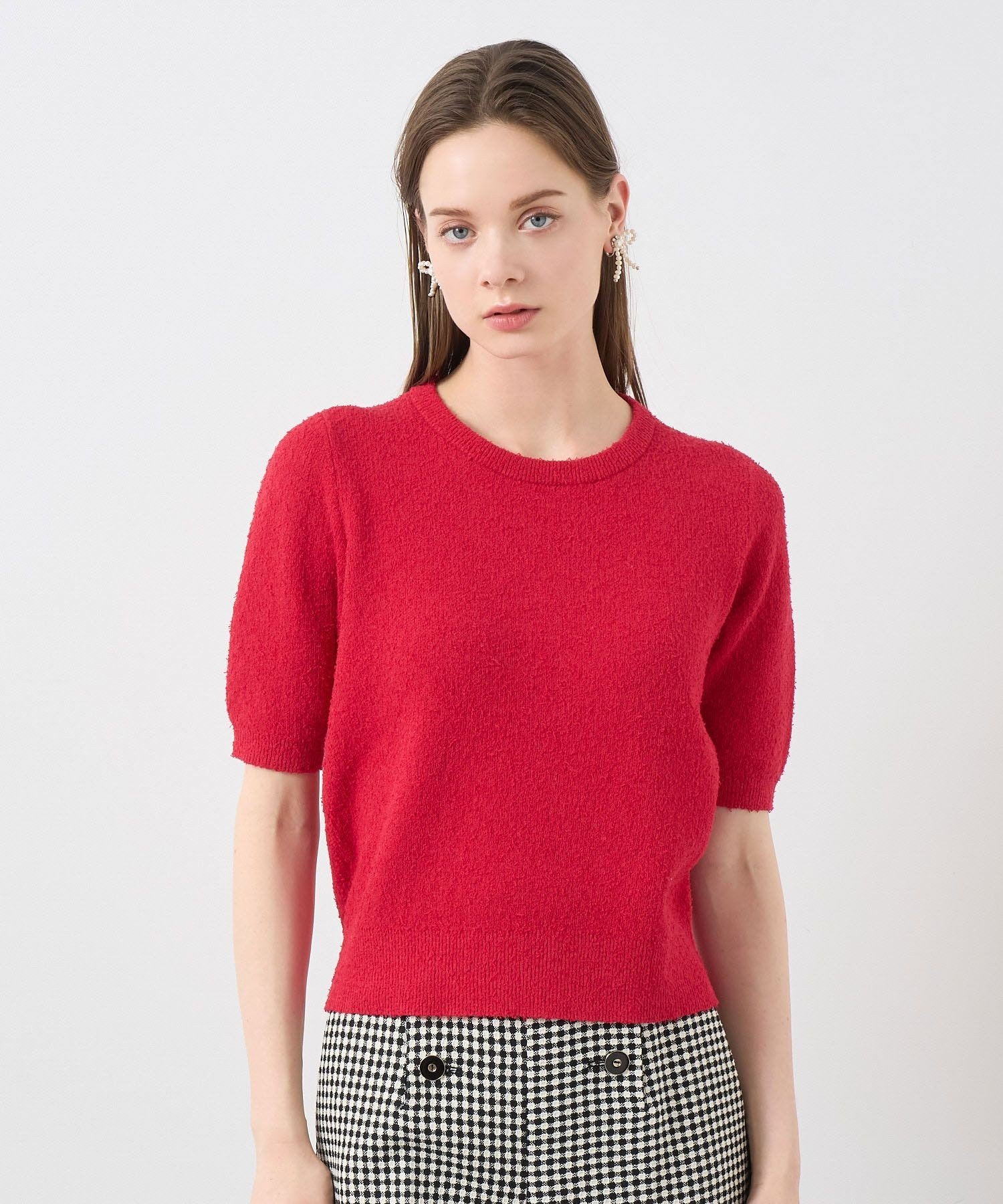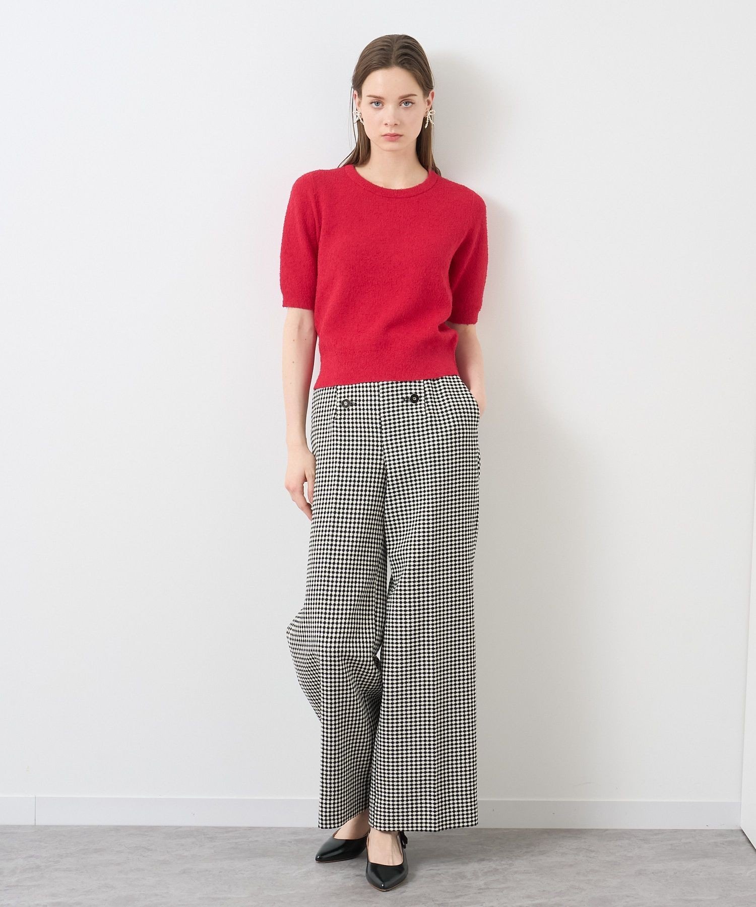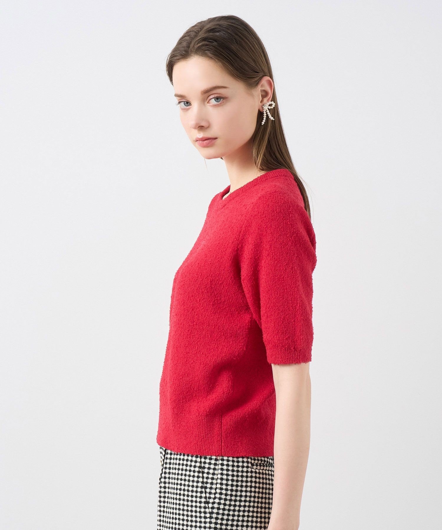 ANAYI ネップスムース5分袖 プルオーバー アナイ トップス ニット レッド ホワイト ネイビー【送料無料】