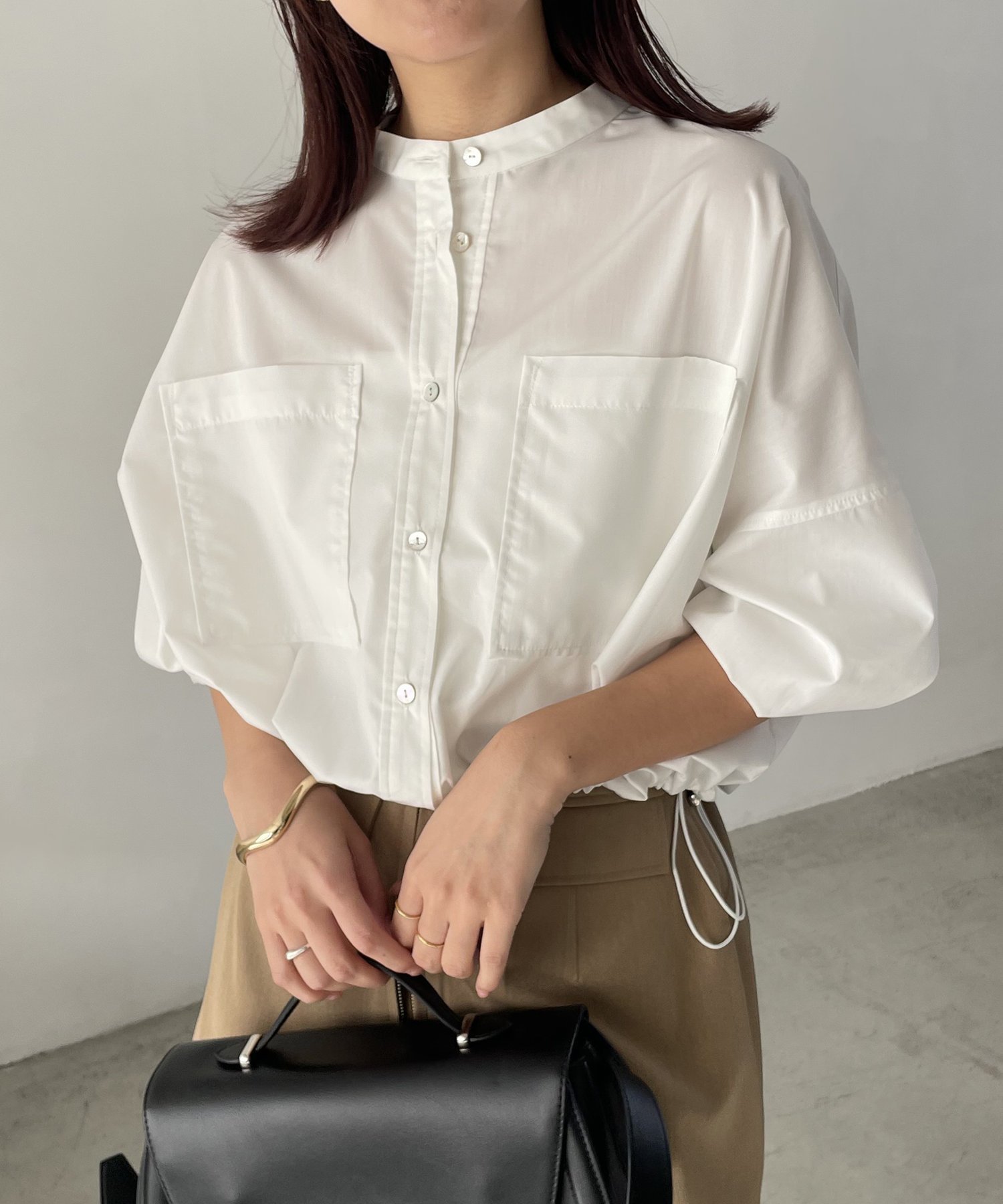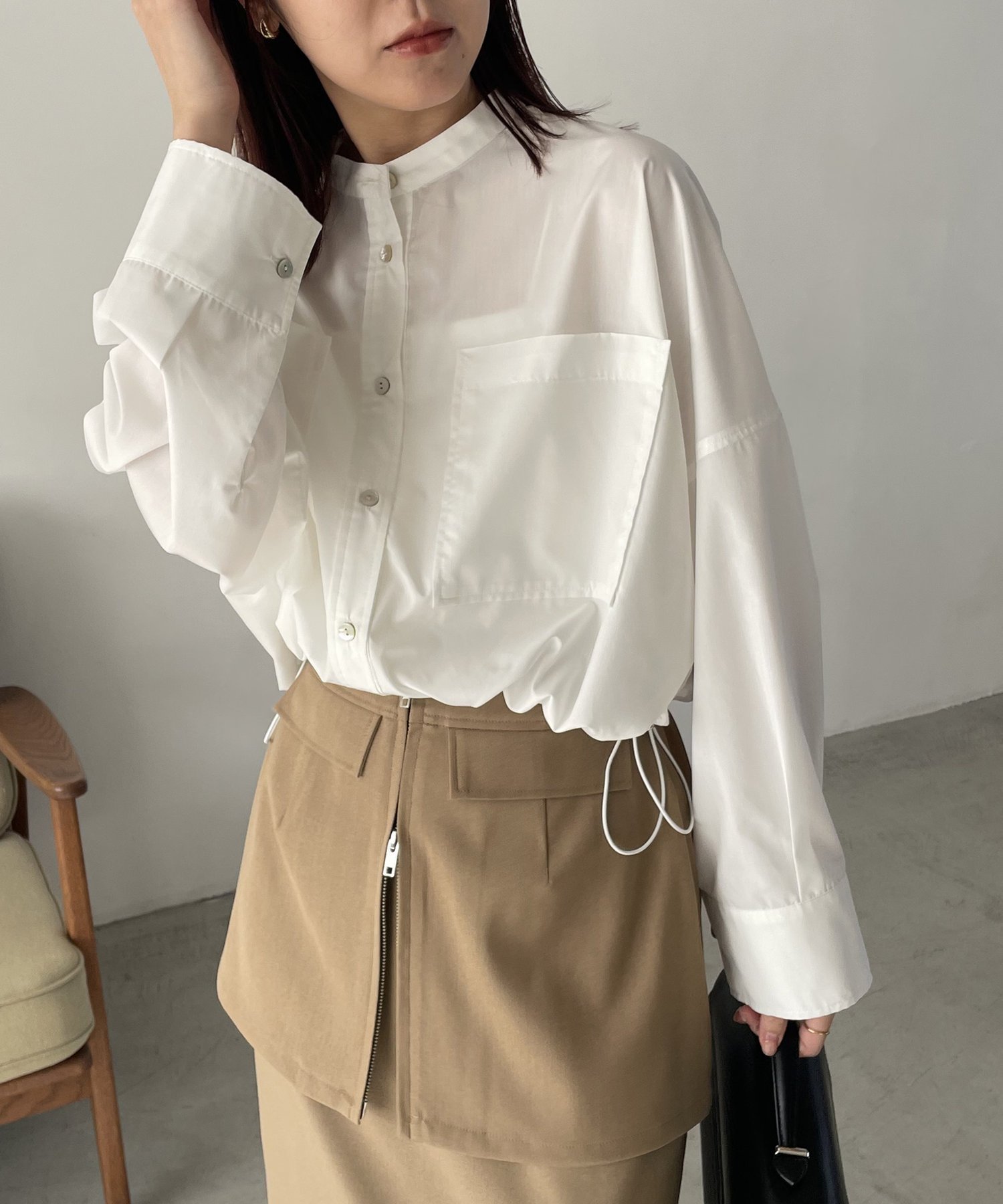 CAPRICIEUX LE'MAGE ドロストポケットシャツ カプリシュ レマージュ トップス シャツ・ブラウス ベージュ ホワイト ピンク【送料無料】
