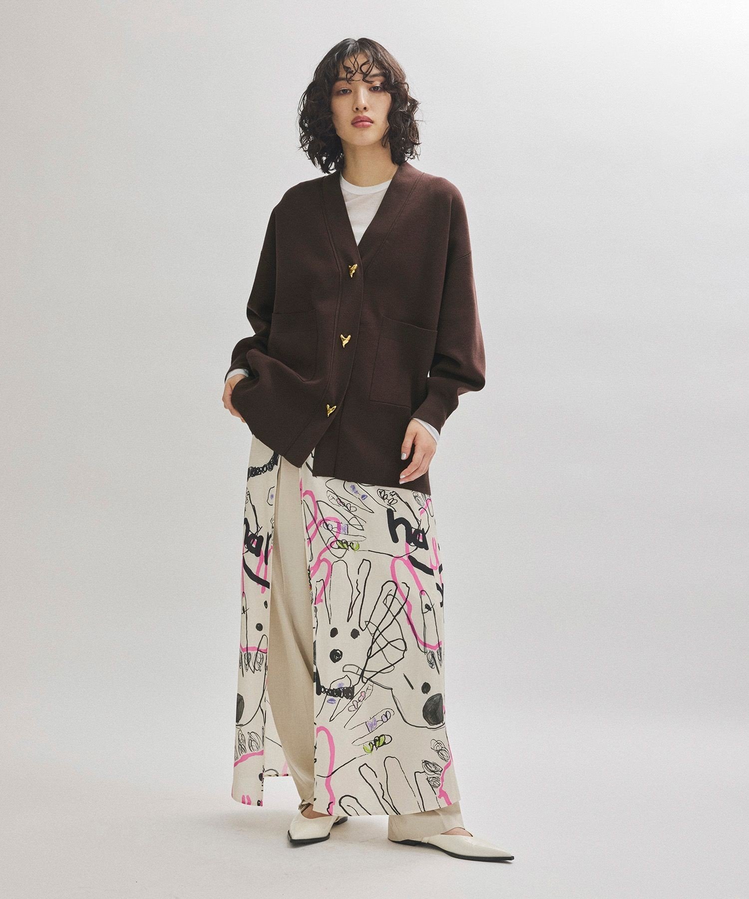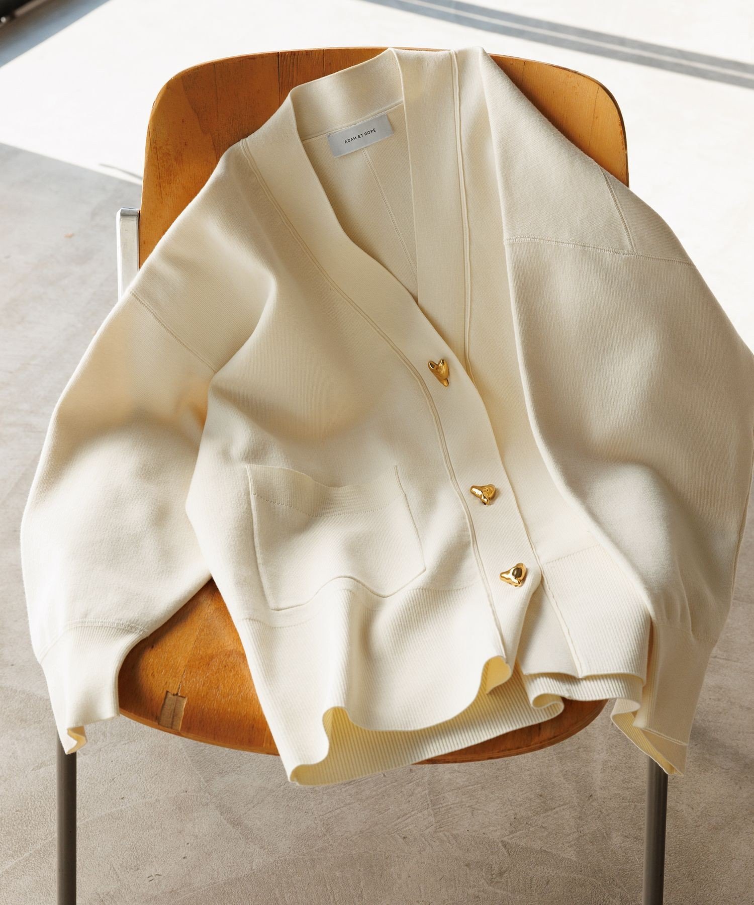 ADAM ET ROPE' FEMME 【サステナブル】ハートボタンミドルカーディガン アダムエロペ トップス カーディガン ピンク ブラック ホワイト ブラウン【送料無料】