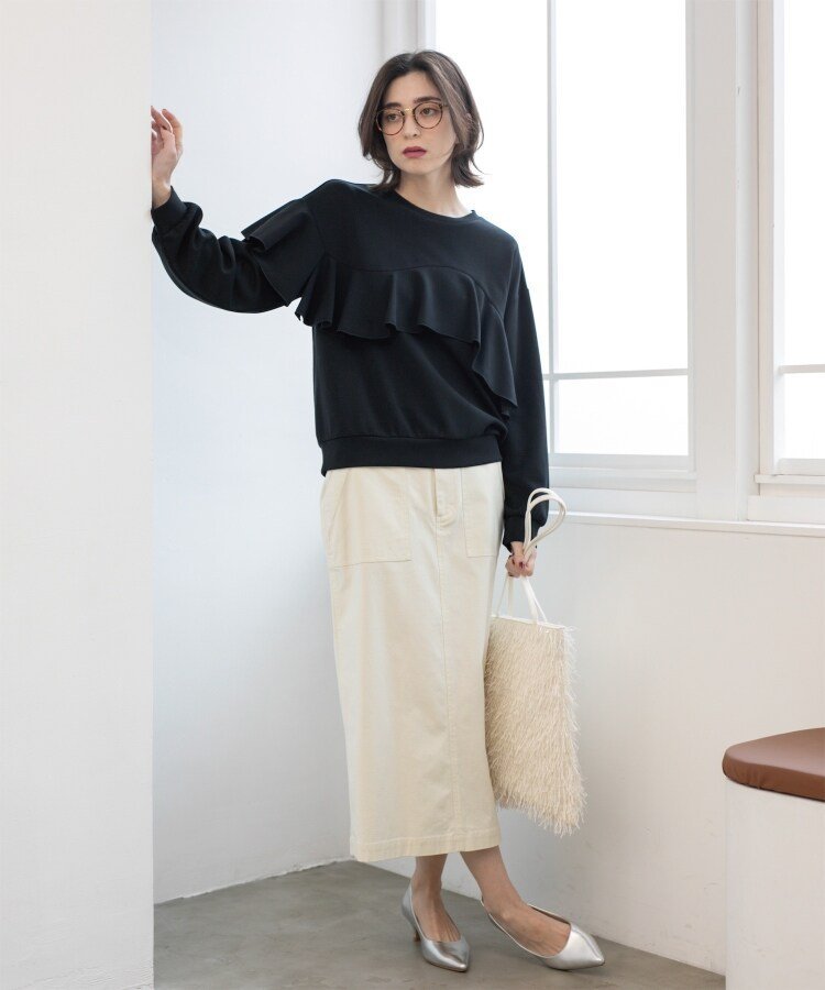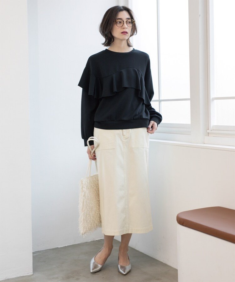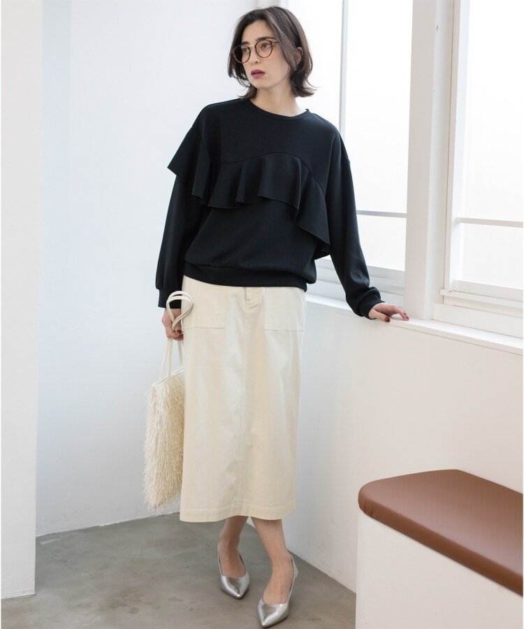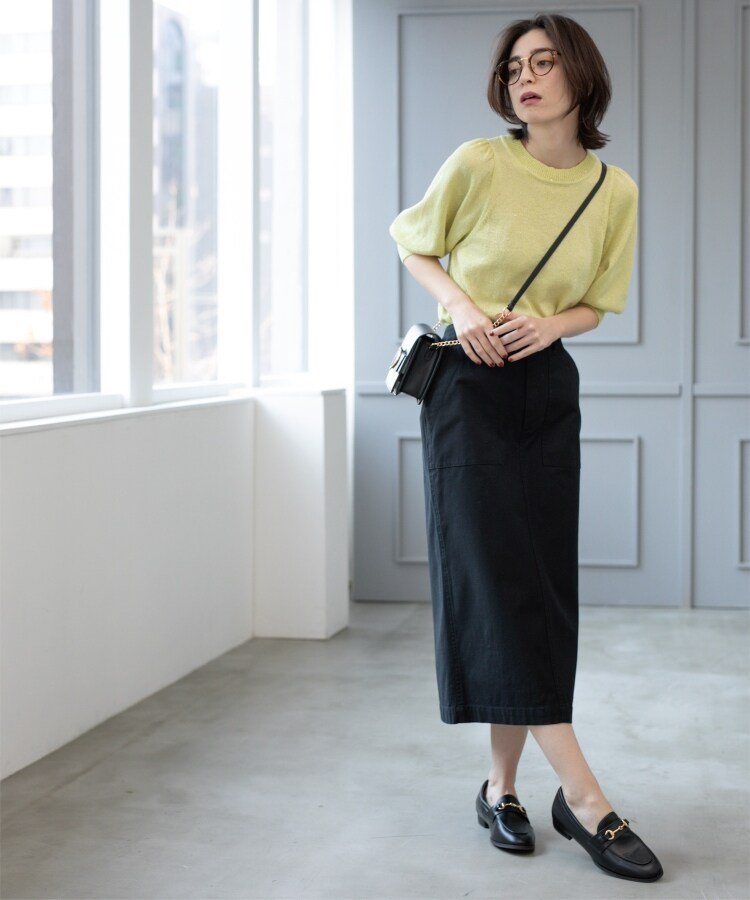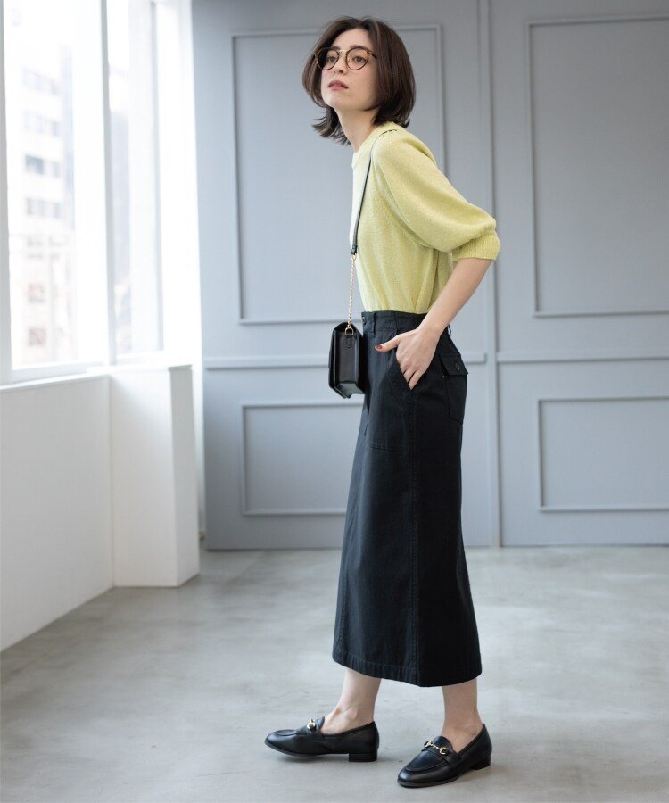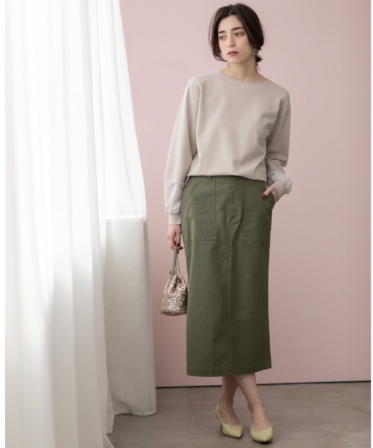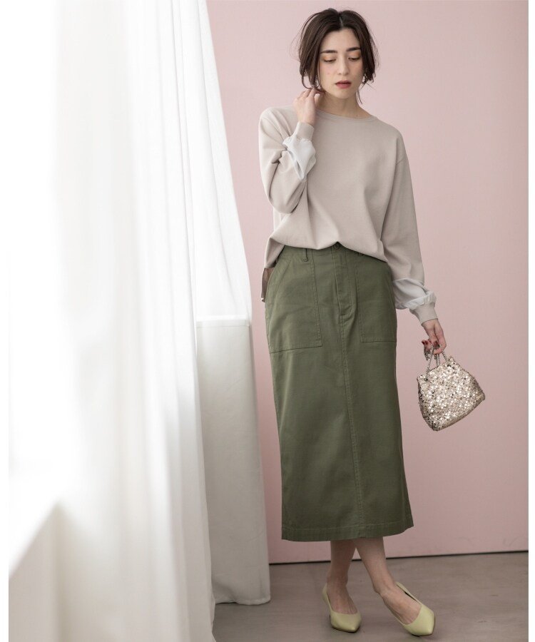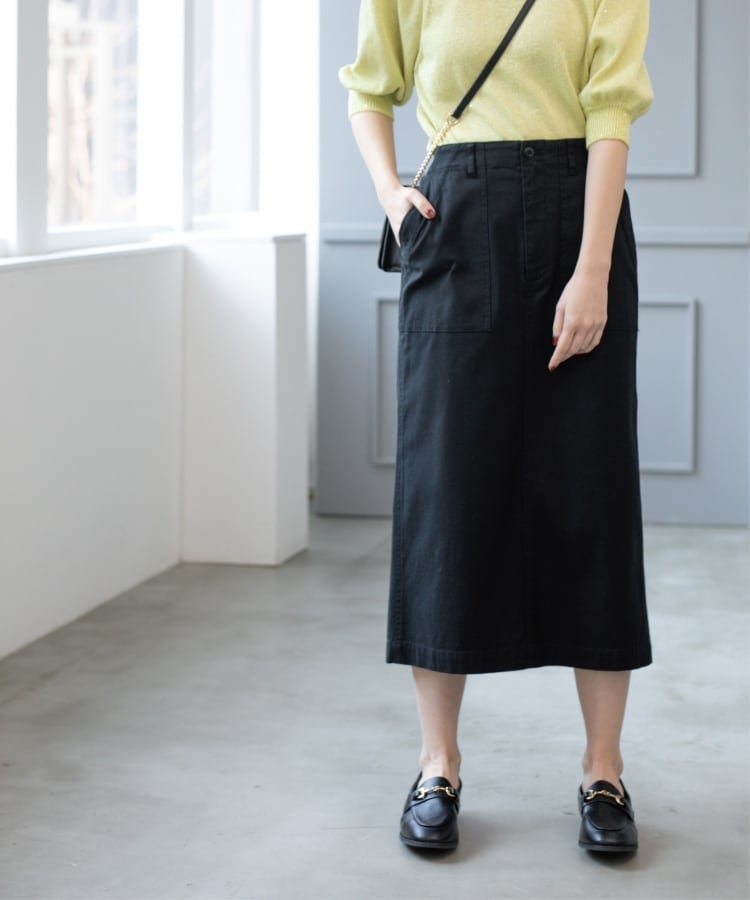 OPAQUE.CLIP 《S-LLsize》ストレッチベイカーナロースカート【洗濯機洗い可】 オペークドットクリップ スカート その他のスカート カーキグリーン ブラック ホワイト【送料無料】