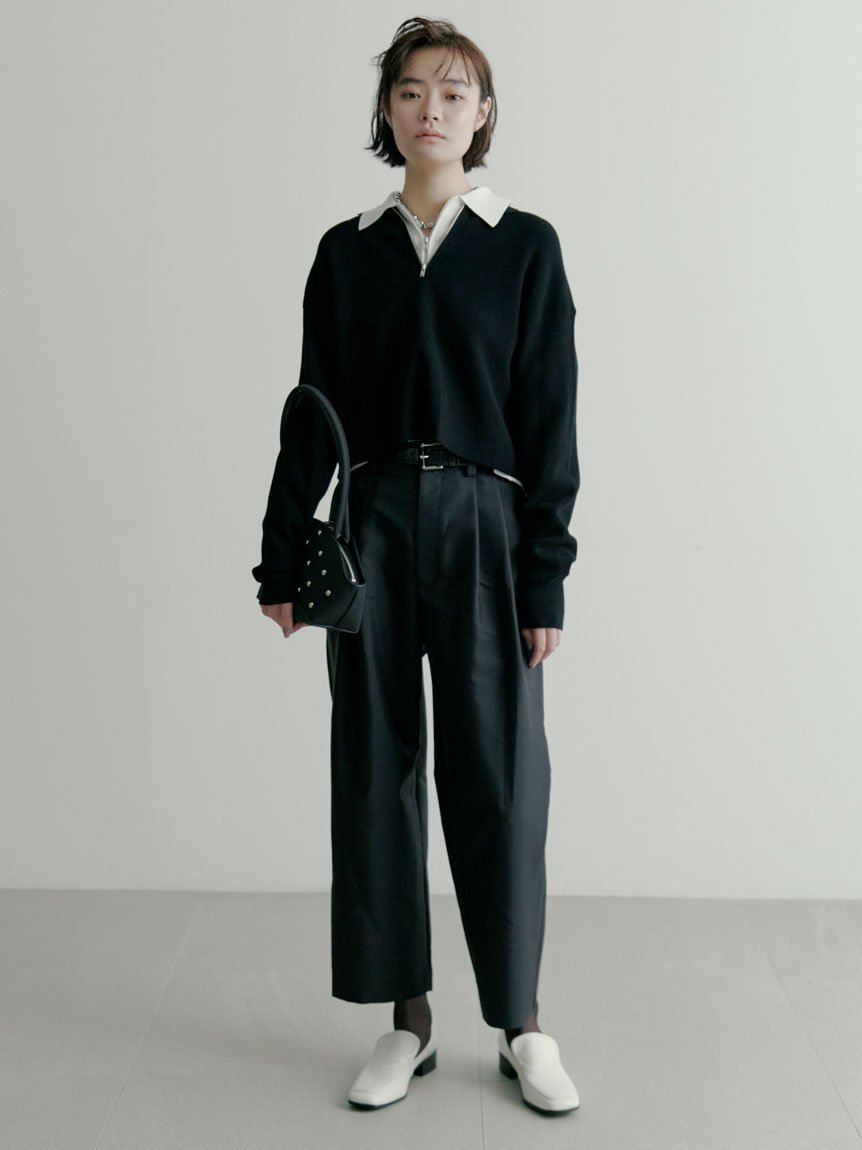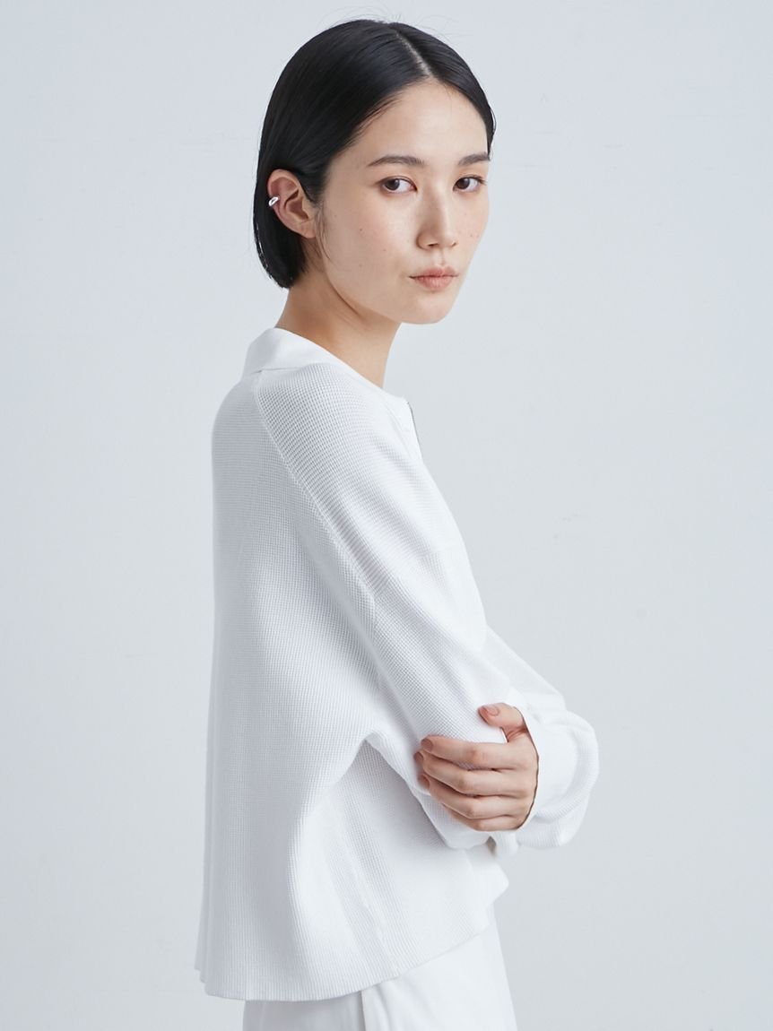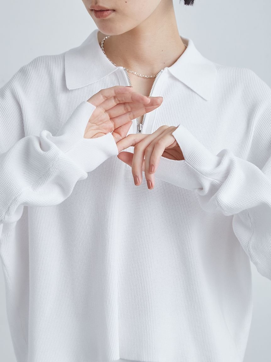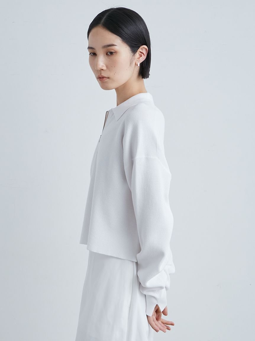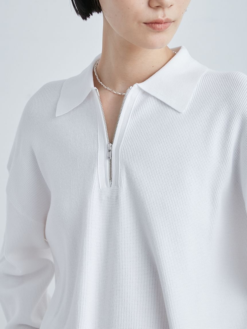 MIESROHE ハーフZIP衿 ワッフルニット ミースロエ トップス ニット ホワイト ブラック イエロー【送料無料】