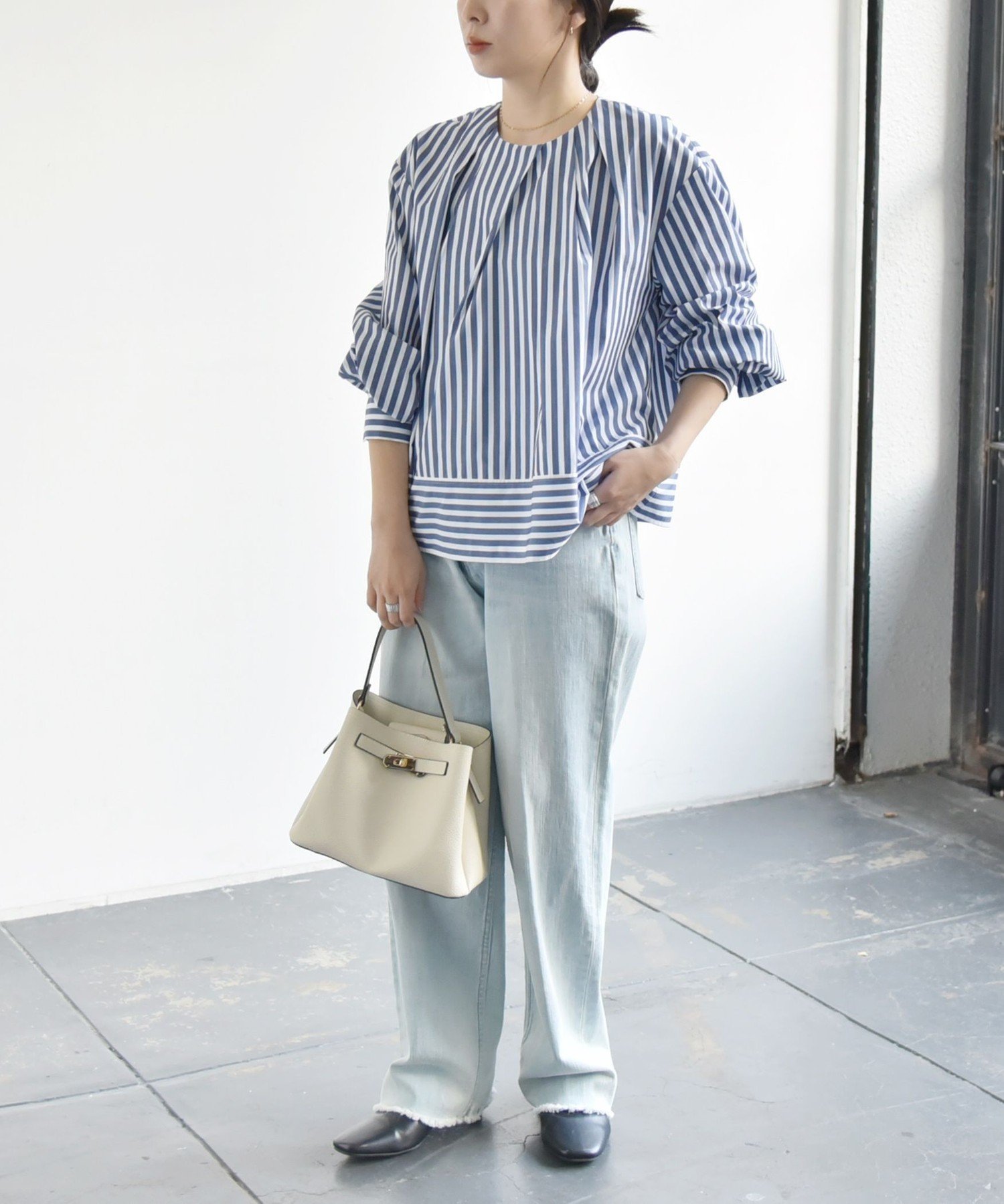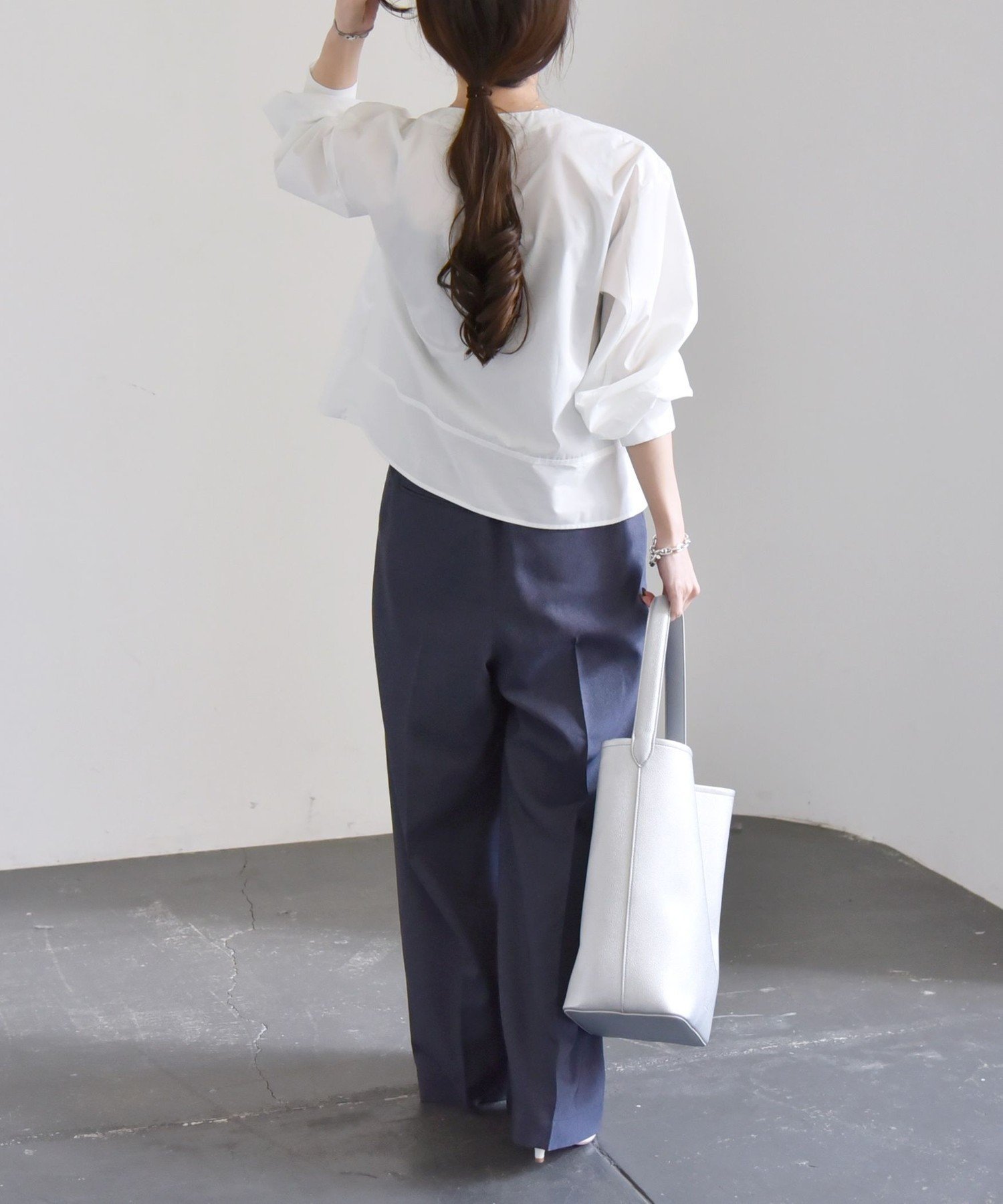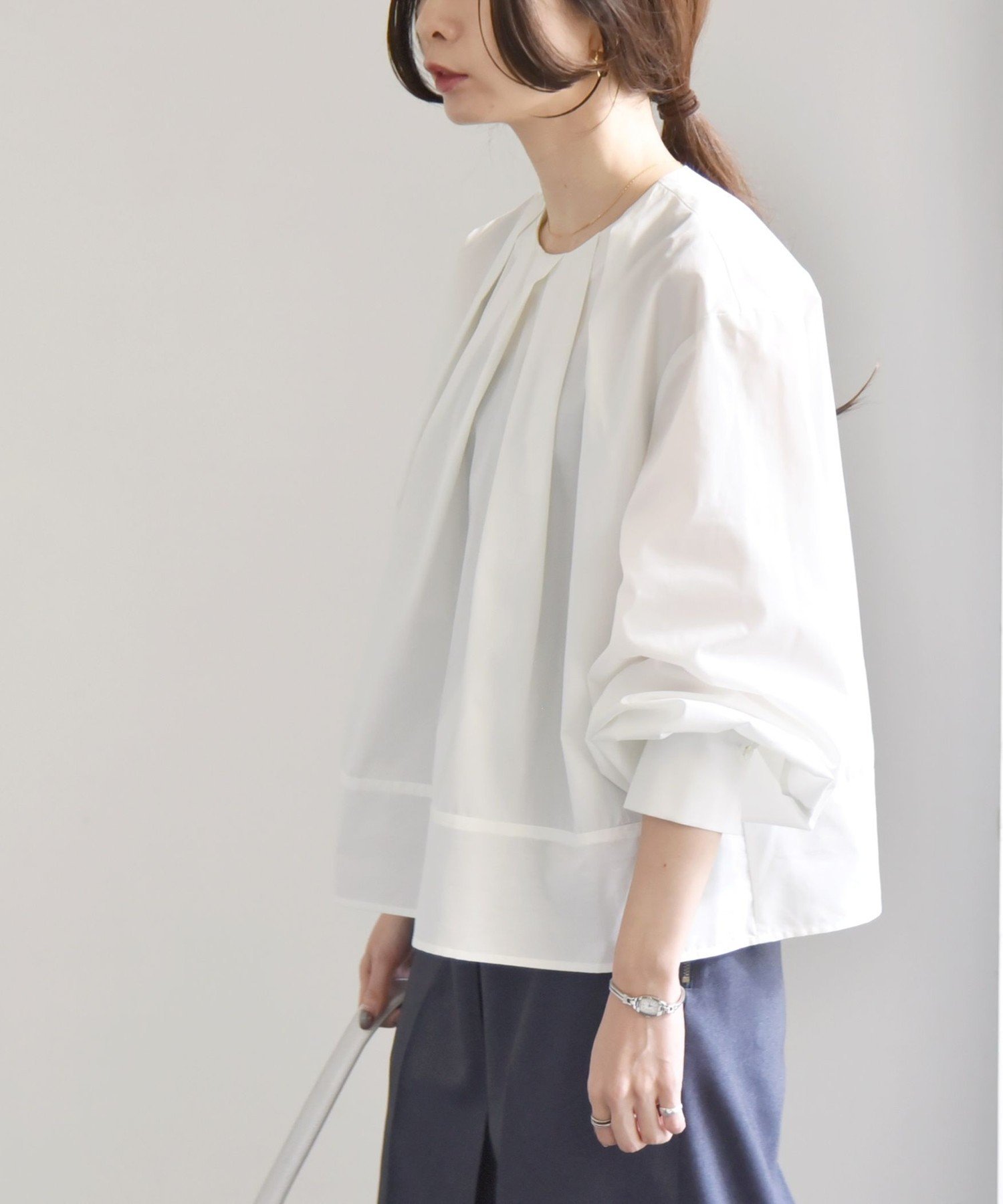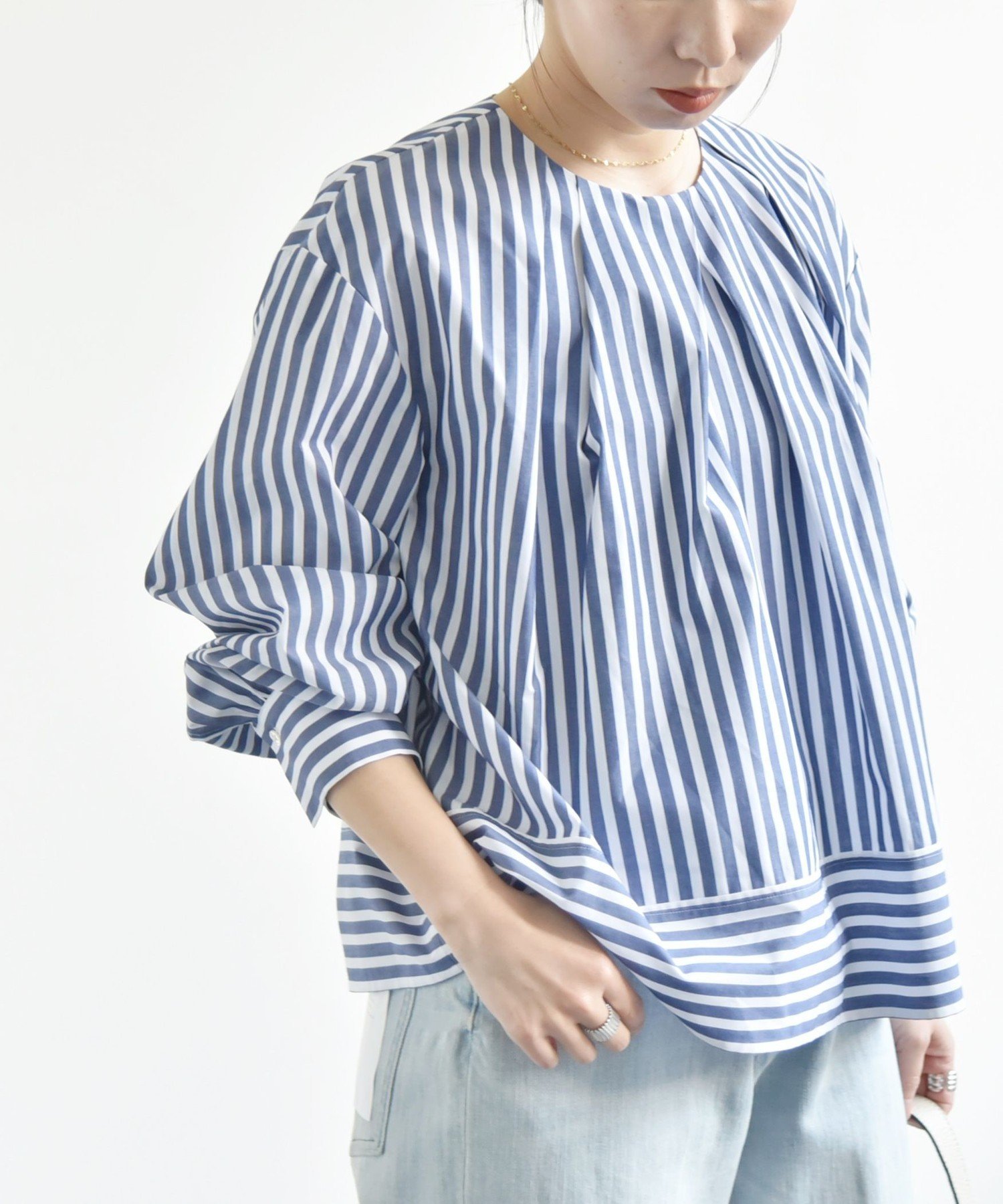 quaranciel quaranciel:<洗濯機可能>REPREVE タック フレア シャツ ブラウス シップス トップス シャツ・ブラウス ホワイト ネイビー【送料無料】