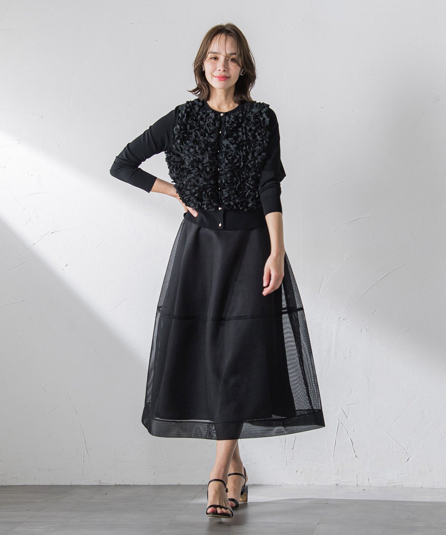 Viaggio Blu フラワーチュールカーディガン ビアッジョブルー トップス カーディガン ホワイト ブラック【送料無料】
