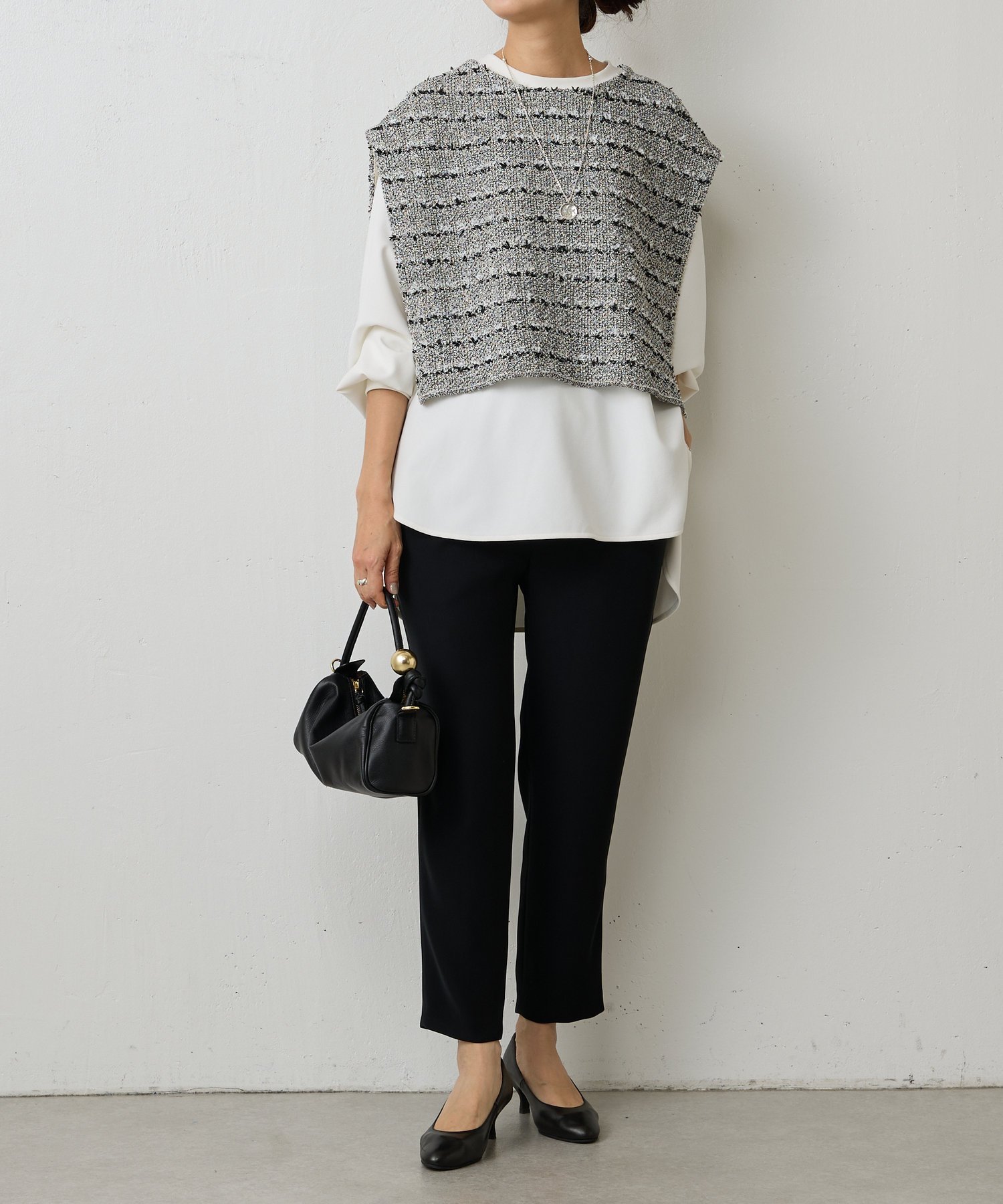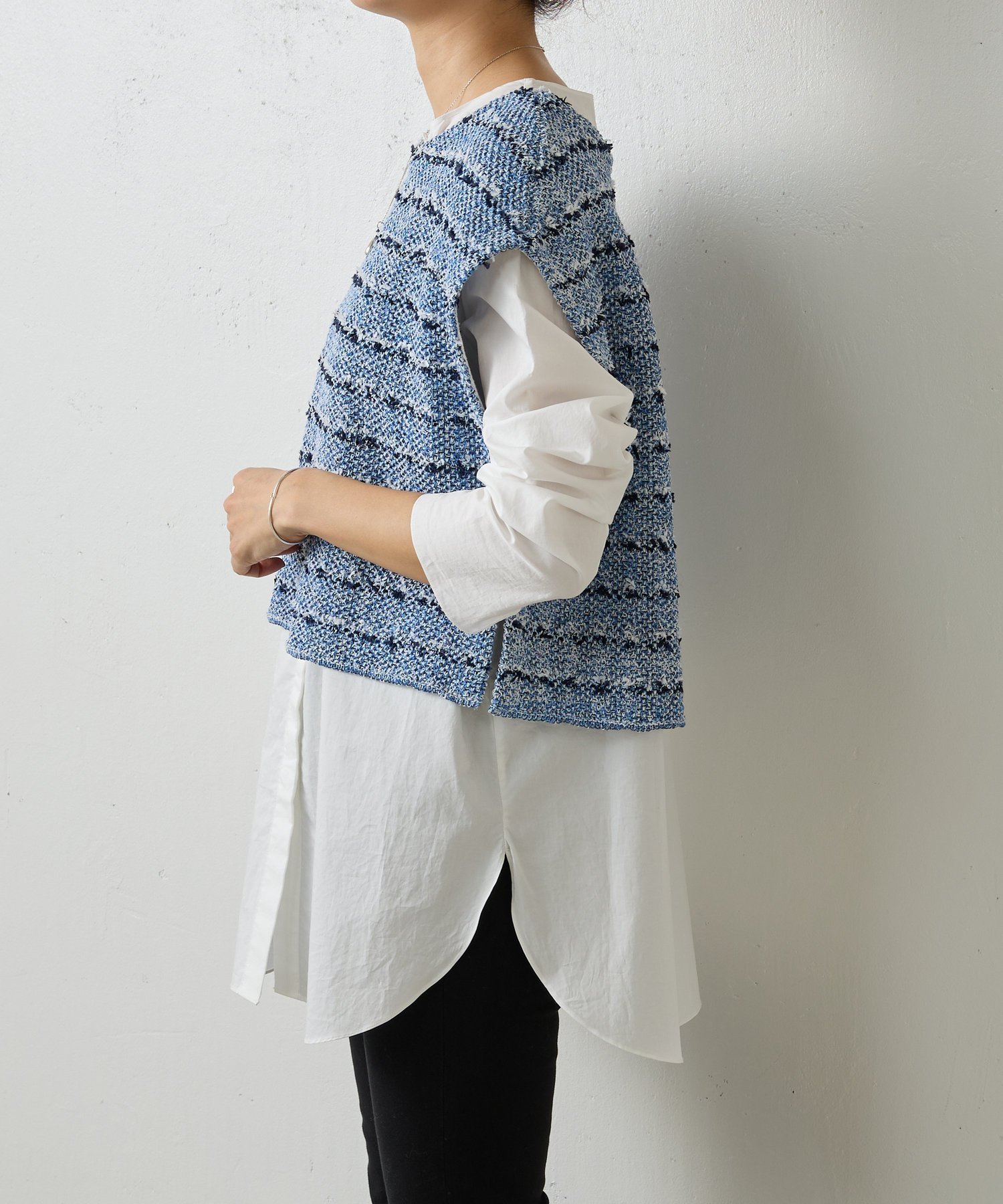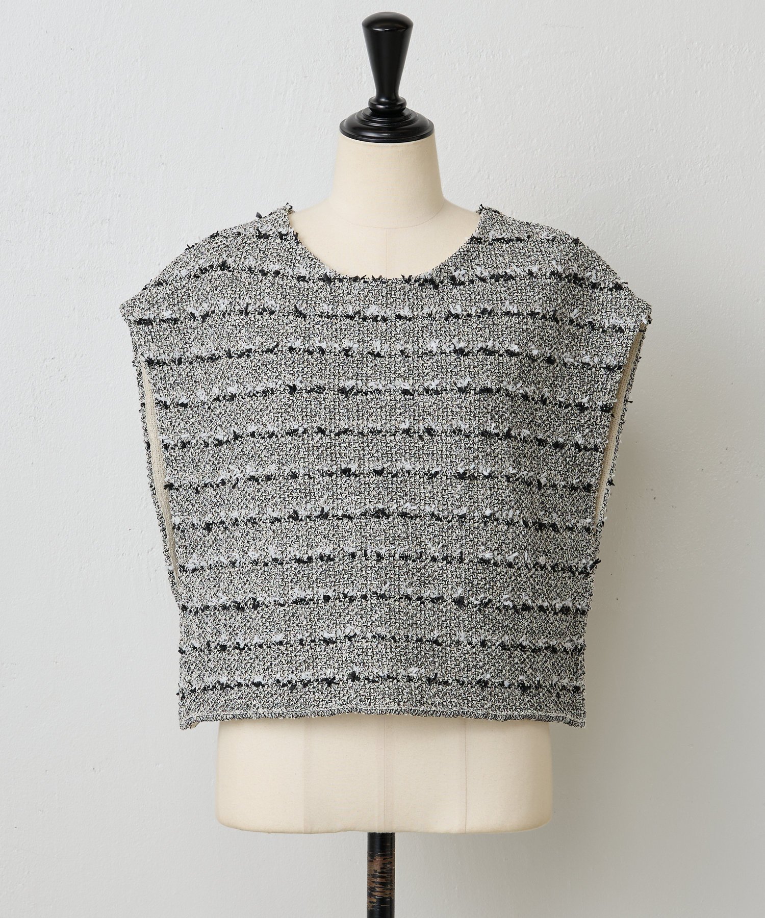 BEARDSLEY ツイードニットポンチョ ビアズリー トップス ニット ブラック ホワイト ブルー【送料無料】
