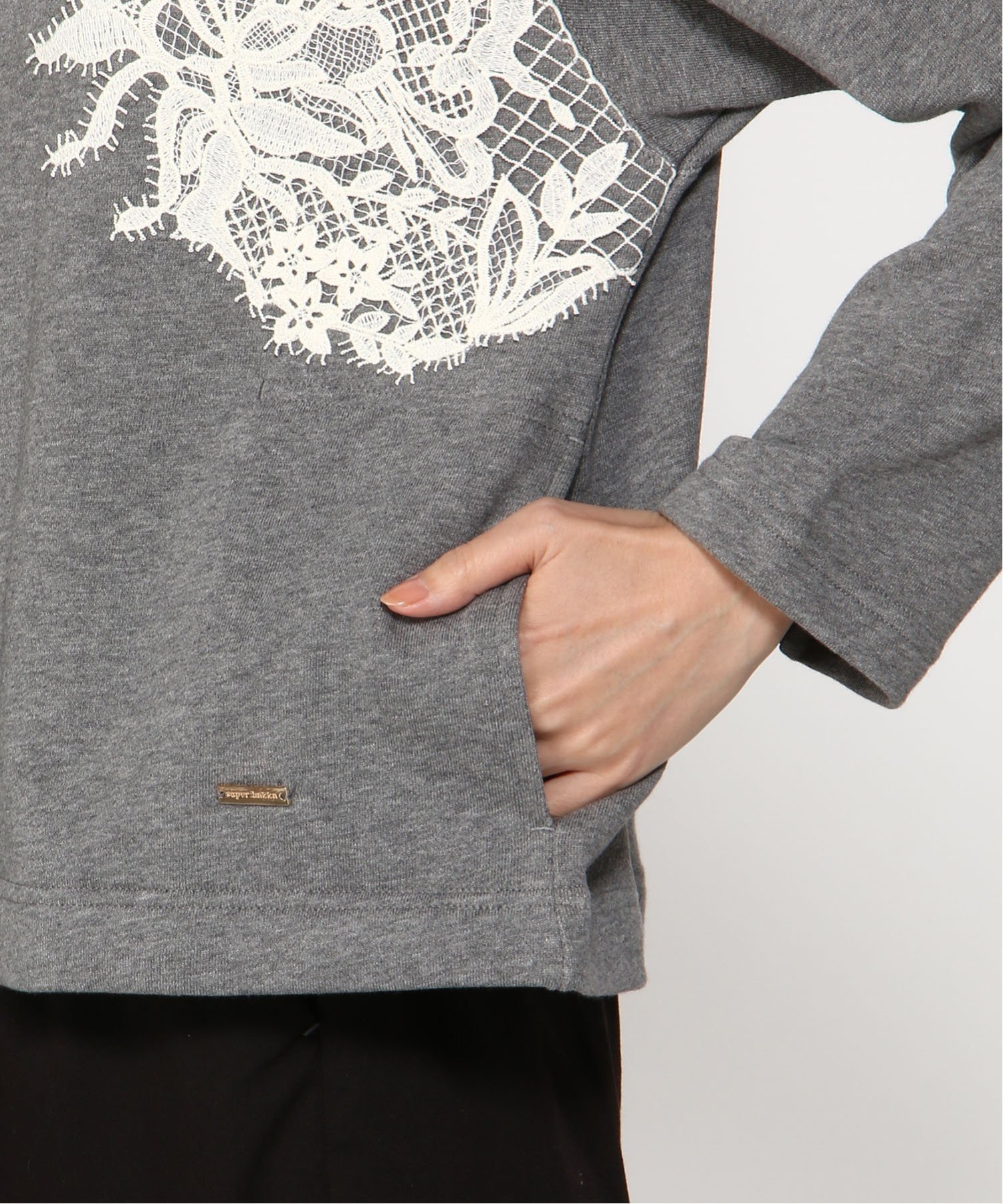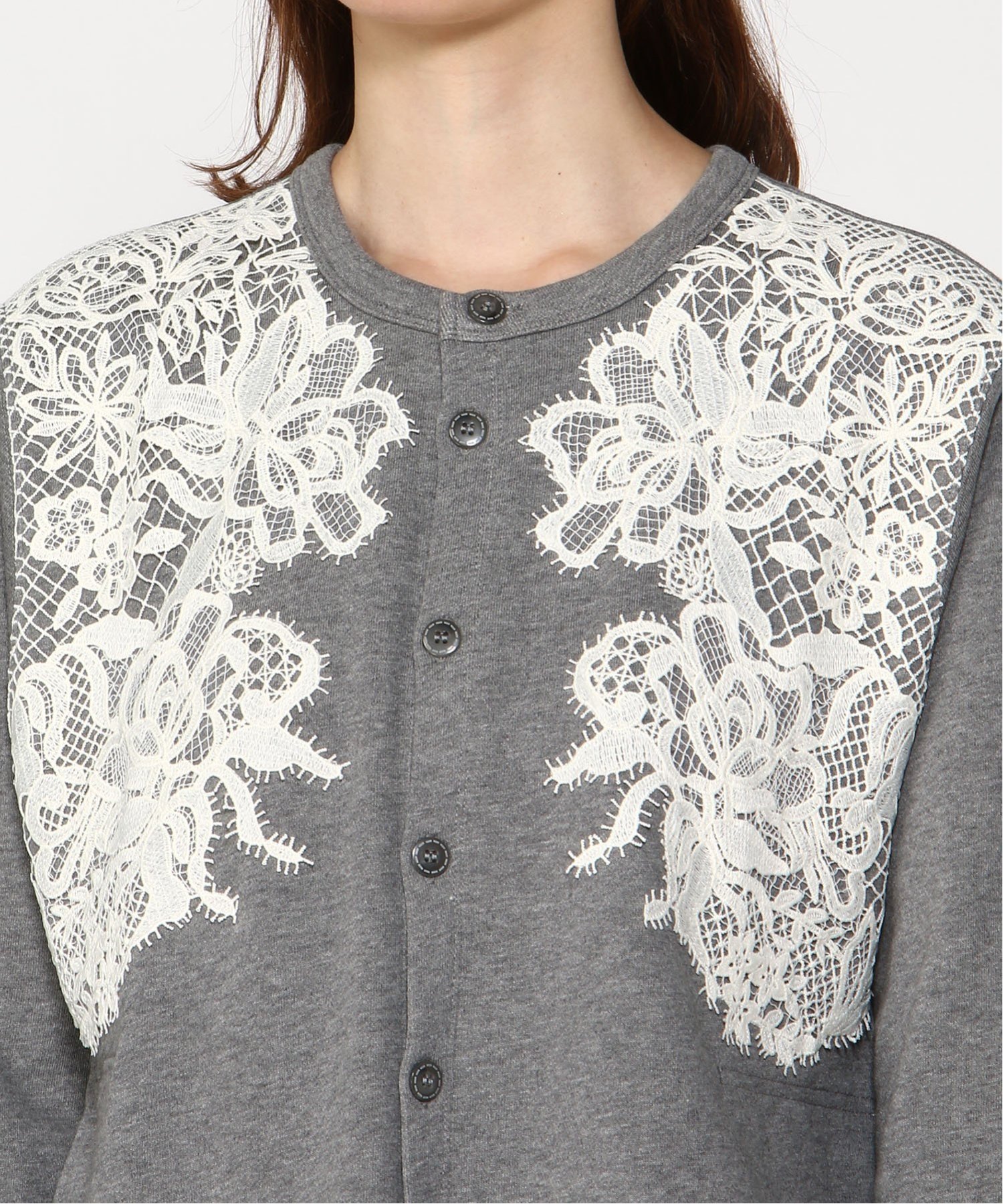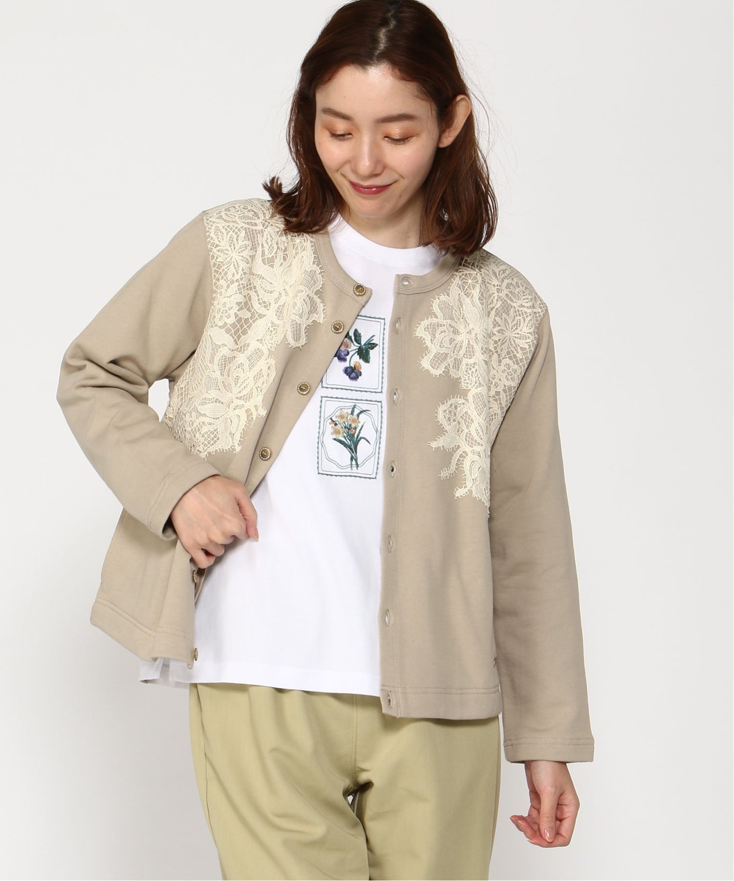 SUPER HAKKA ローズモチーフケミカルレース×裏毛カーディガン ハッカ トップス カーディガン ベージュ グレー【送料無料】