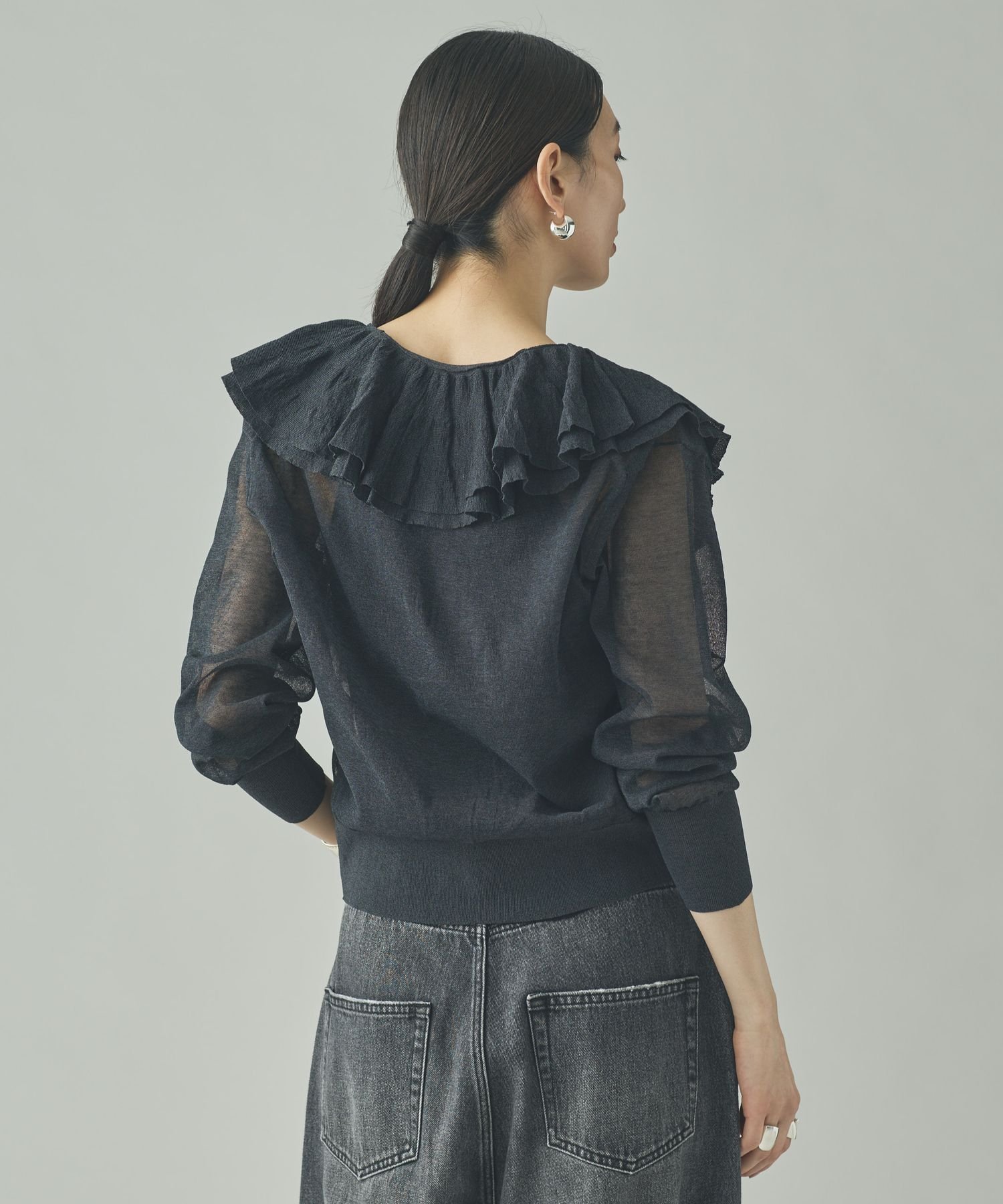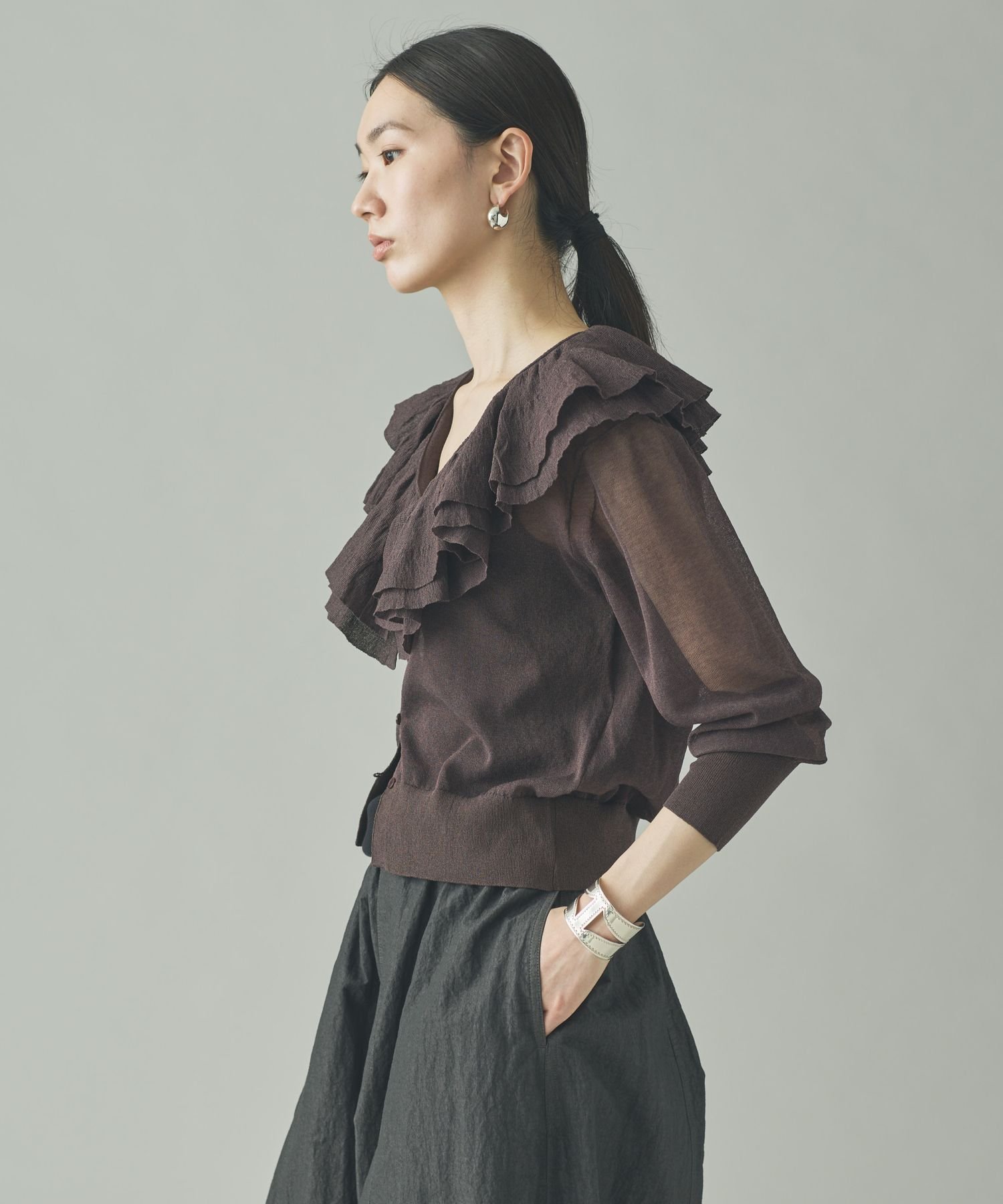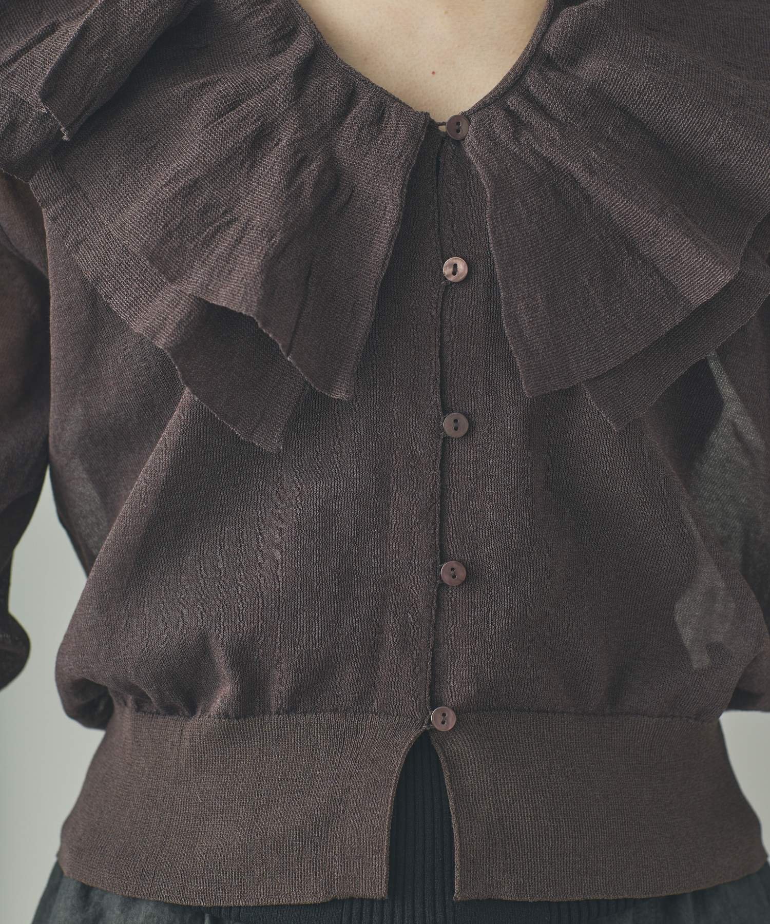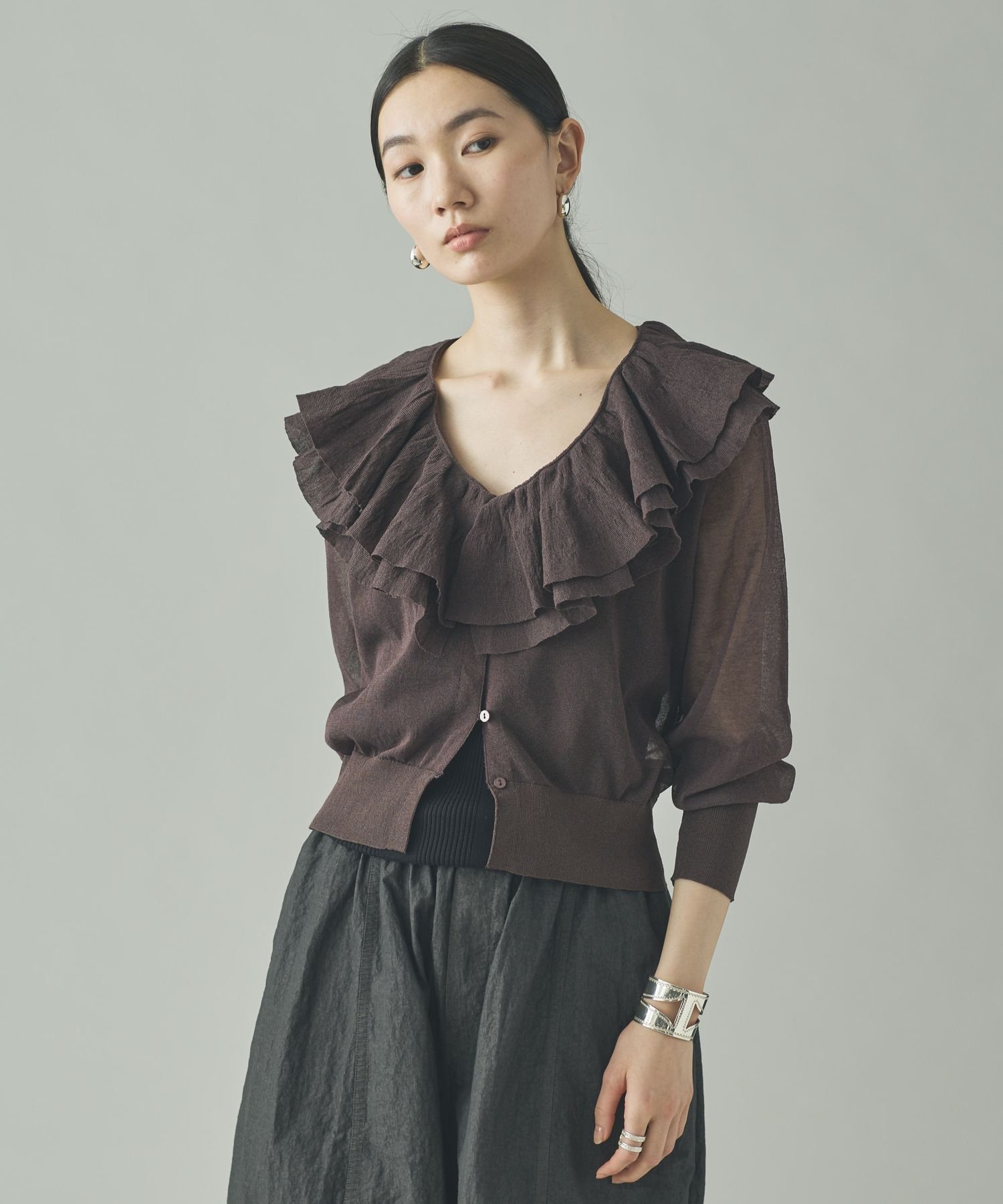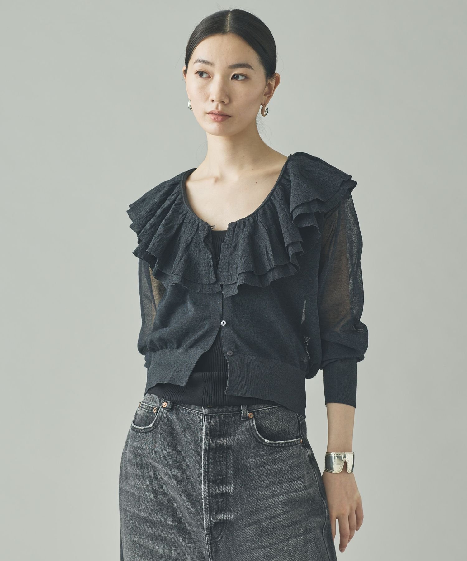 Curensology ラッフルニットカーディガン カレンソロジー トップス ニット ブラック グレー イエロー【送料無料】