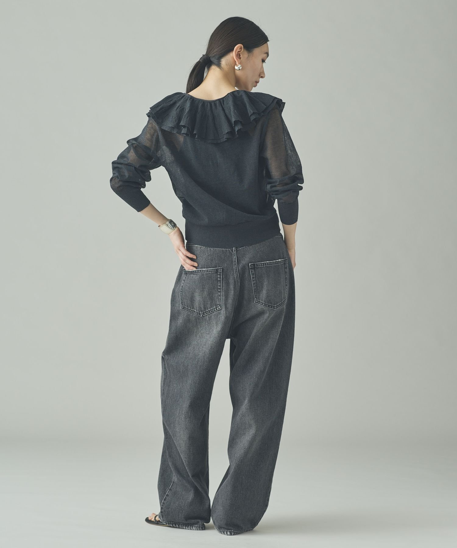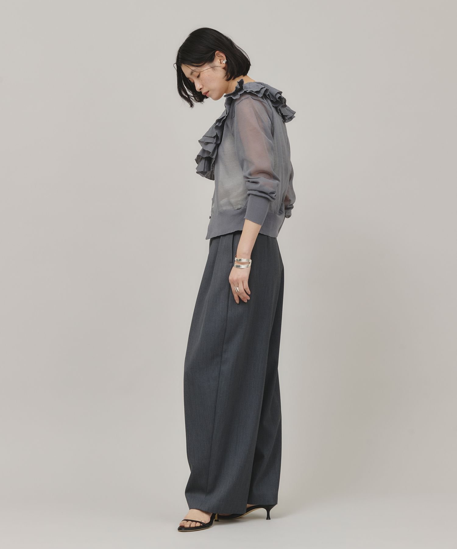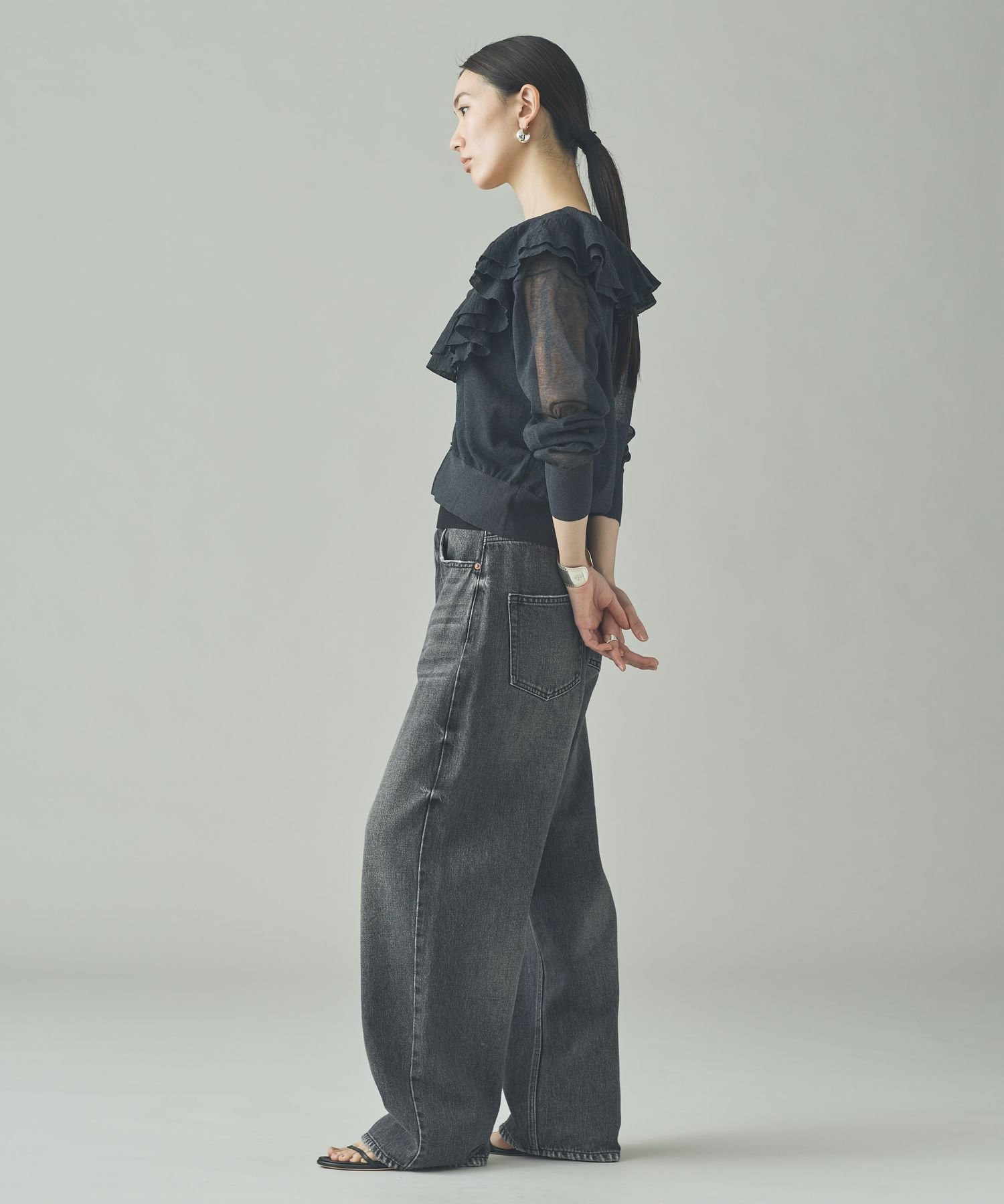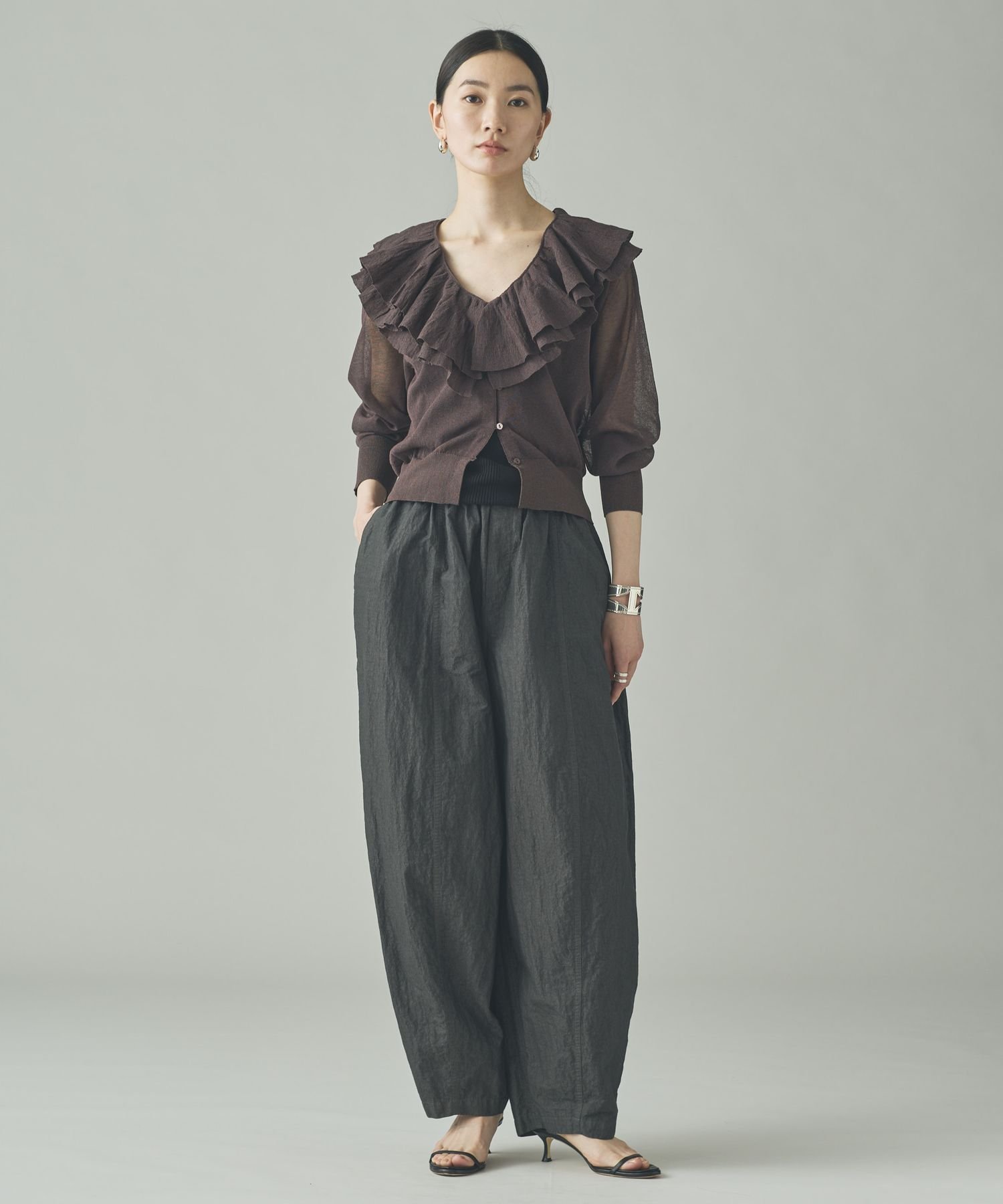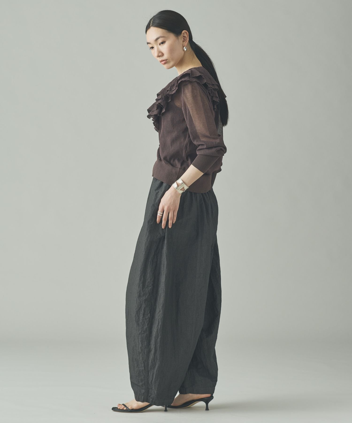 Curensology ラッフルニットカーディガン カレンソロジー トップス ニット ブラック グレー イエロー【送料無料】