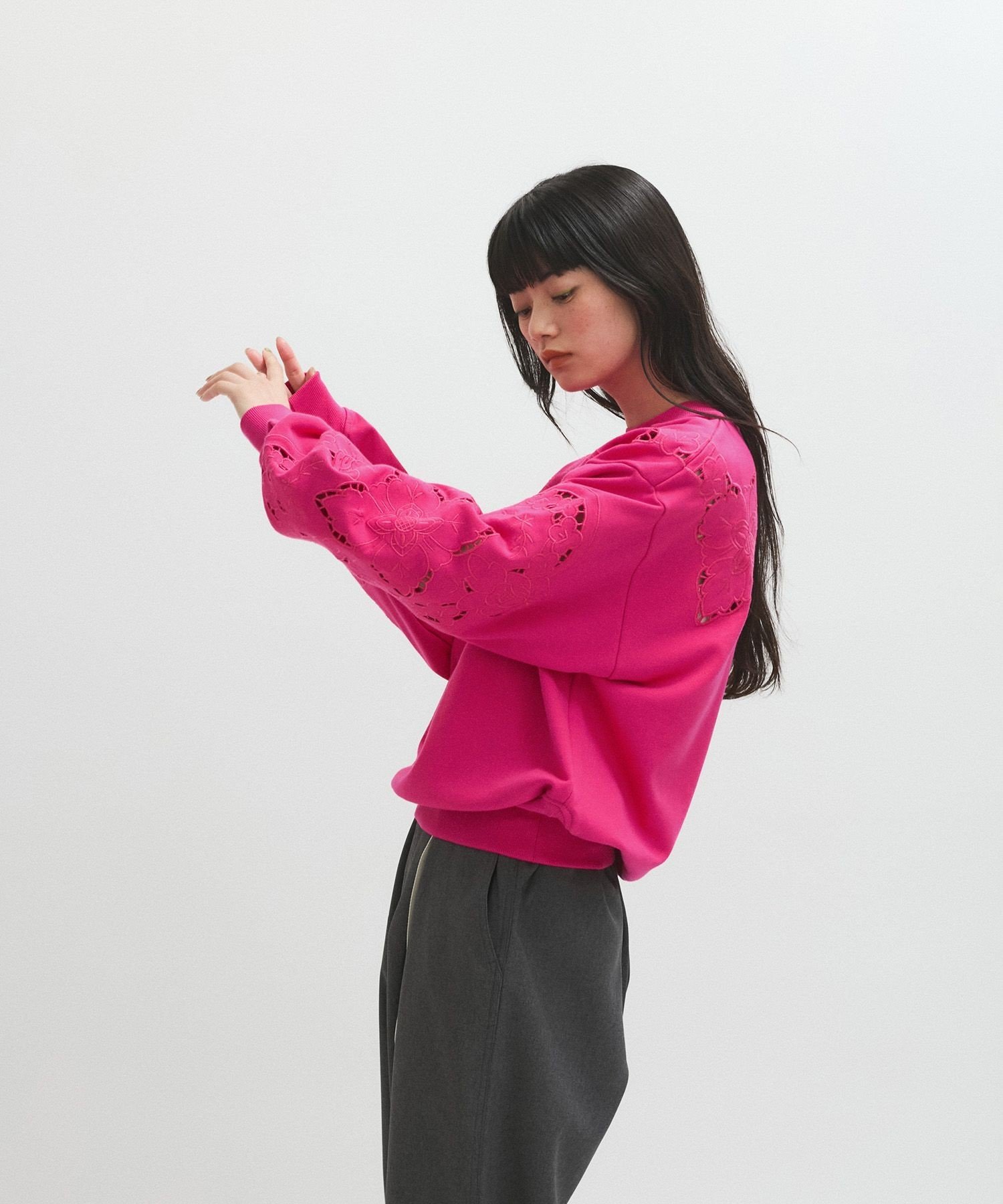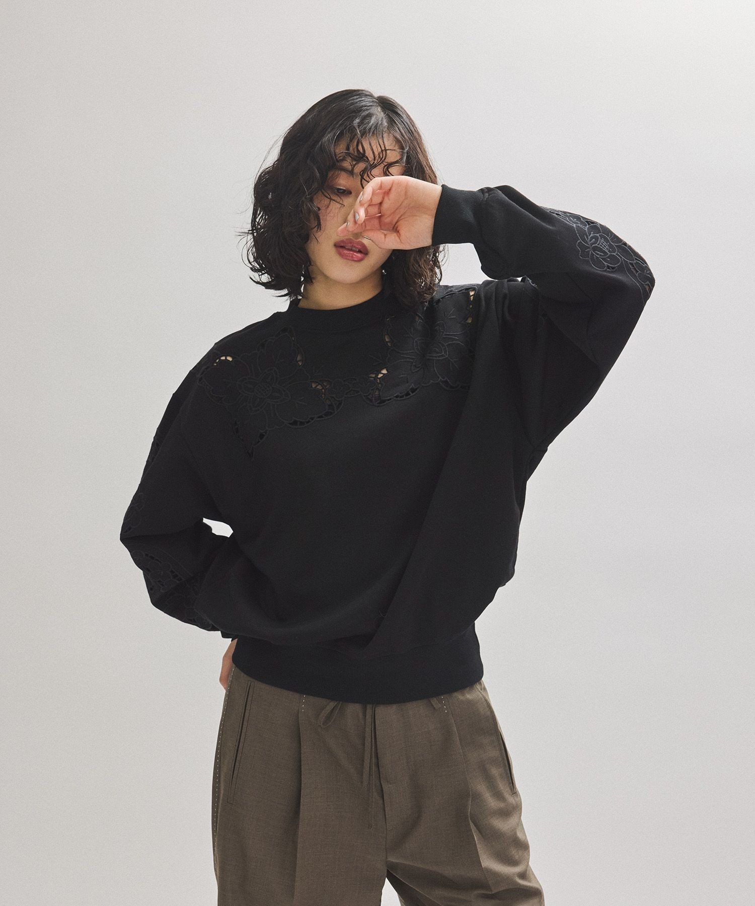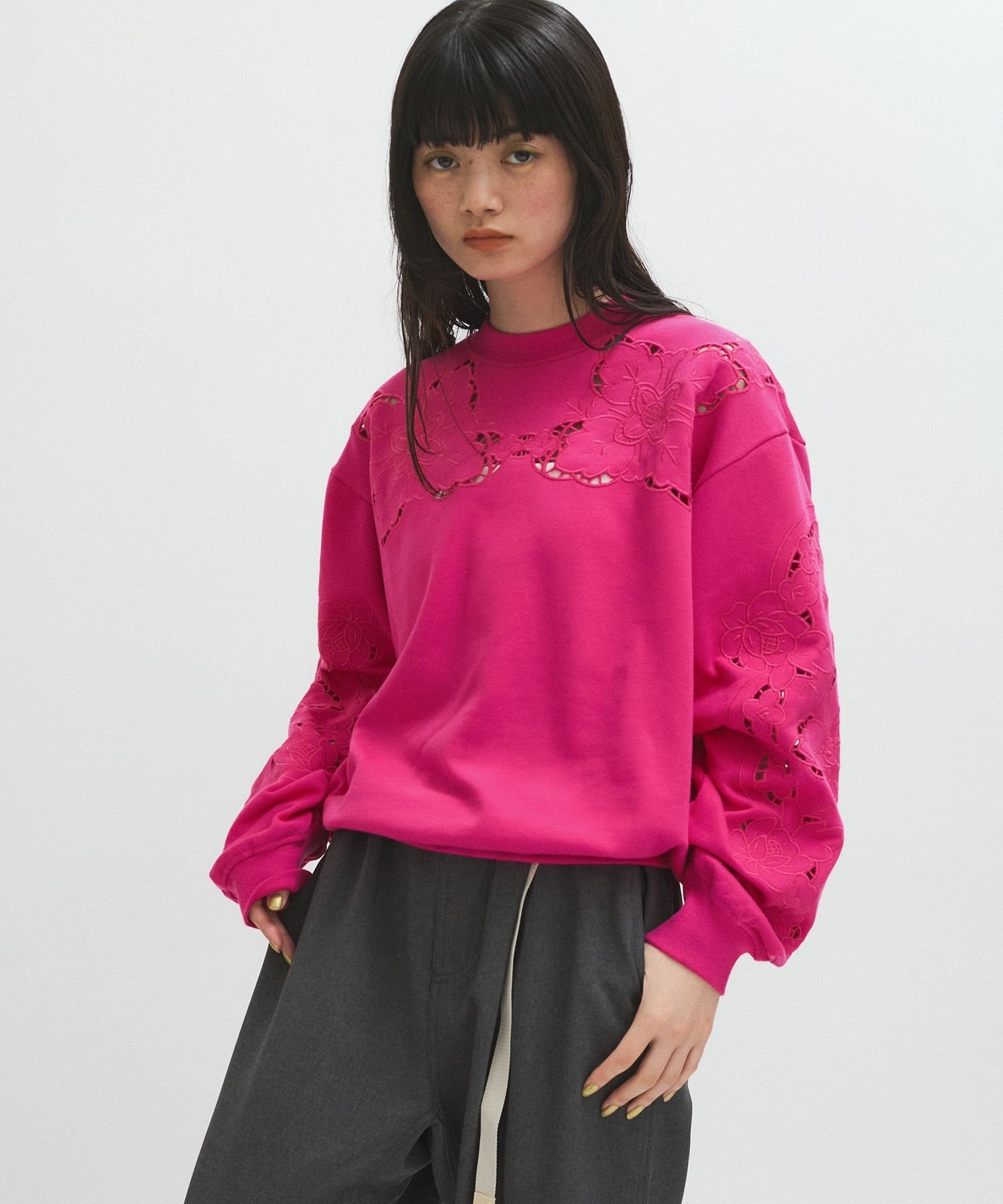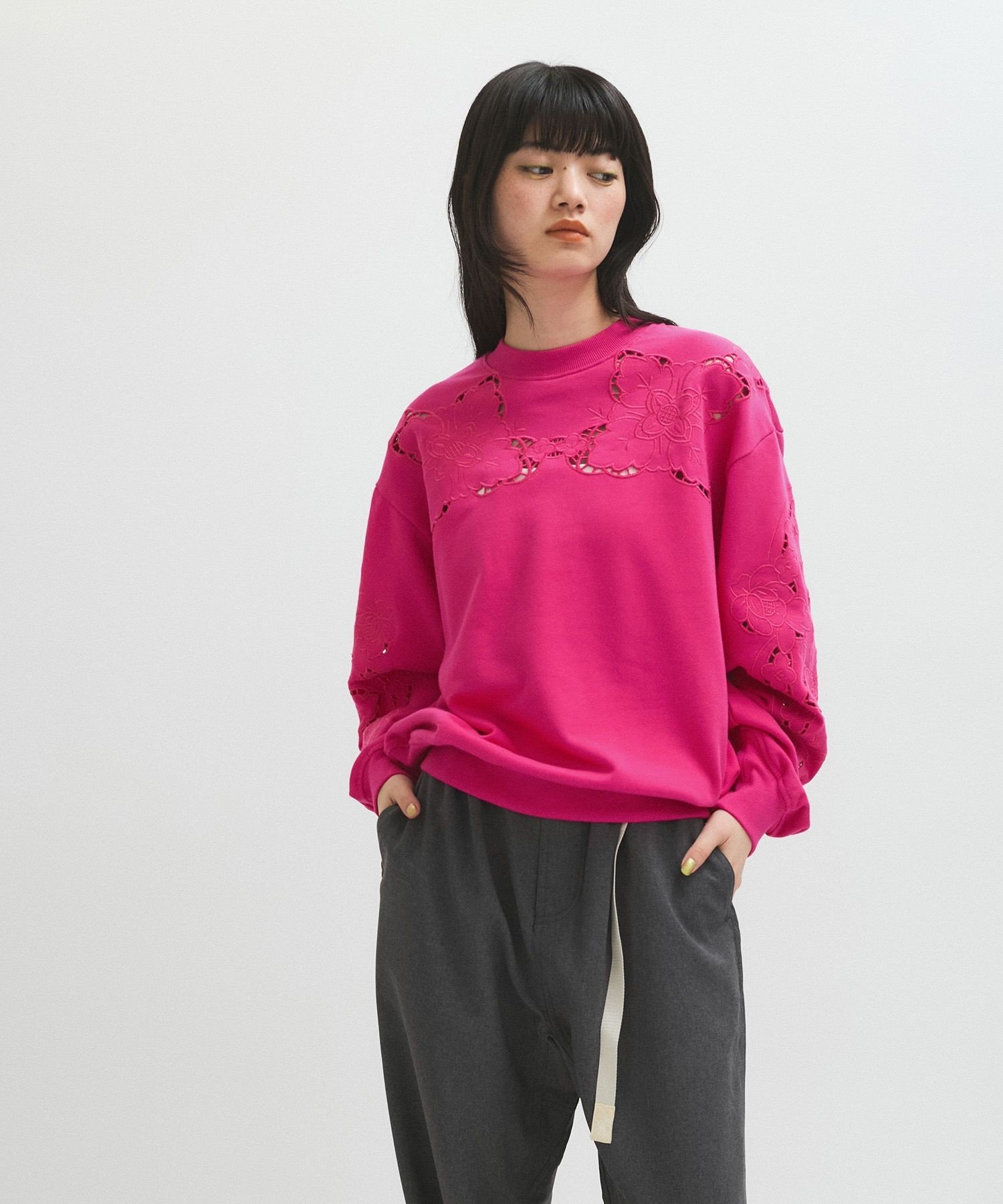ADAM ET ROPE' FEMME 【VIOLETTE ROOM for ADAM ET ROPE'】 EMBROIDERY SWEATSHIRT アダムエロペ トップス スウェット・トレーナー ホワイト ブラック ピンク【送料無料】
