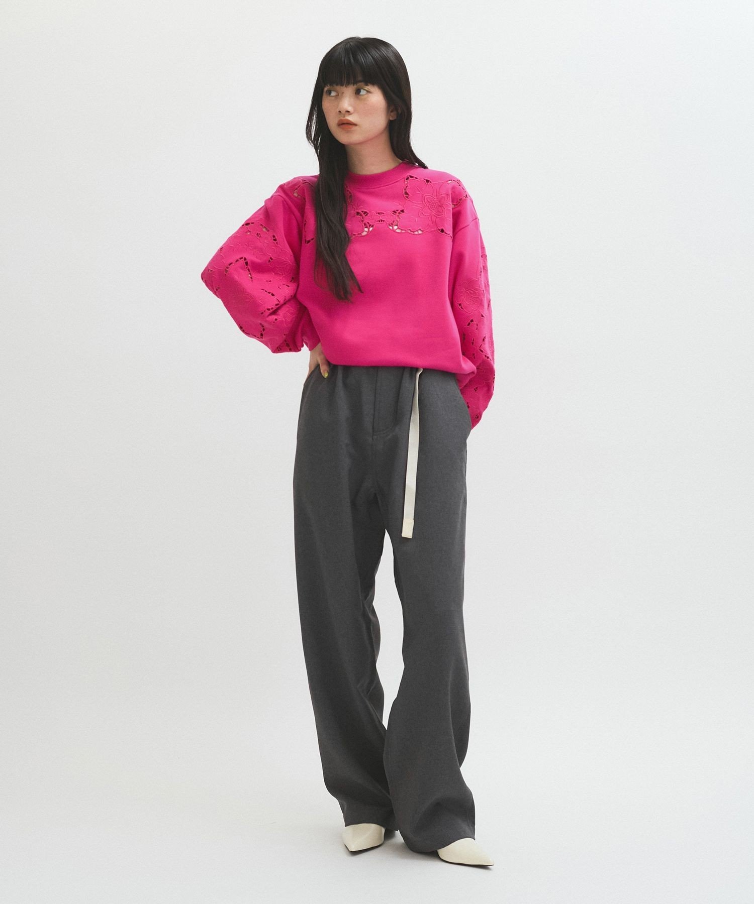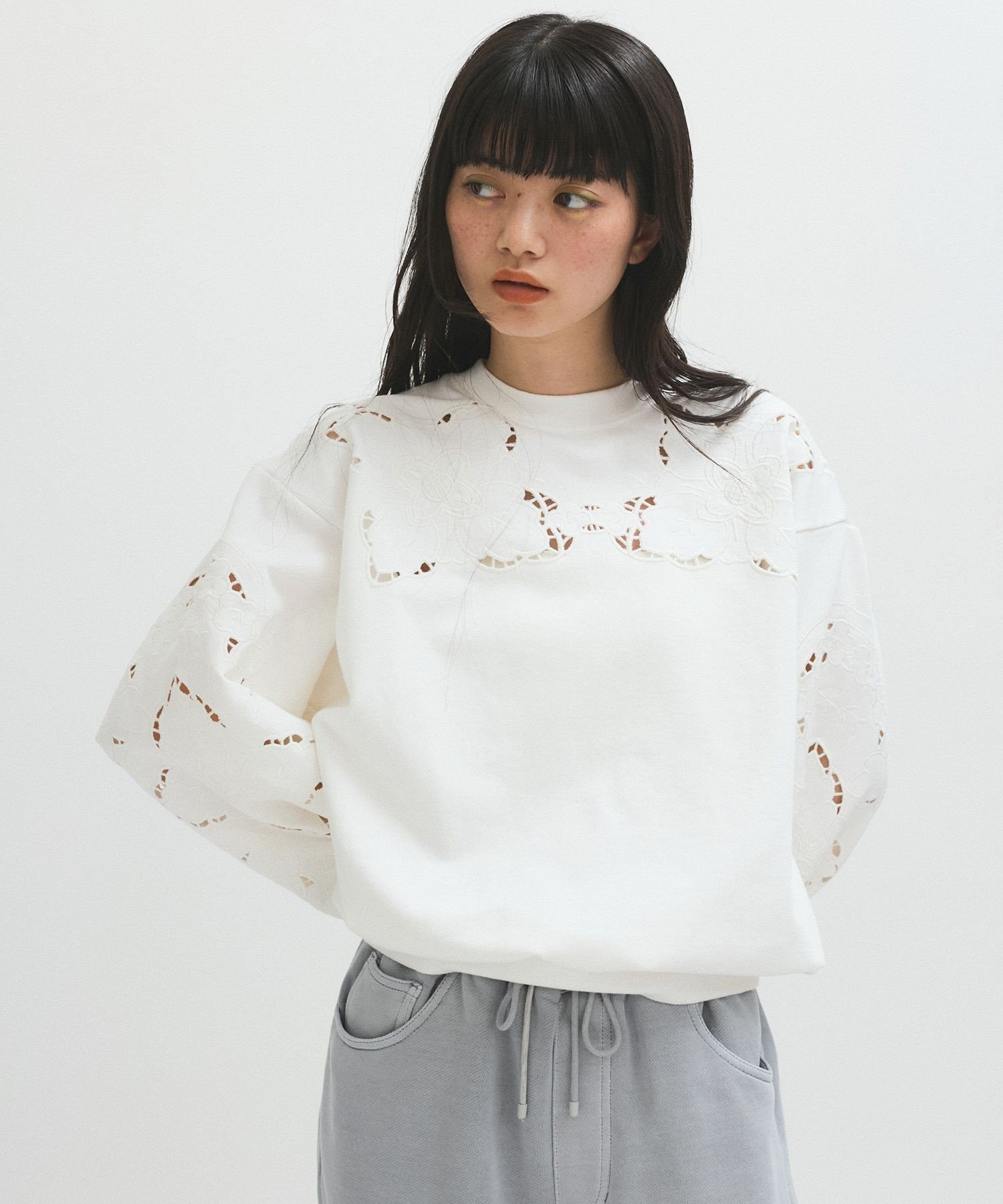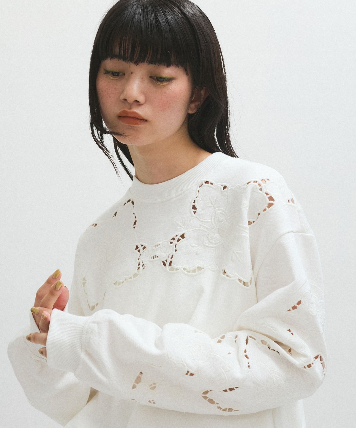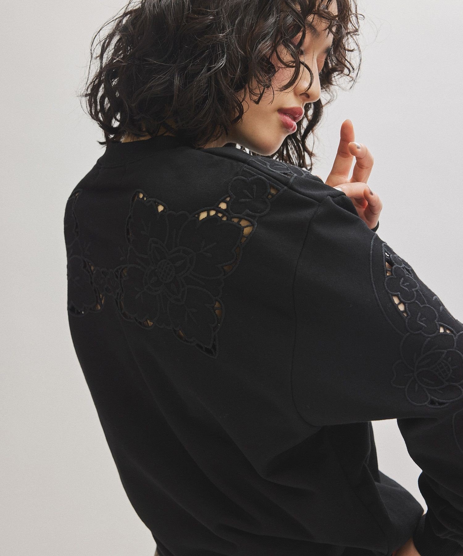 ADAM ET ROPE' FEMME 【VIOLETTE ROOM for ADAM ET ROPE'】 EMBROIDERY SWEATSHIRT アダムエロペ トップス スウェット・トレーナー ホワイト ブラック ピンク【送料無料】