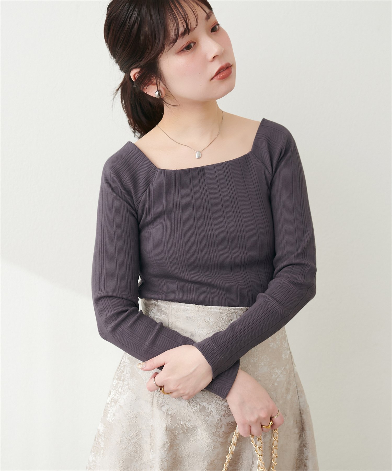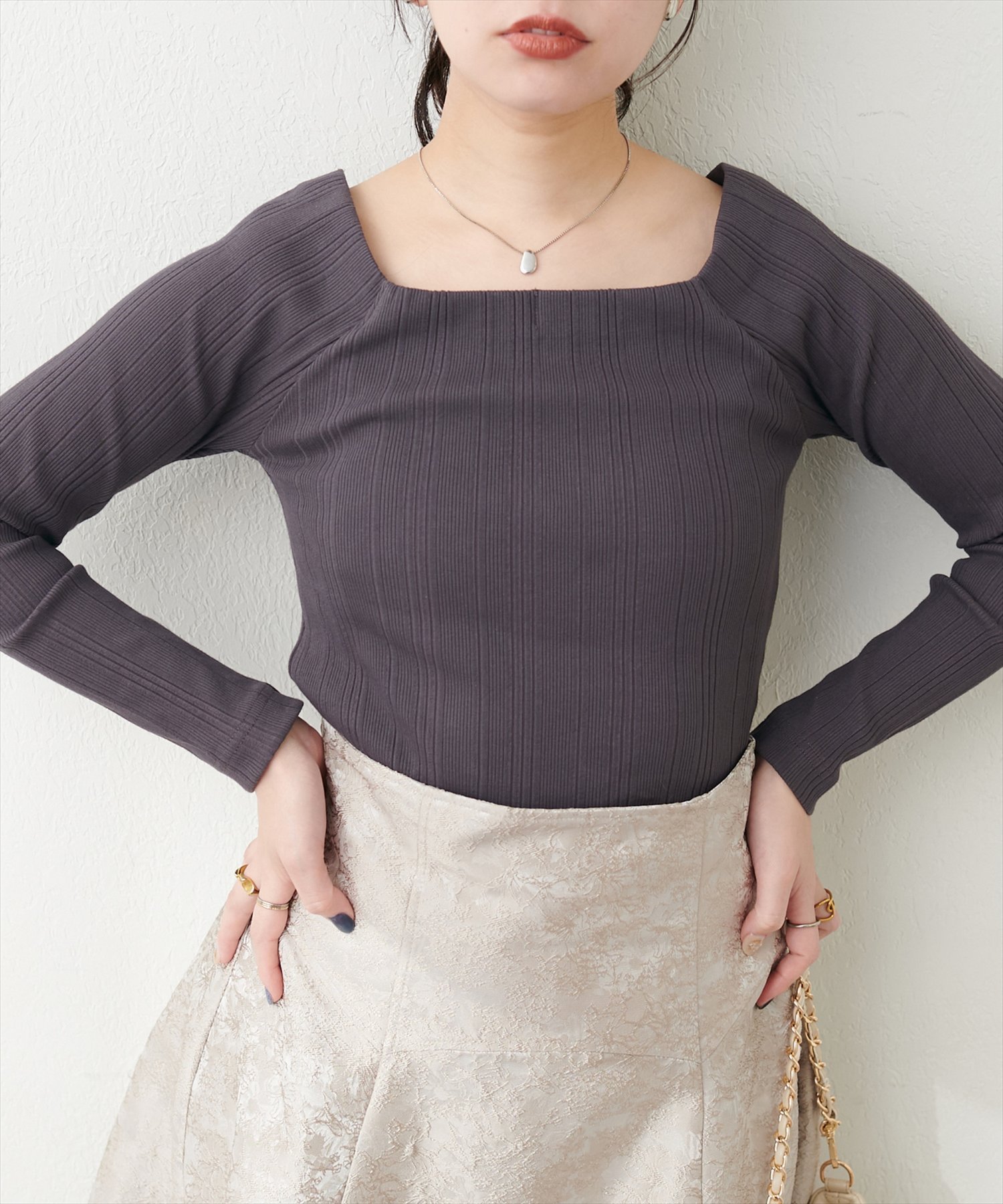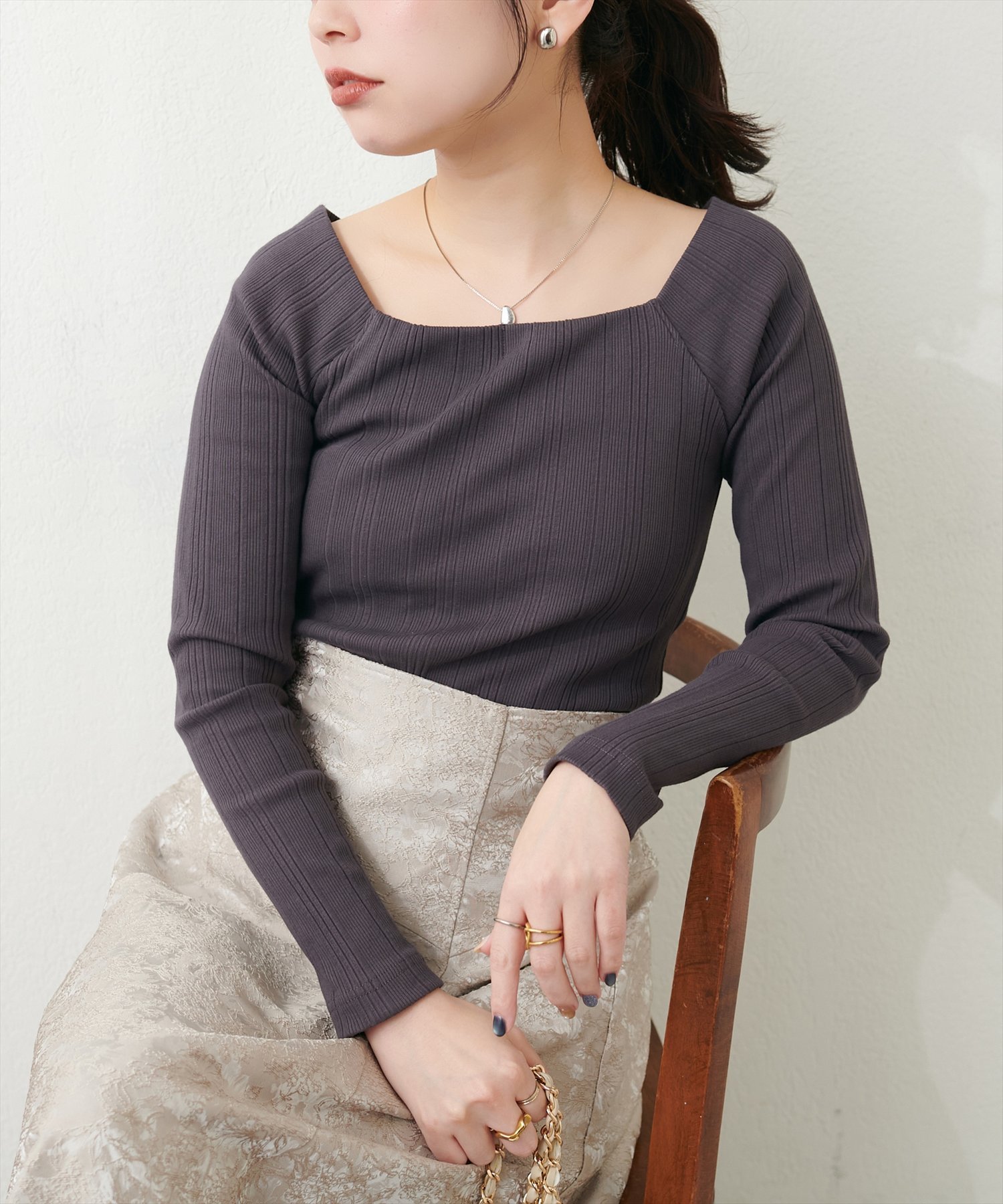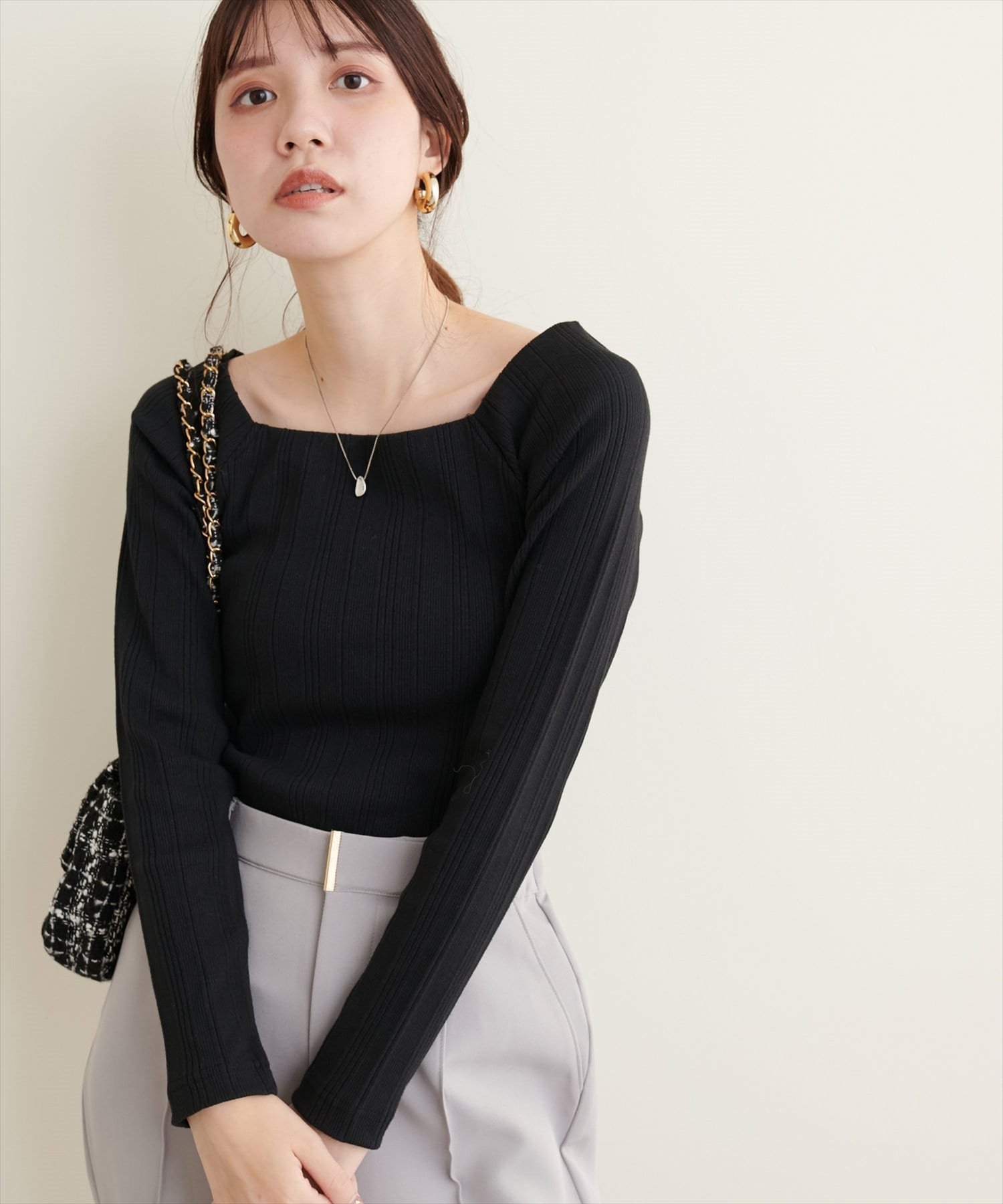 natural couture スクエアネックランダムテレコTOPS ナチュラルクチュール トップス その他のトップス ホワイト ブラック ブラウン【送料無料】