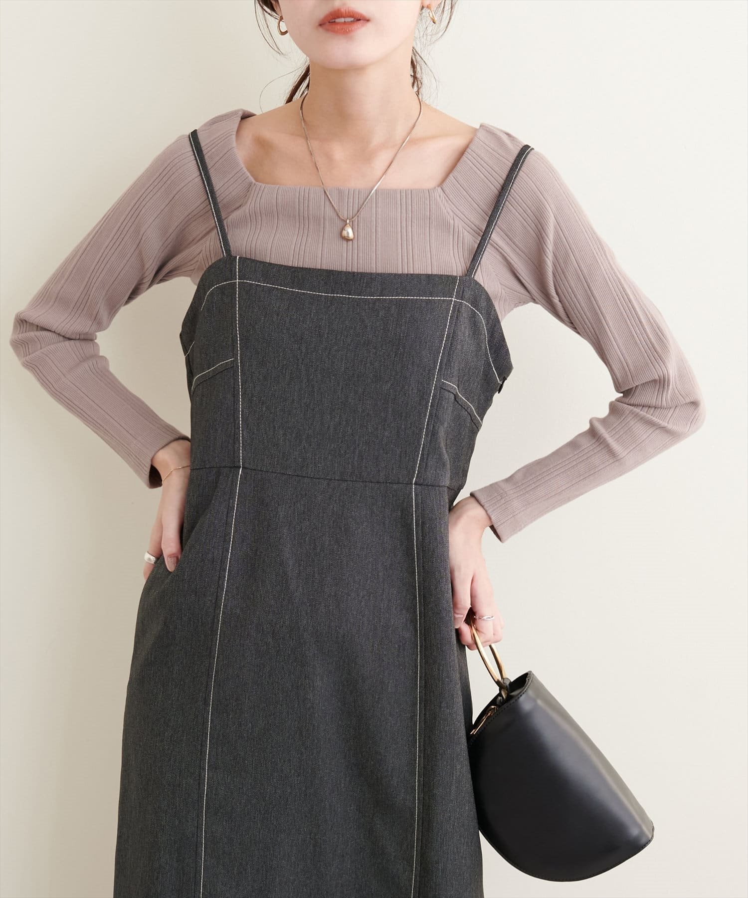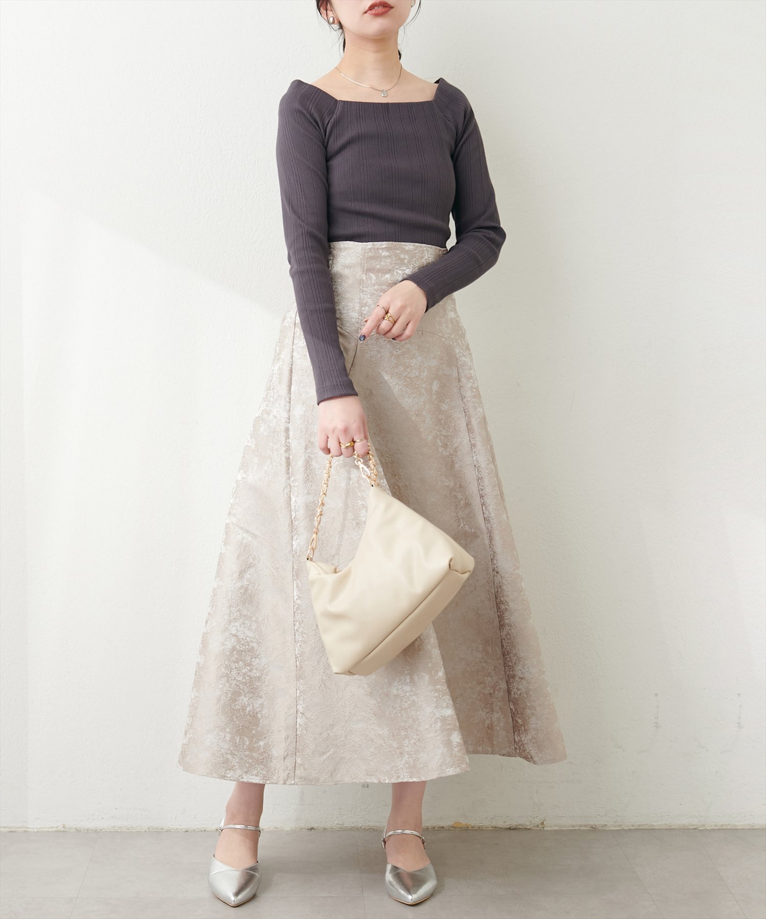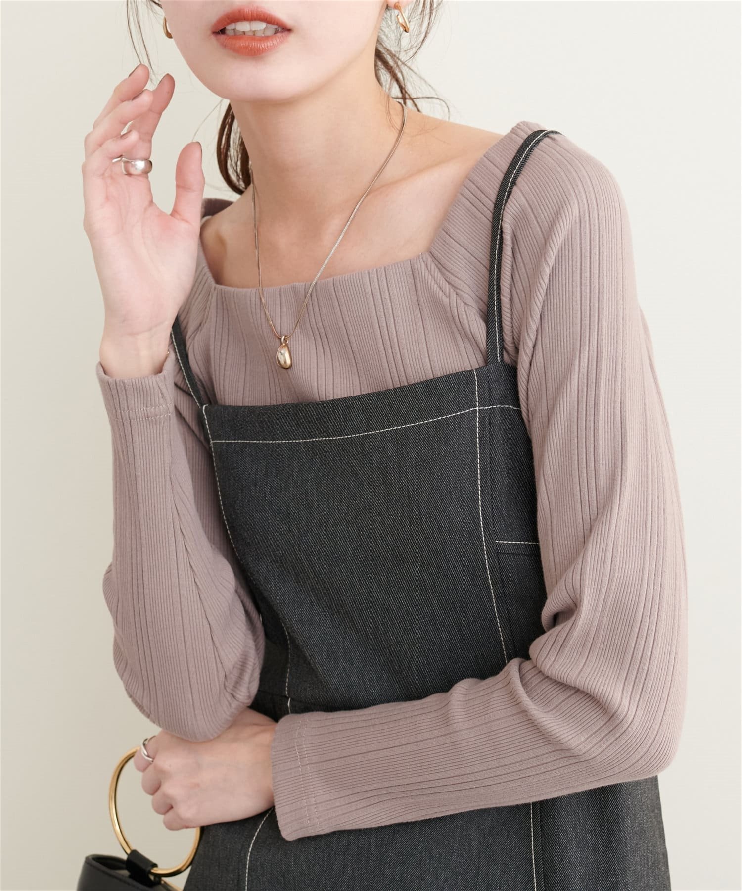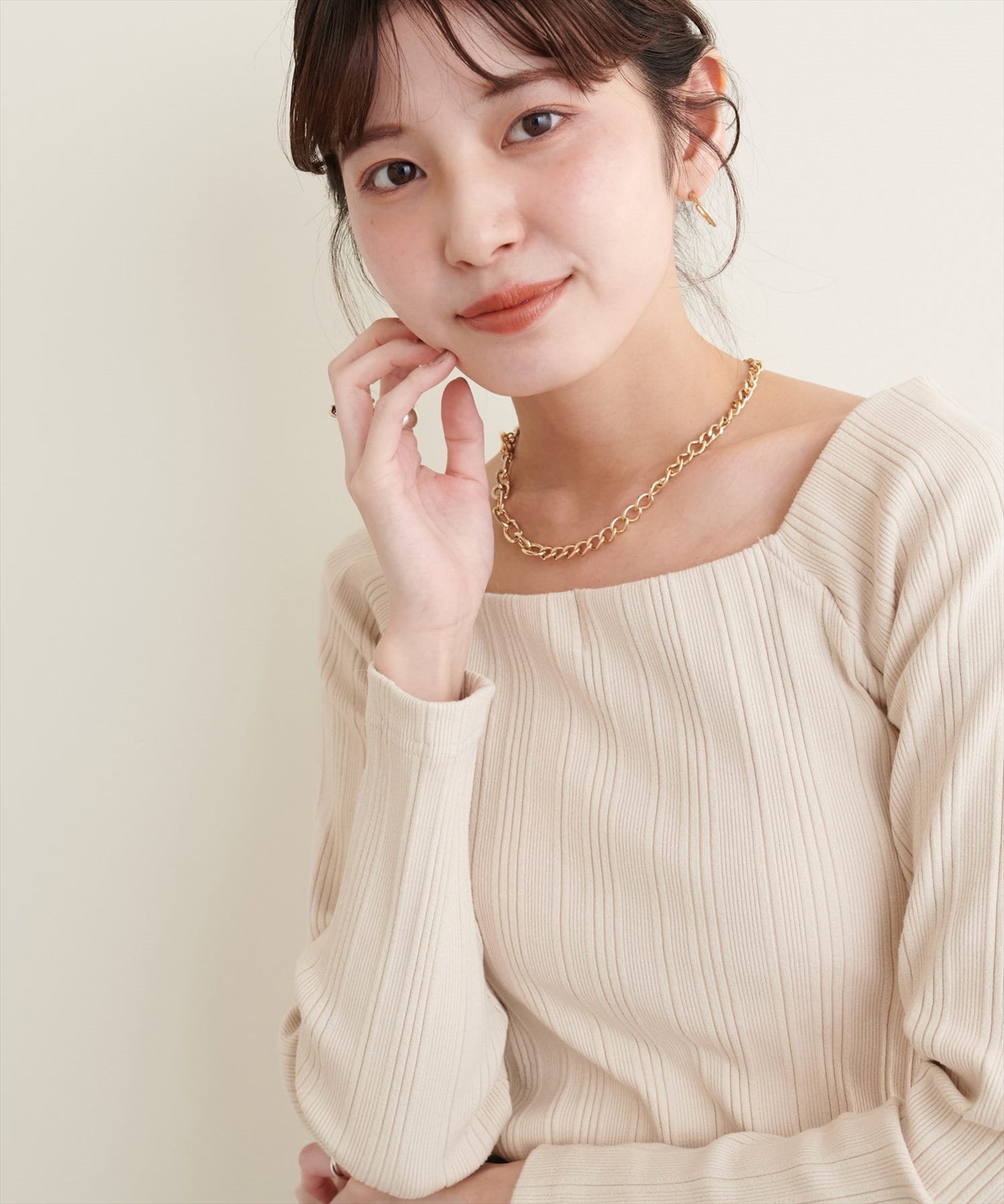 natural couture スクエアネックランダムテレコTOPS ナチュラルクチュール トップス その他のトップス ホワイト ブラック ブラウン【送料無料】