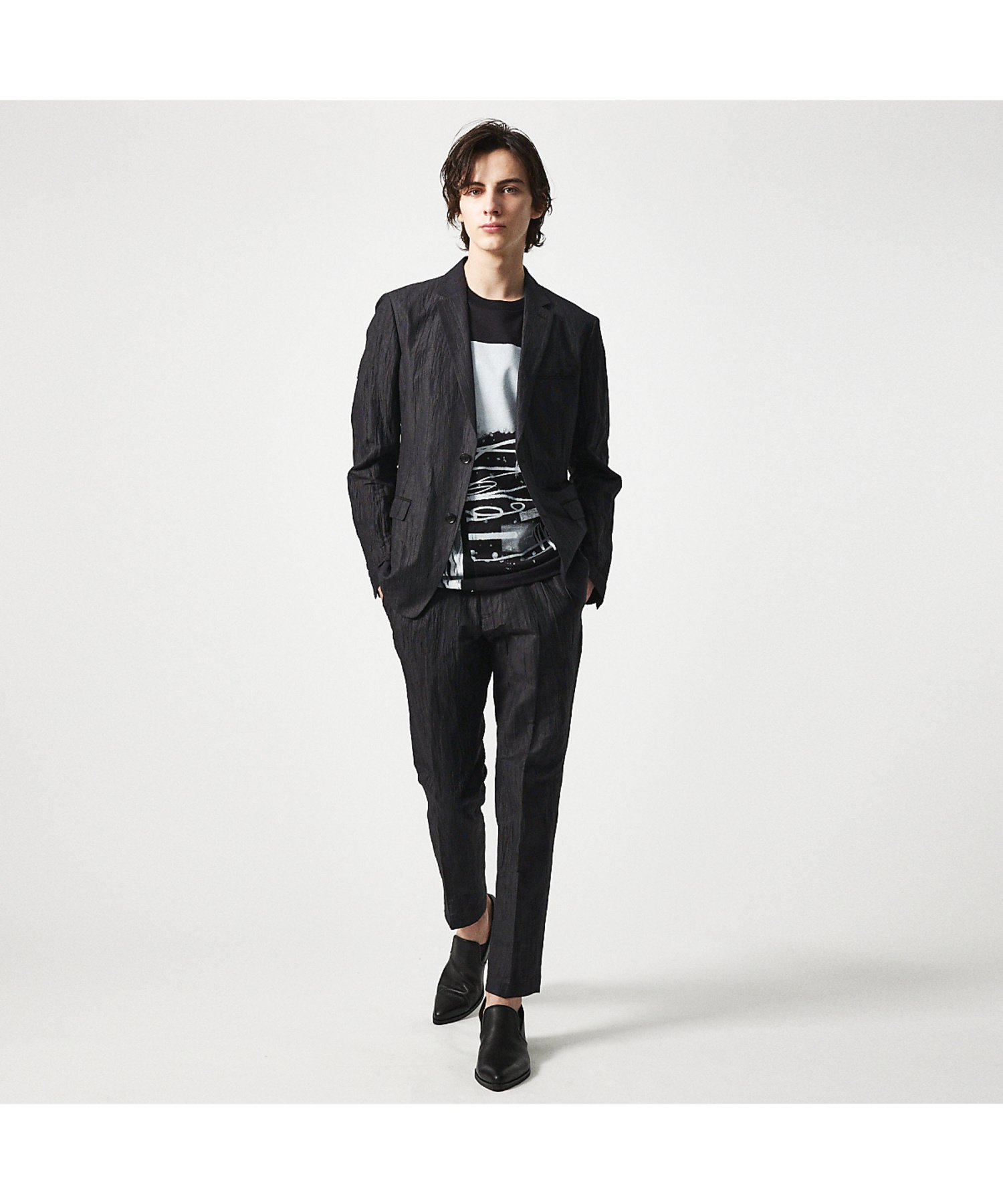5351POUR LES HOMMES 【セットアップ対応】コットン ワッシャー プリント ジャケット ゴーサンゴーイチプールオム ジャケット・アウター テーラードジャケット・ブレザー ブラック ホワイト【送料無料】