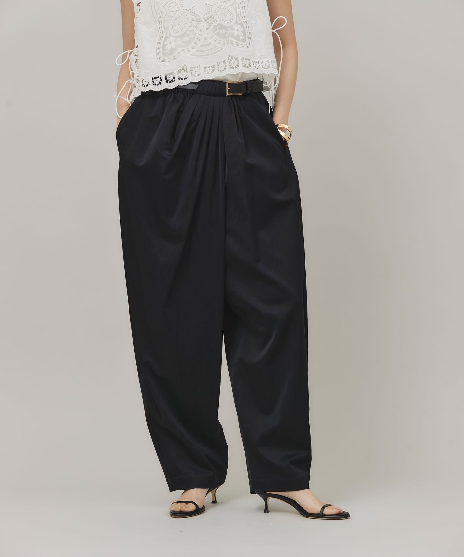 Curensology サテンドレープパンツ カレンソロジー パンツ その他のパンツ ブラック ベージュ【送料無料】