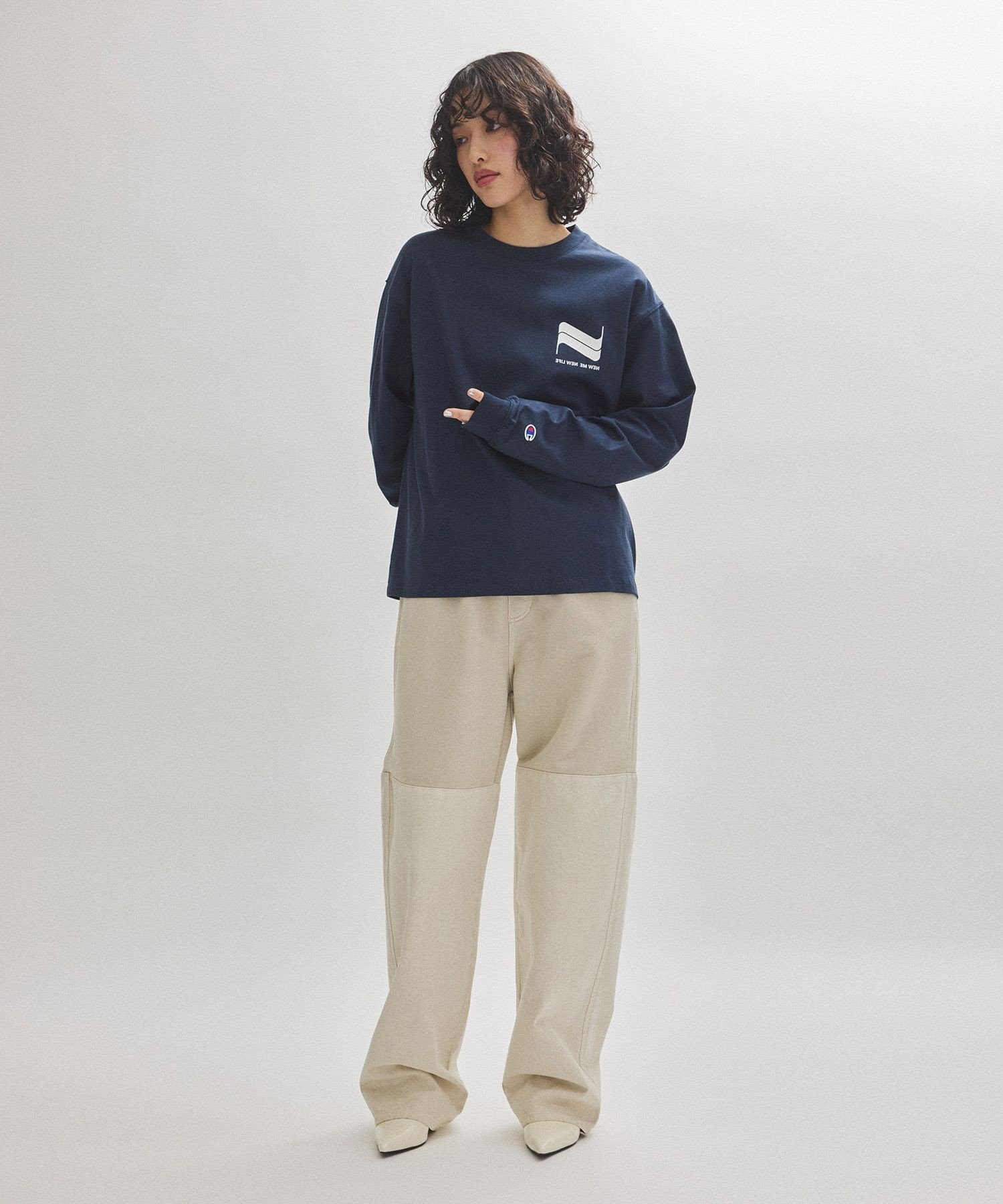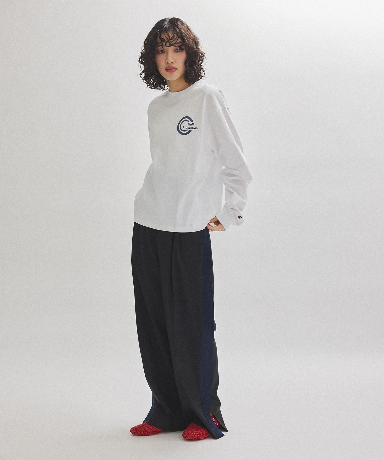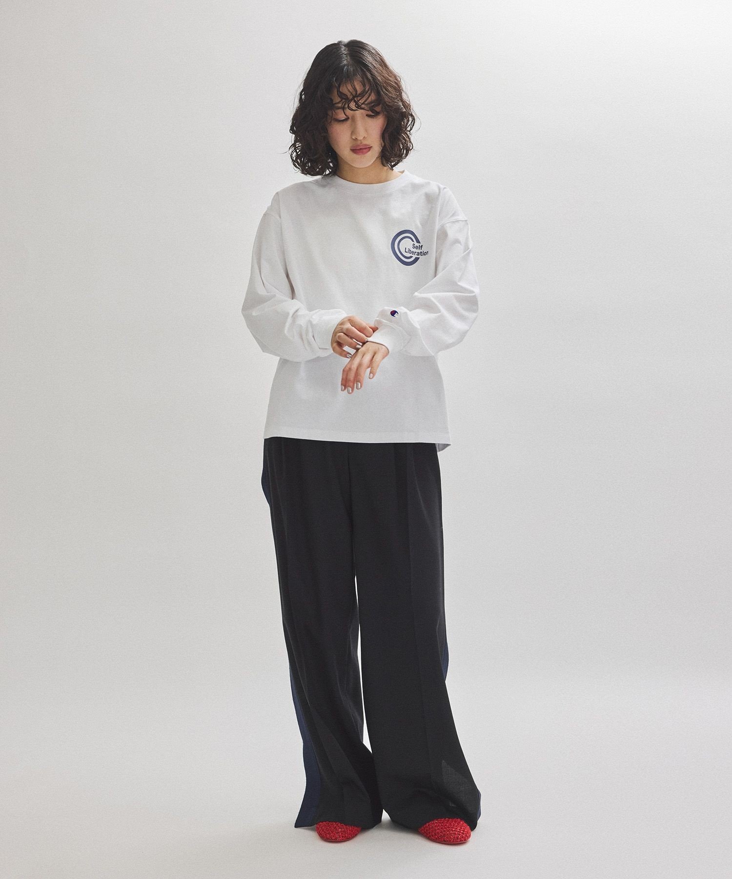 ADAM ET ROPE' FEMME 【Champion for ADAM ET ROPE'】別注 LONG SLEEVE T-SHIRT アダムエロペ トップス カットソー・Tシャツ ピンク ホワイト ネイビー【送料無料】