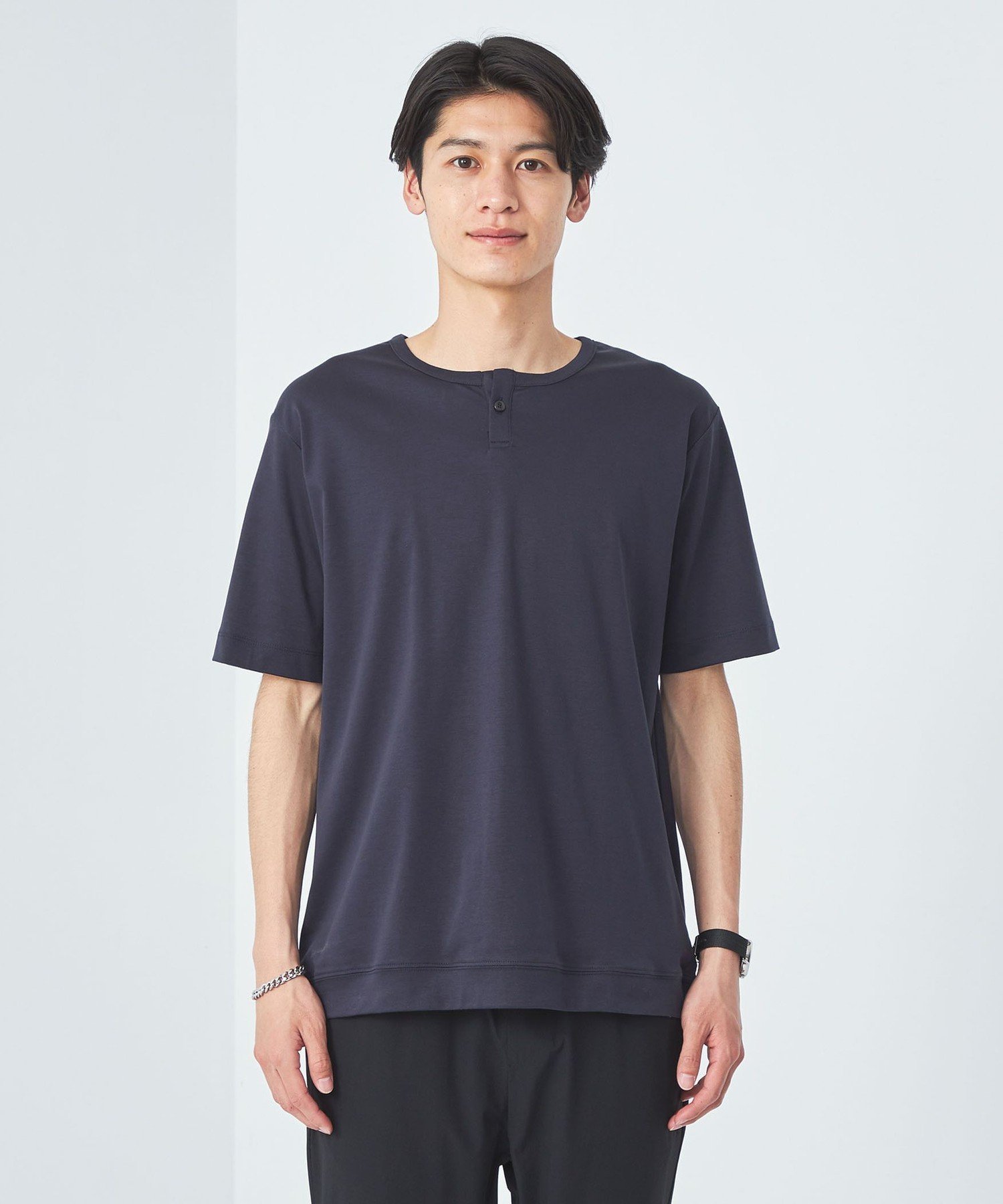【SALE/50%OFF】UNITED ARROWS green label relaxing JUSTFIT エアリー ソフト ヘンリーネック カットソー ユナイテッドアローズ アウトレット トップス カットソー・Tシャツ ブラック ホワイト ネイビー
