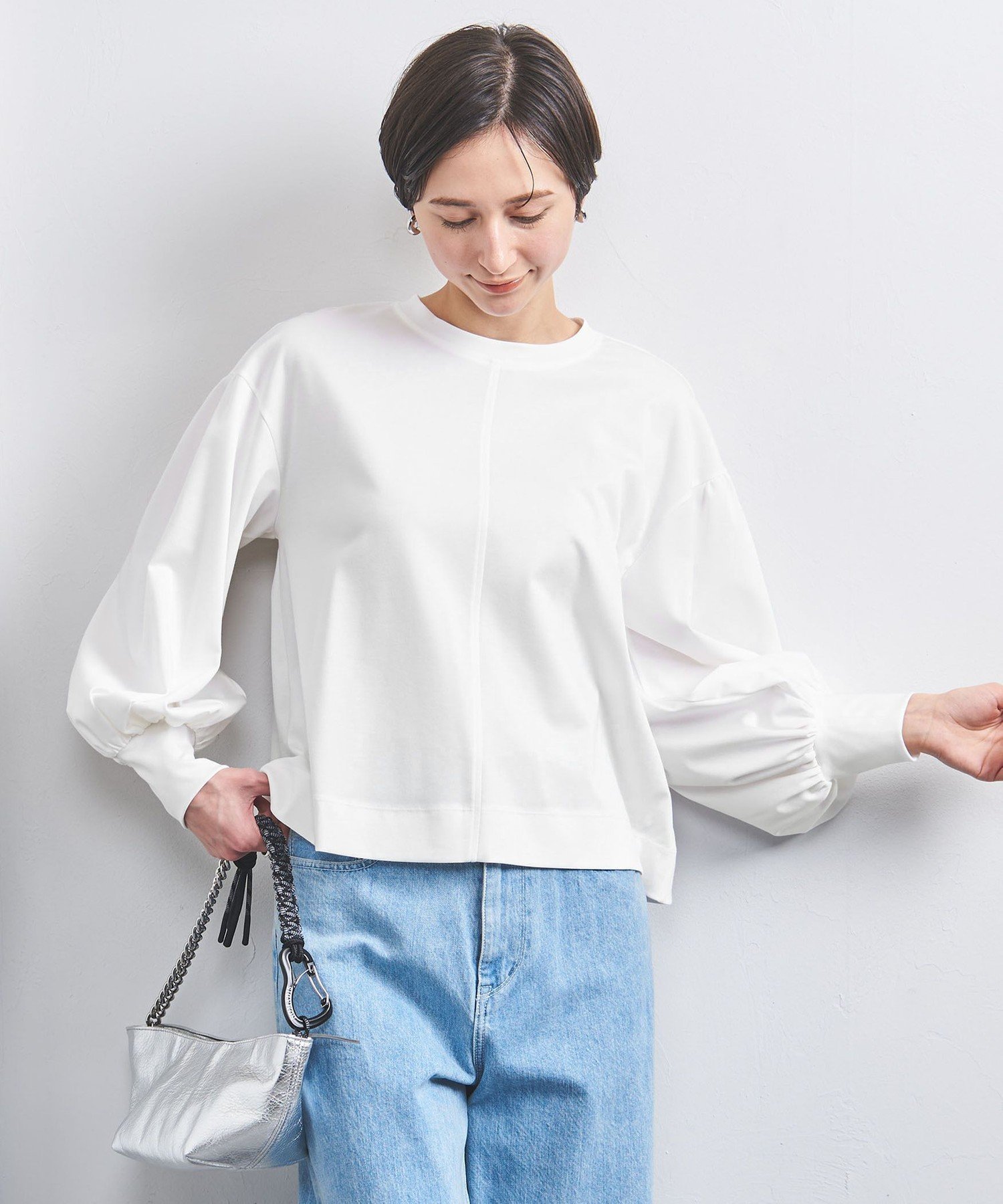 UNITED ARROWS ポンチ バルーンスリーブ カットソー ユナイテッドアローズ トップス カットソー・Tシャツ ホワイト ブラック ピンク【送料無料】