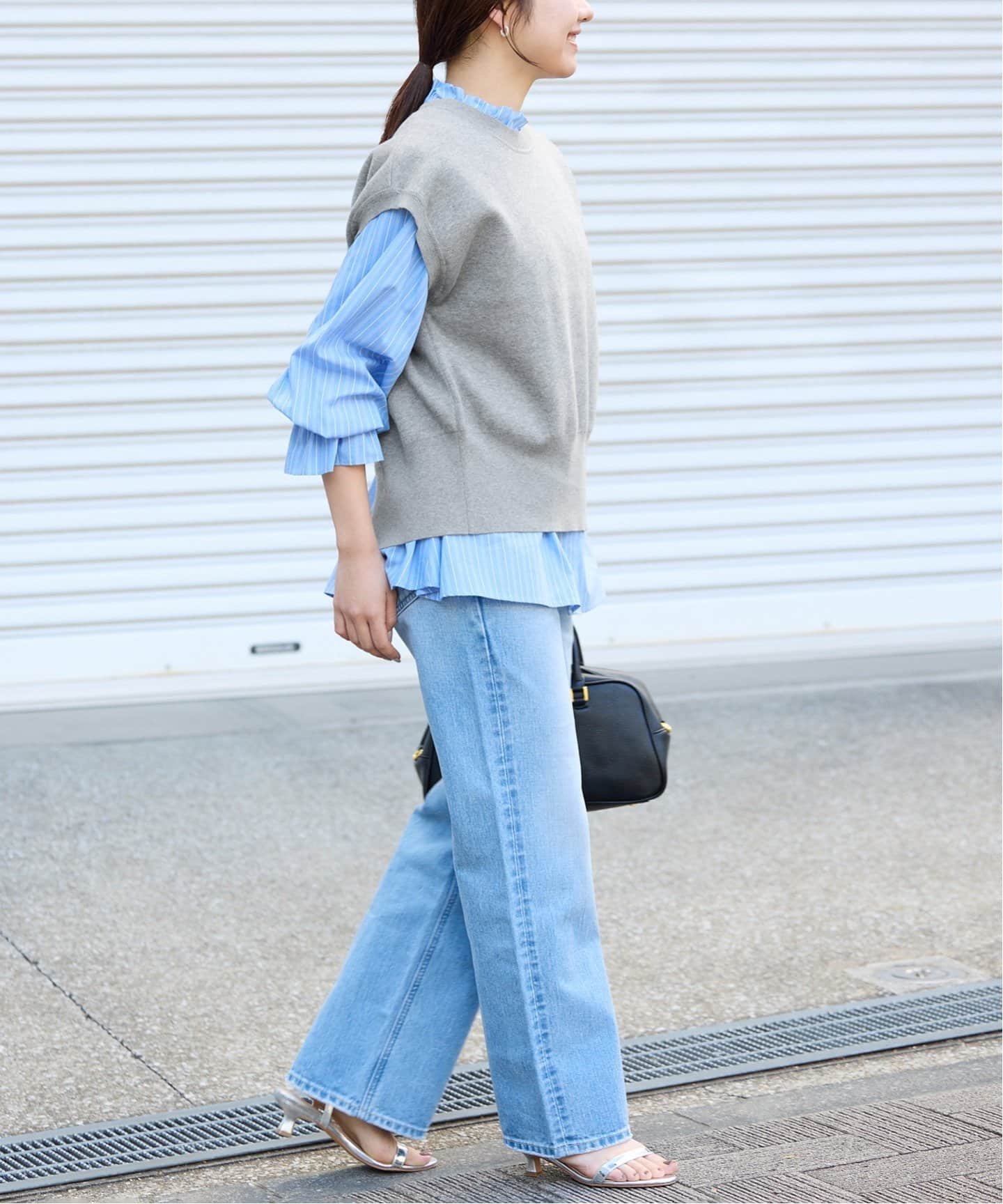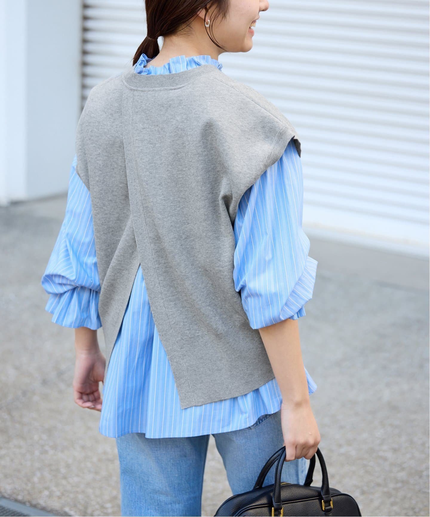 SLOBE IENA 《予約》ダブルフェイスバックオープンベスト スローブ イエナ トップス ベスト・ジレ グレー カーキ【送料無料】