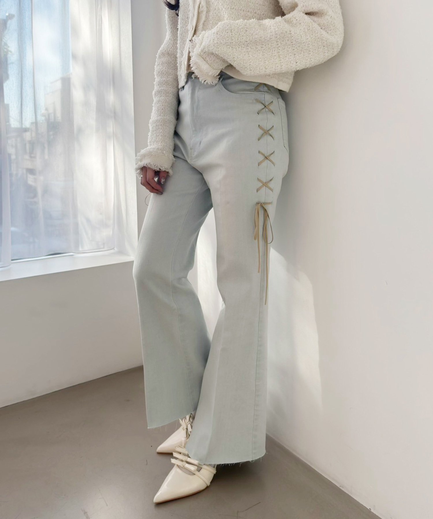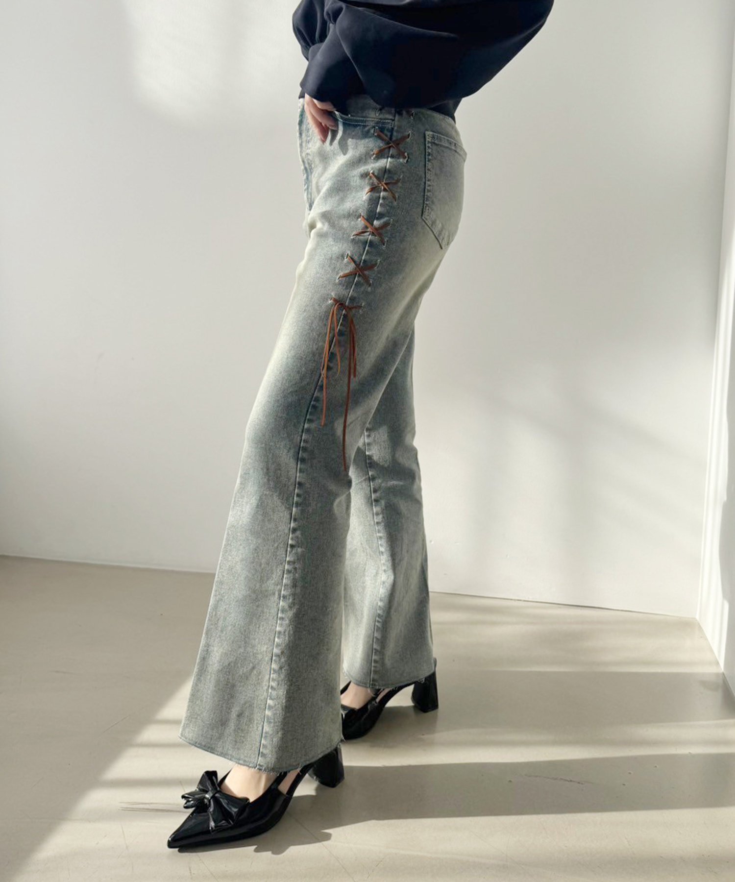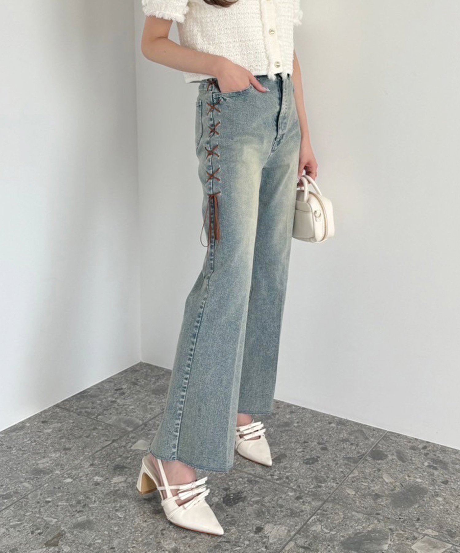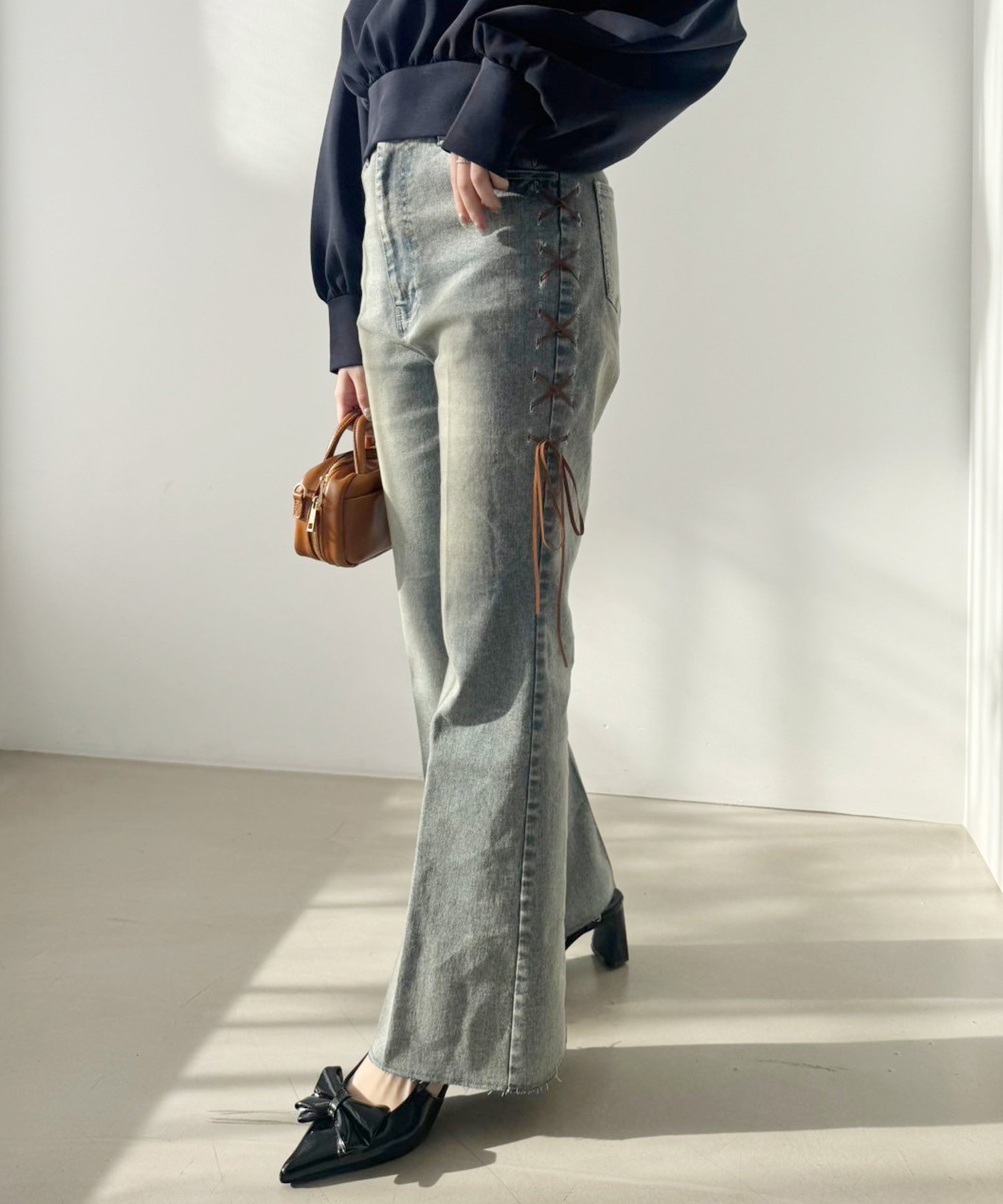 【SALE/10%OFF】one after another NICE CLAUP レースアップデニムパンツ/SM展開 ワンアフターアナザー ナイスクラップ パンツ その他のパンツ ブルー【送料無料】
