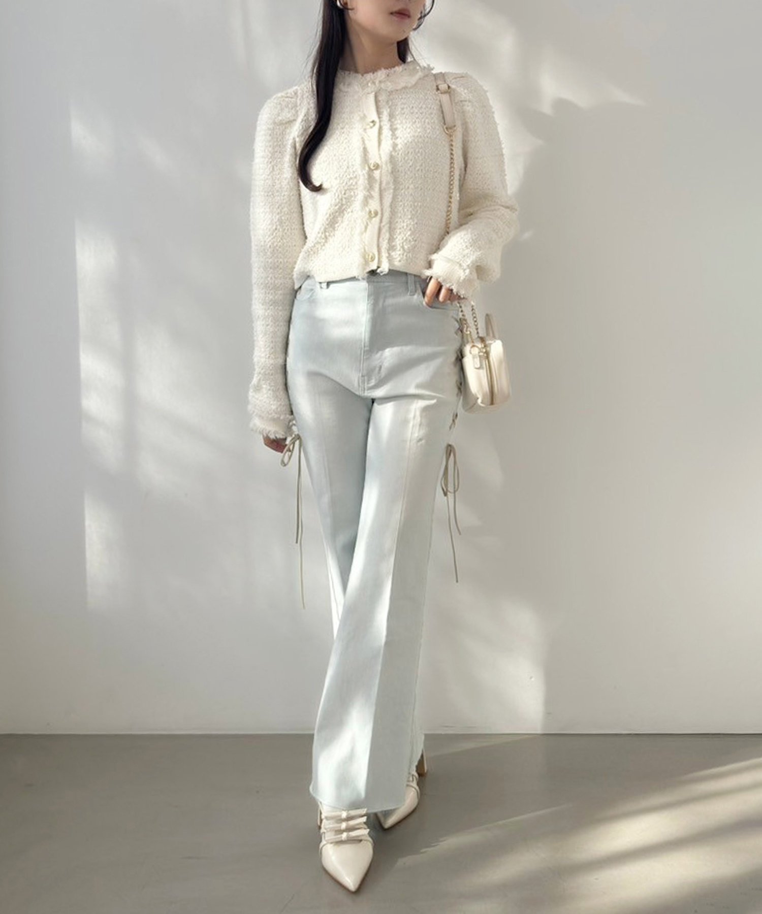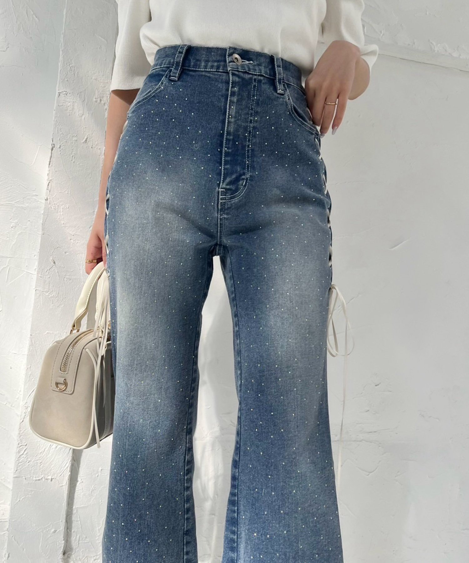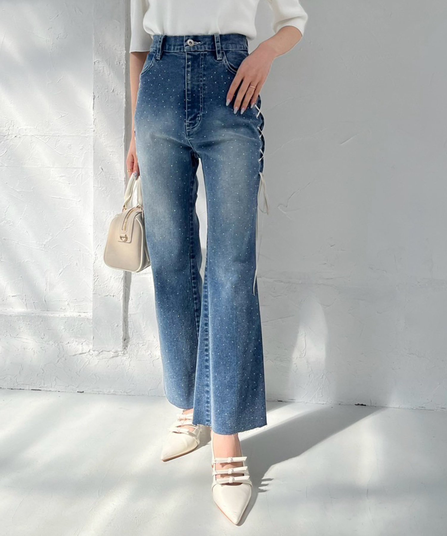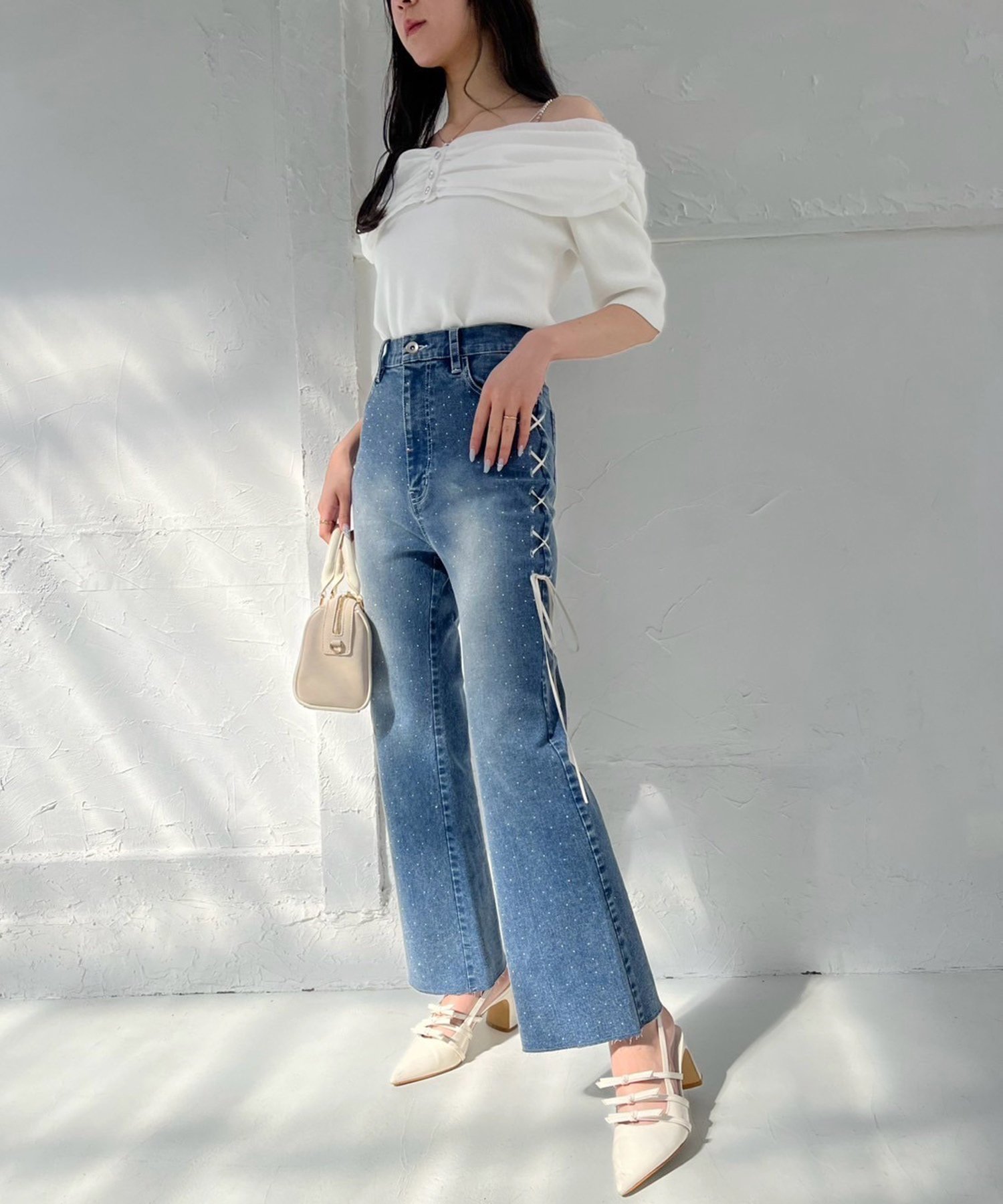 【SALE/10%OFF】one after another NICE CLAUP レースアップデニムパンツ/SM展開 ワンアフターアナザー ナイスクラップ パンツ その他のパンツ ブルー【送料無料】