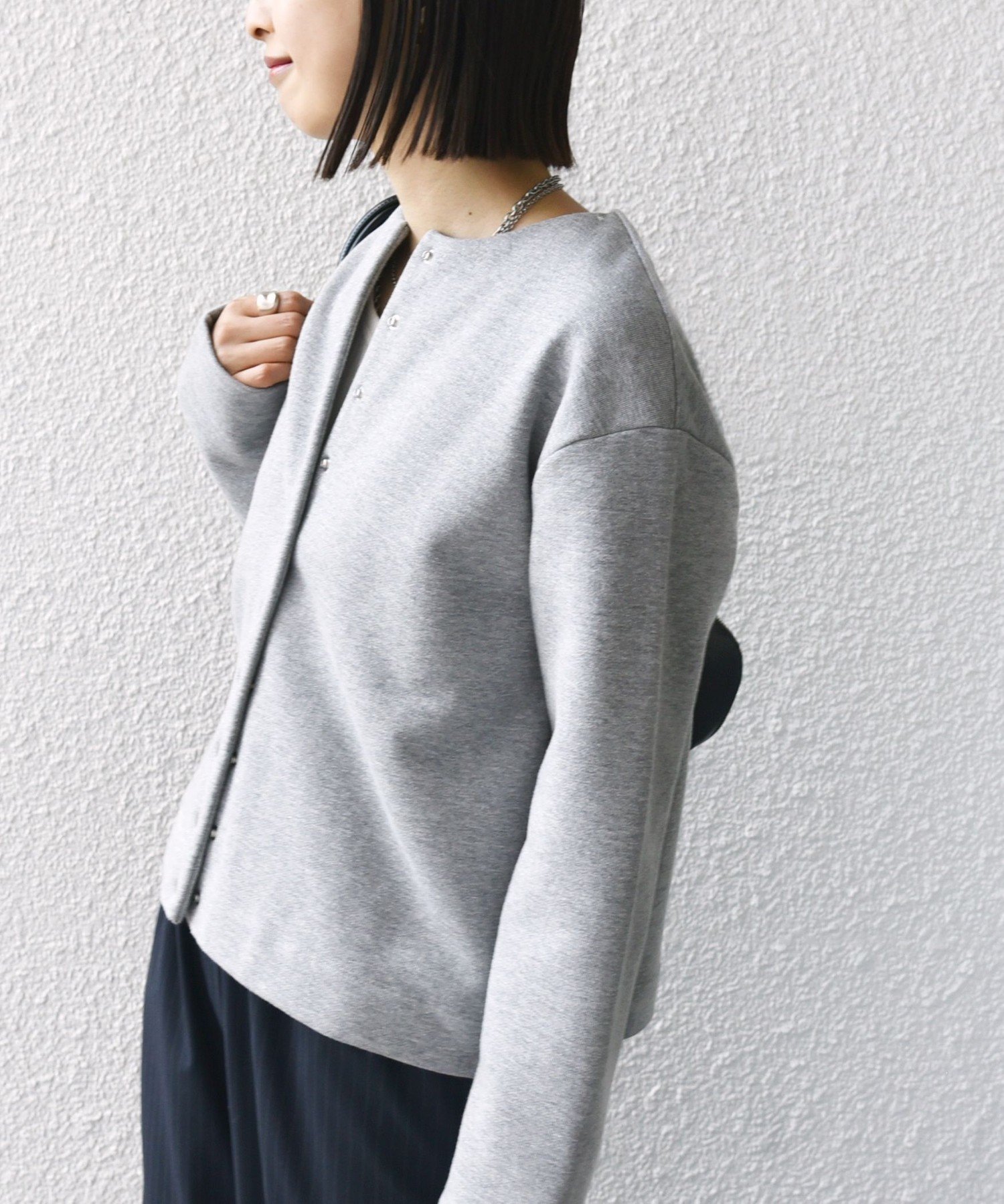 SHIPS WOMEN <手洗い可能>ラメ 裏毛 スナップボタン カーディガン シップス トップス カーディガン グレー ブラック【送料無料】