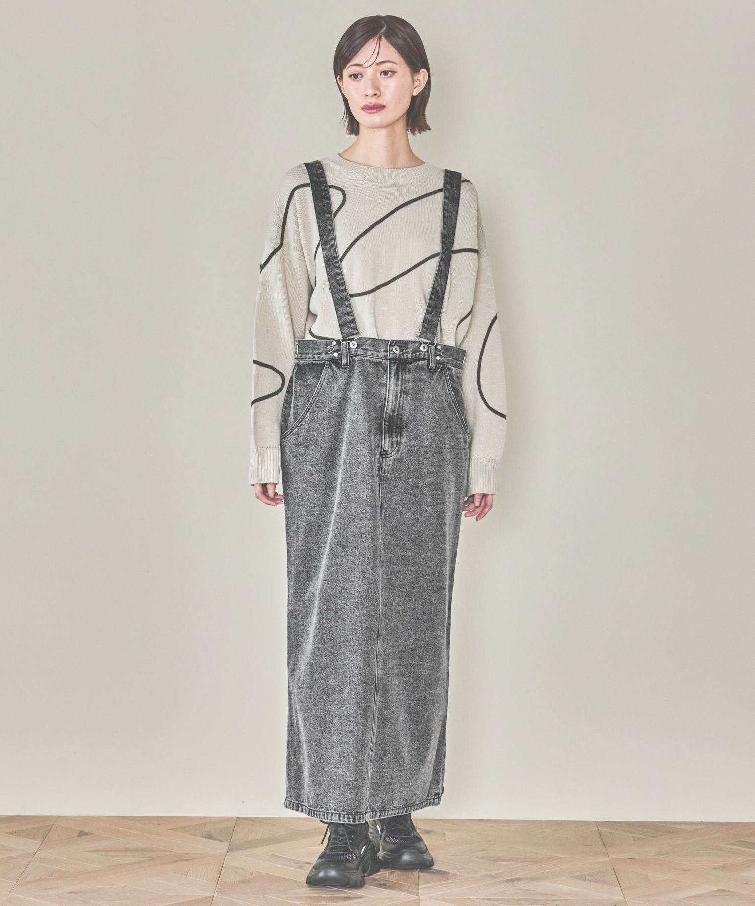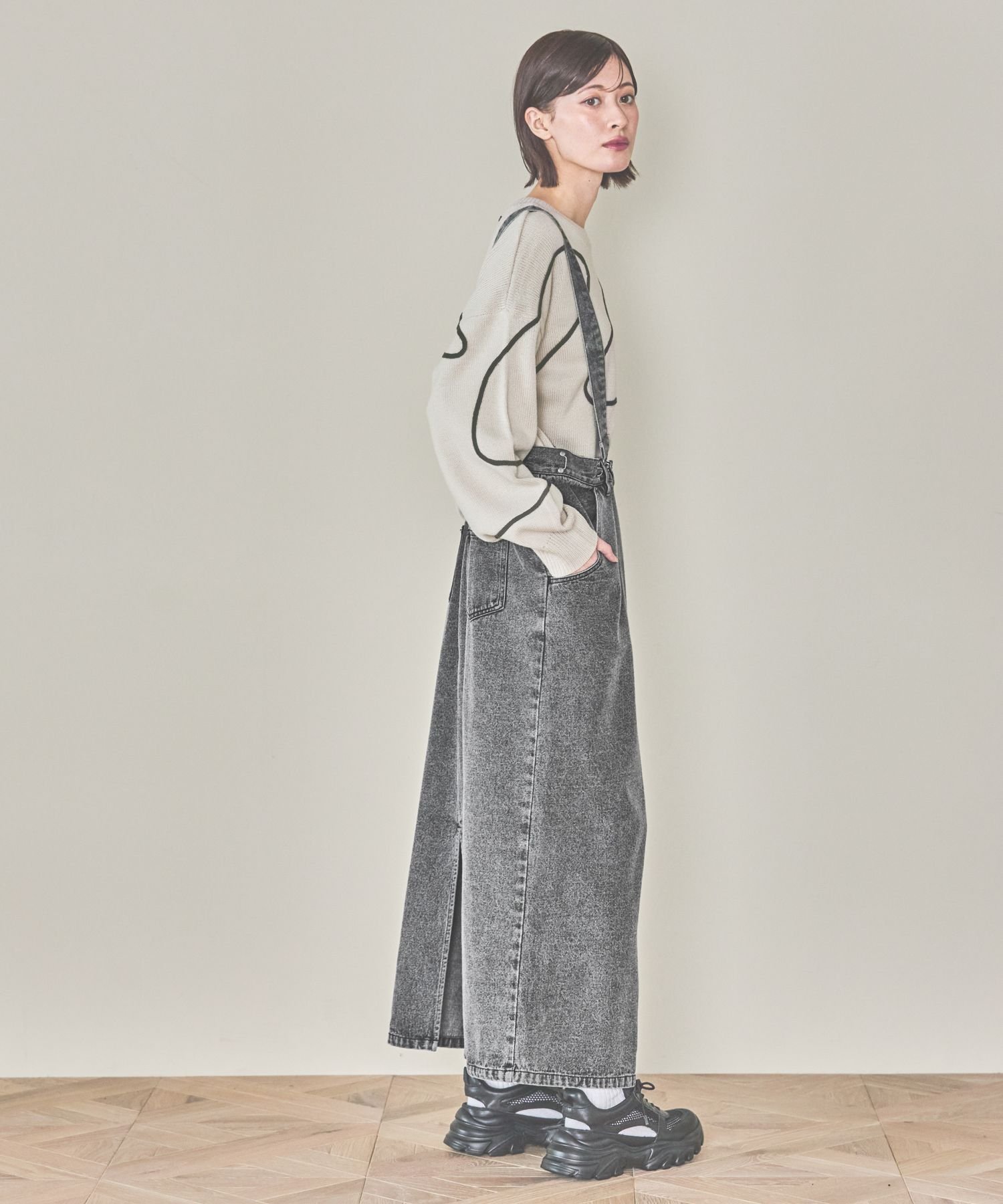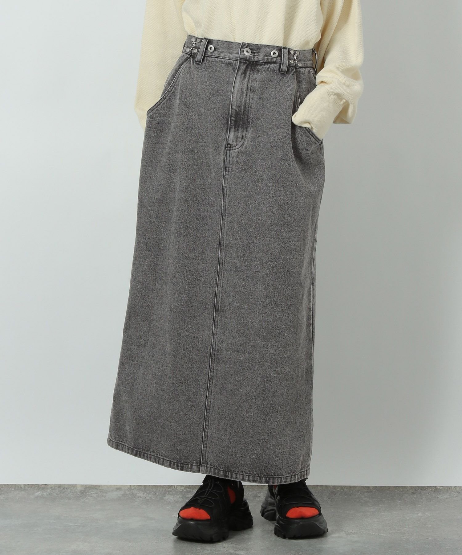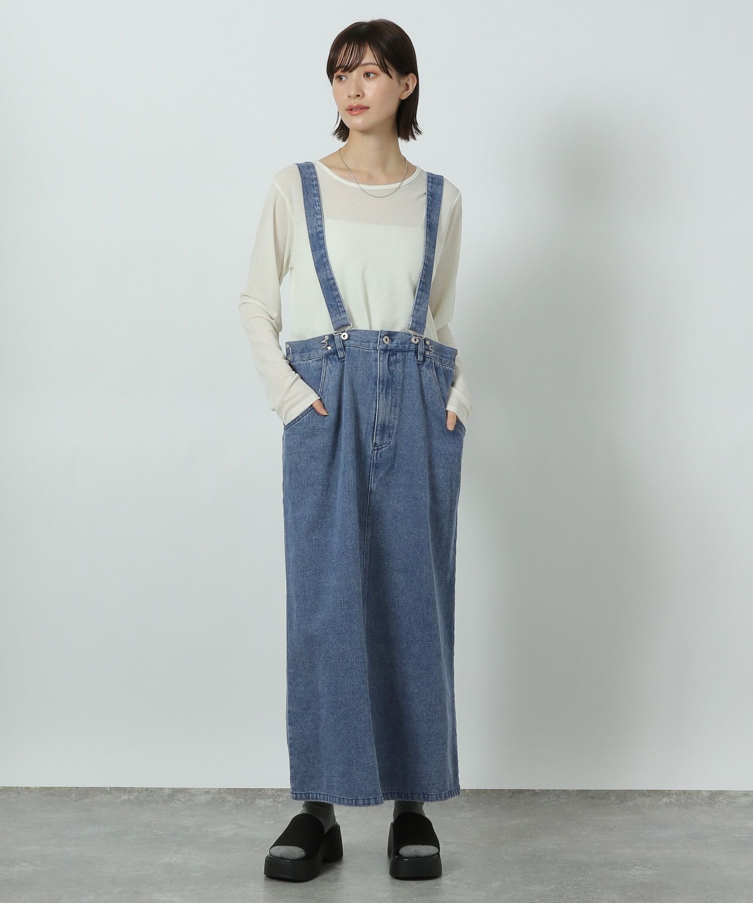 【SALE/45%OFF】LAKOLE 2WAYデニムジャンスカ ラコレ スカート ミディアムスカート ブラック ブルー