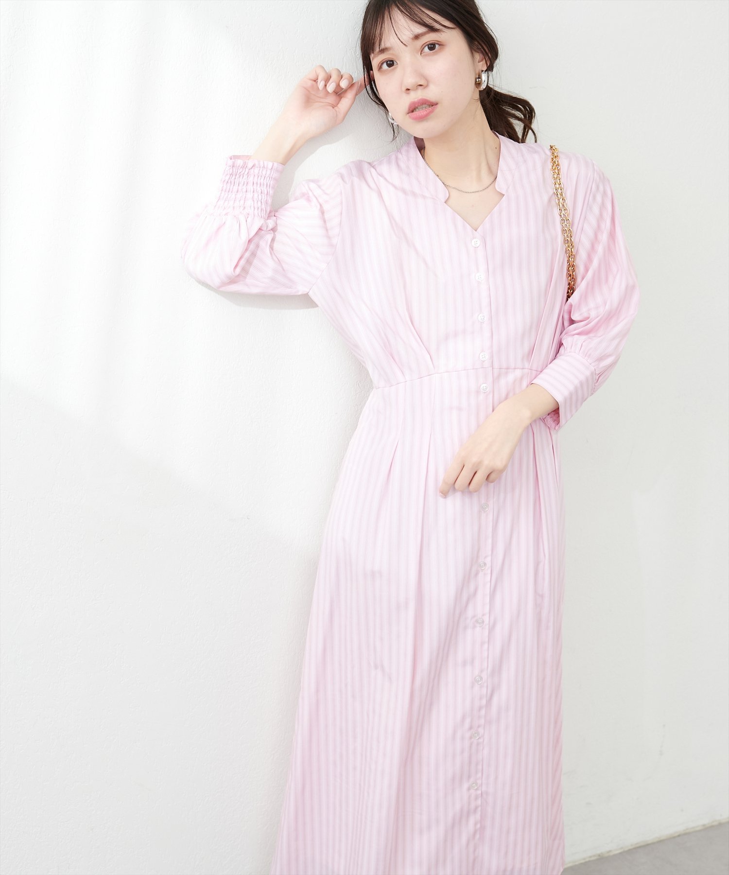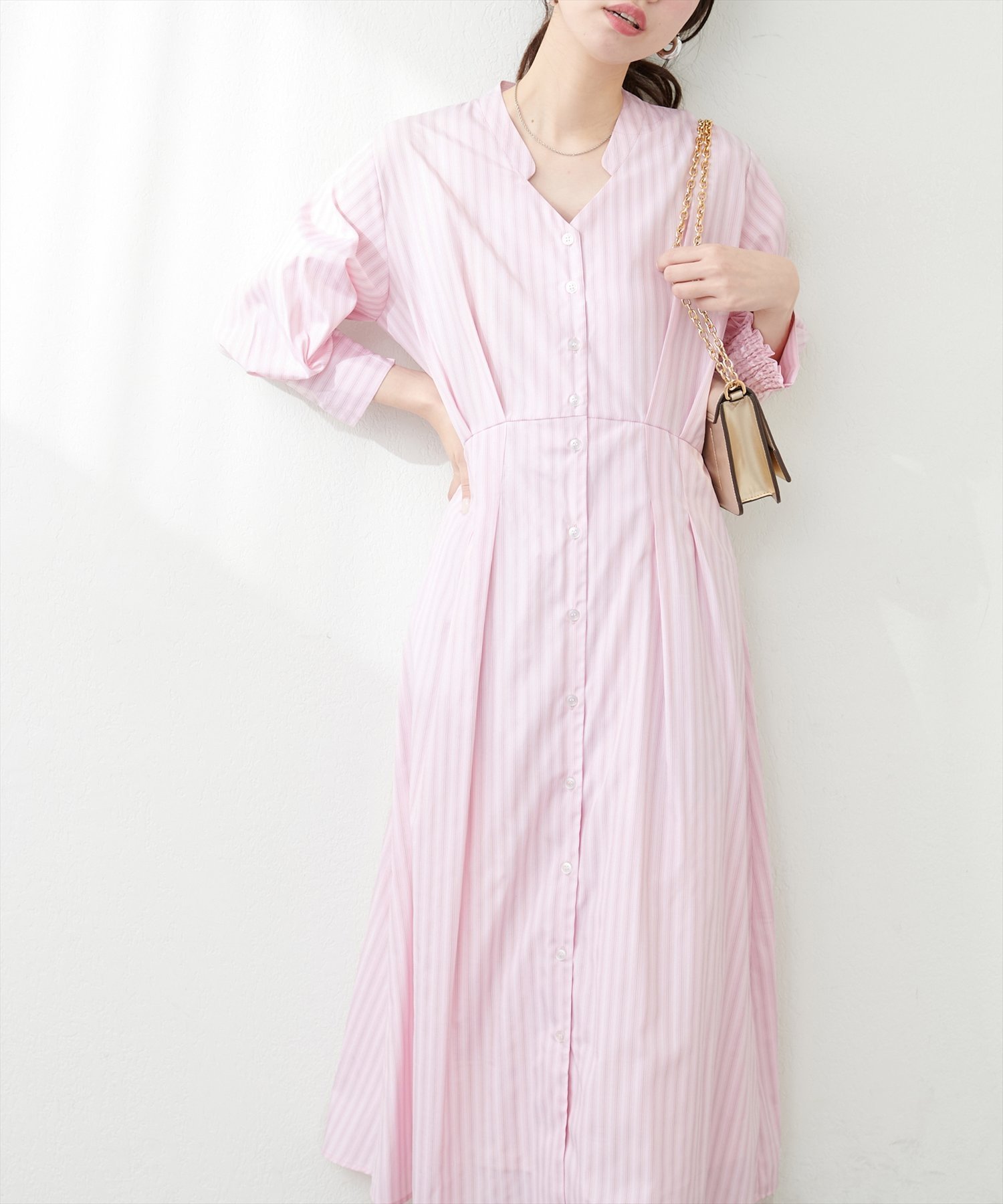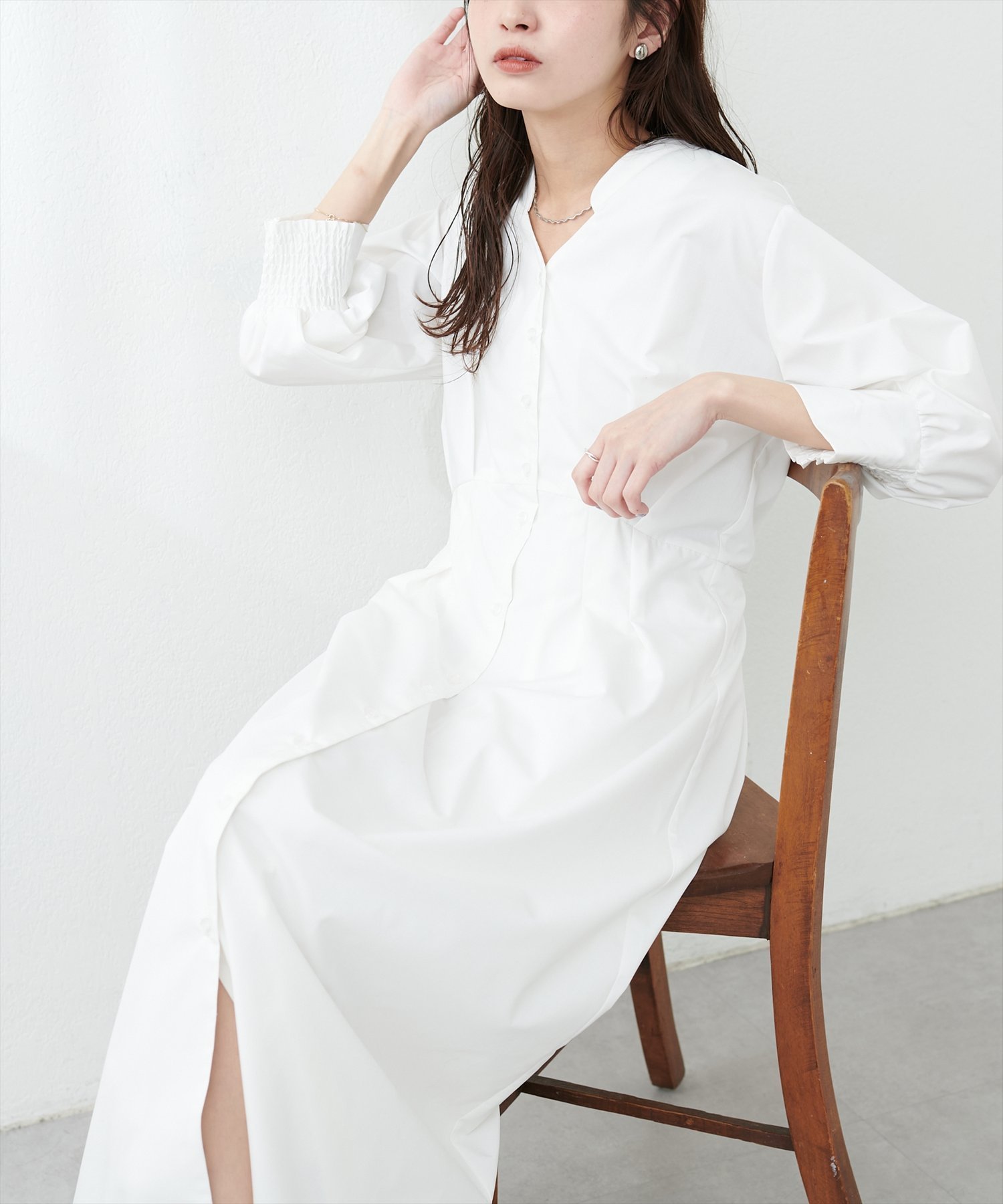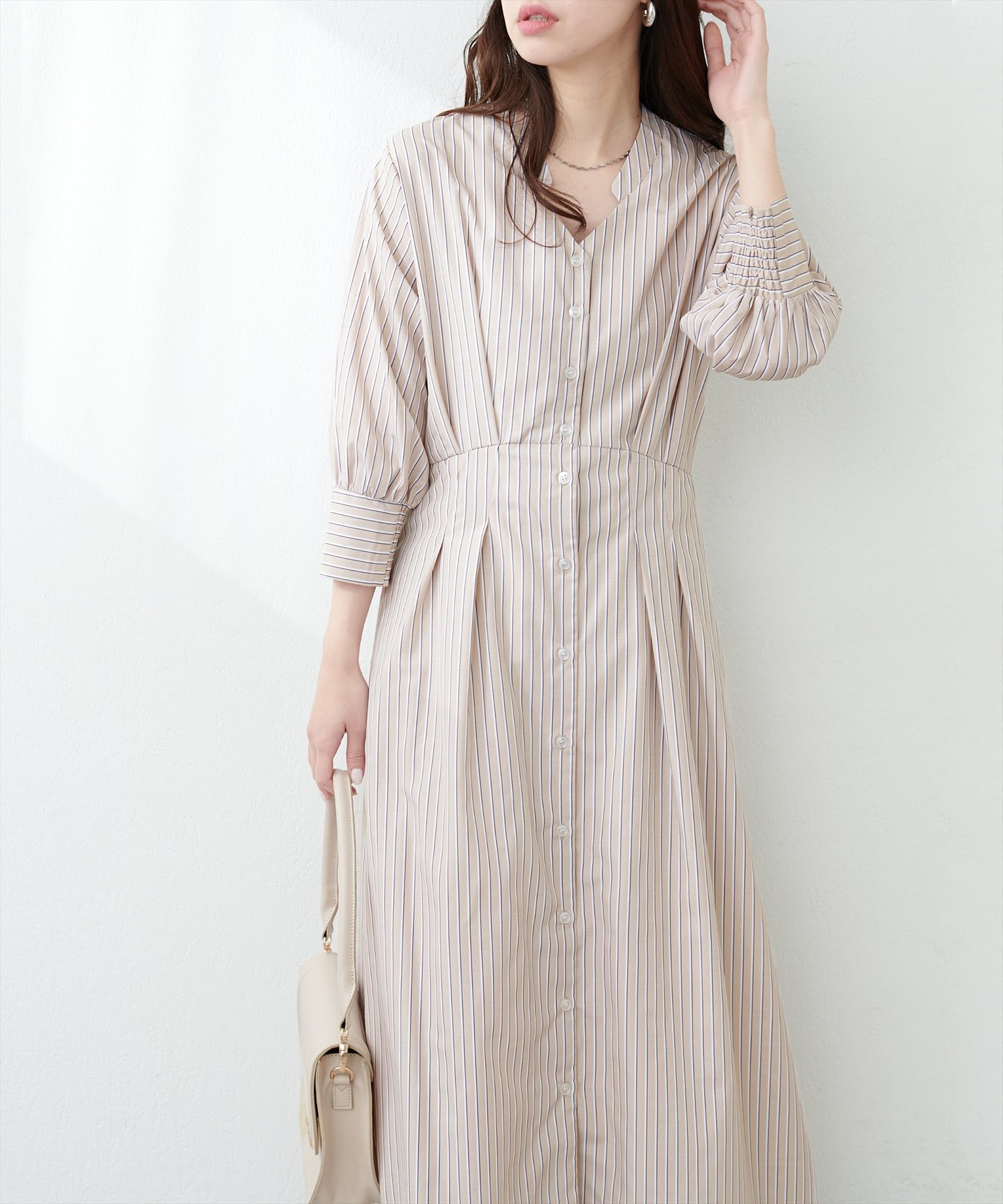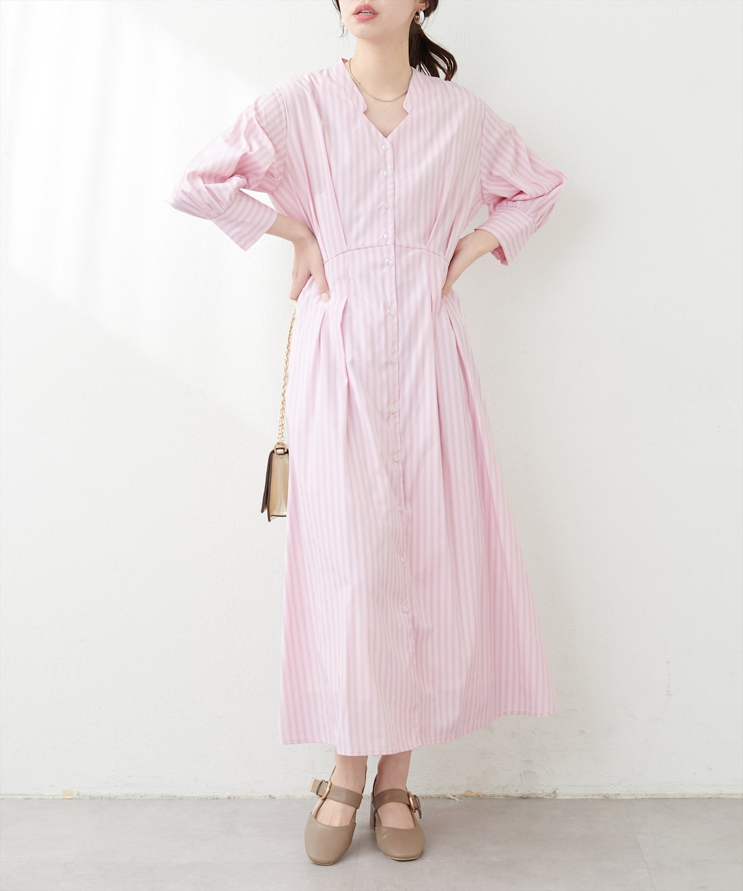 natural couture タックシャツワンピース ナチュラルクチュール ワンピース・ドレス その他のワンピース・ドレス ベージュ ピンク ブルー ホワイト イエロー【送料無料】