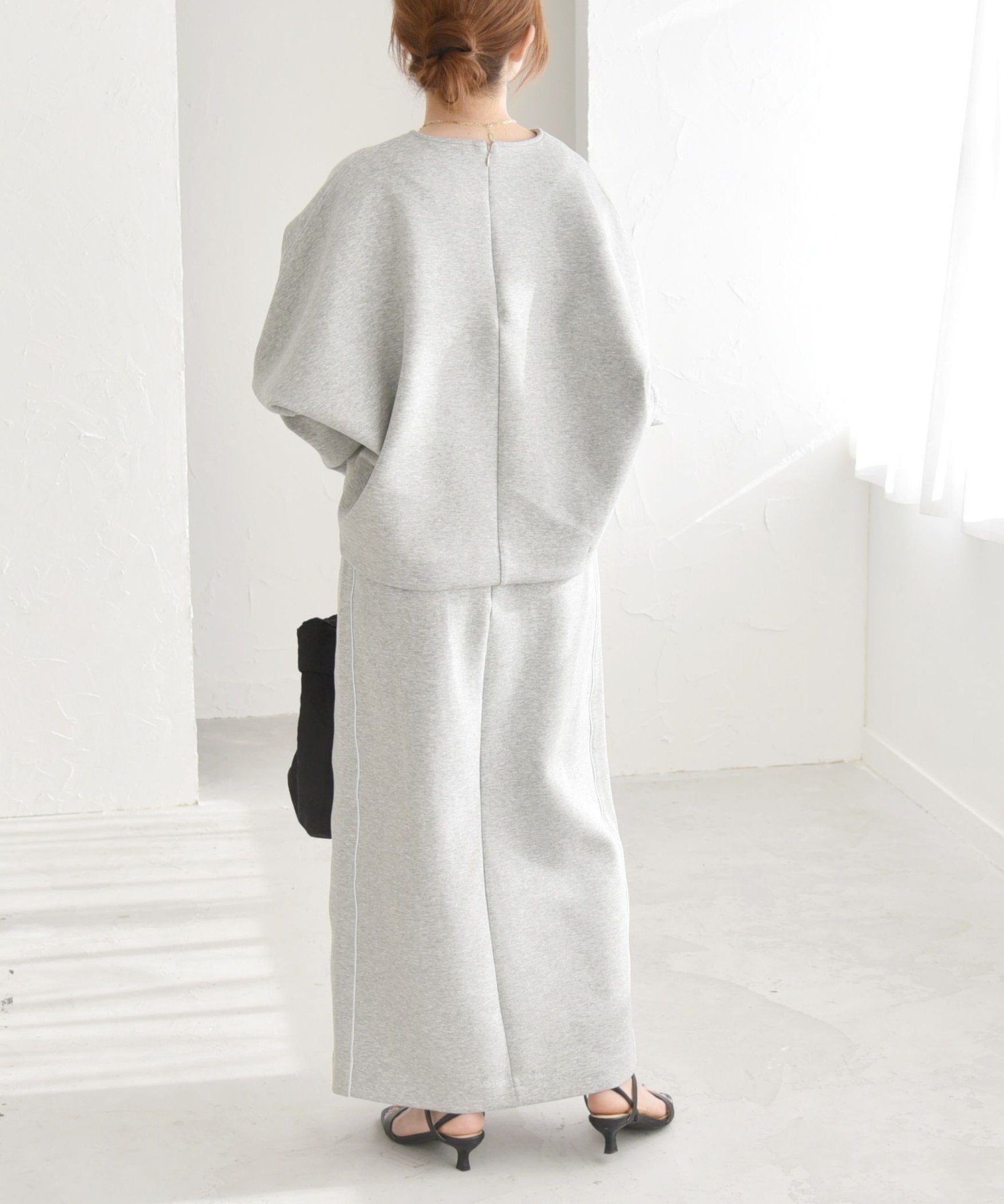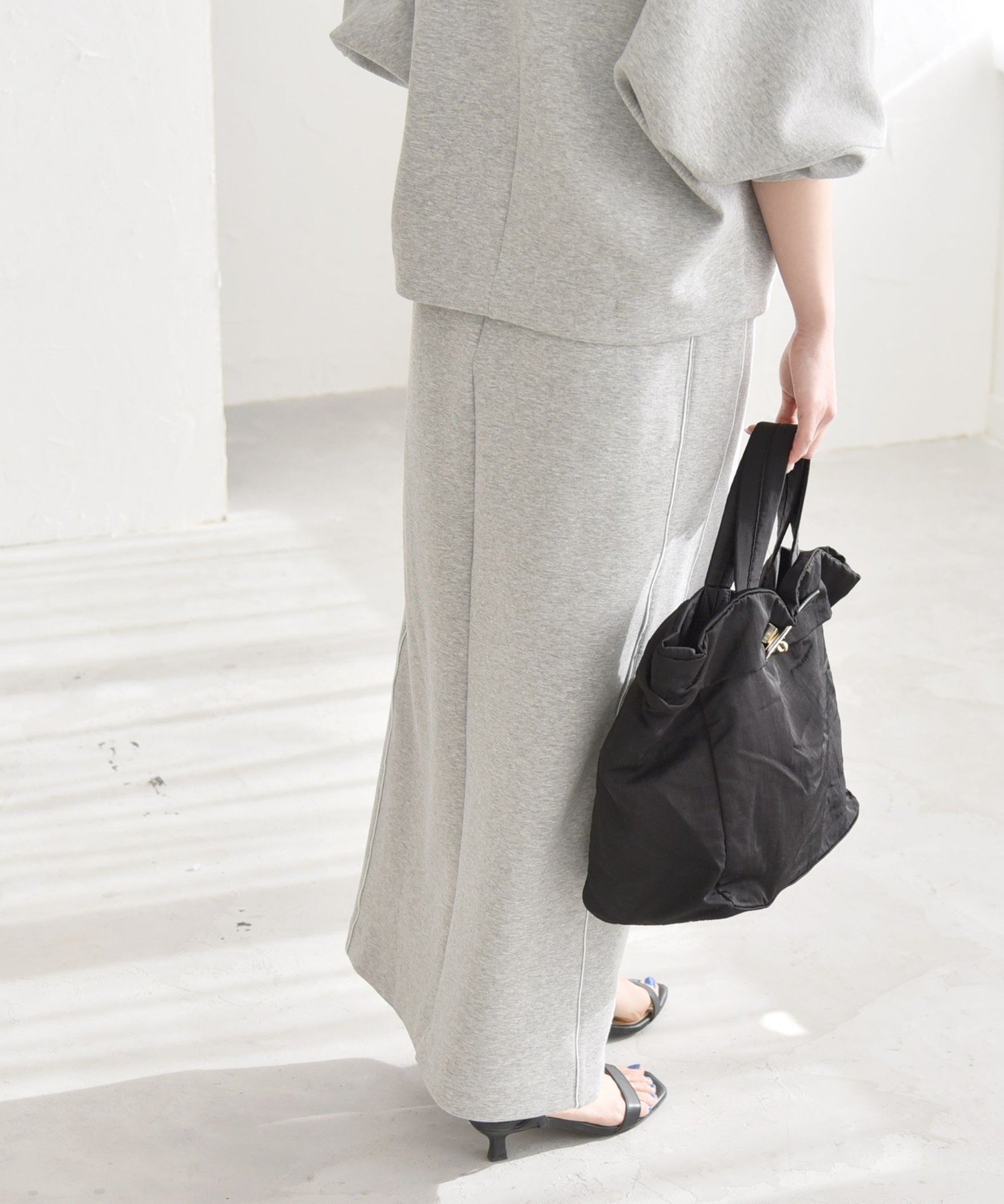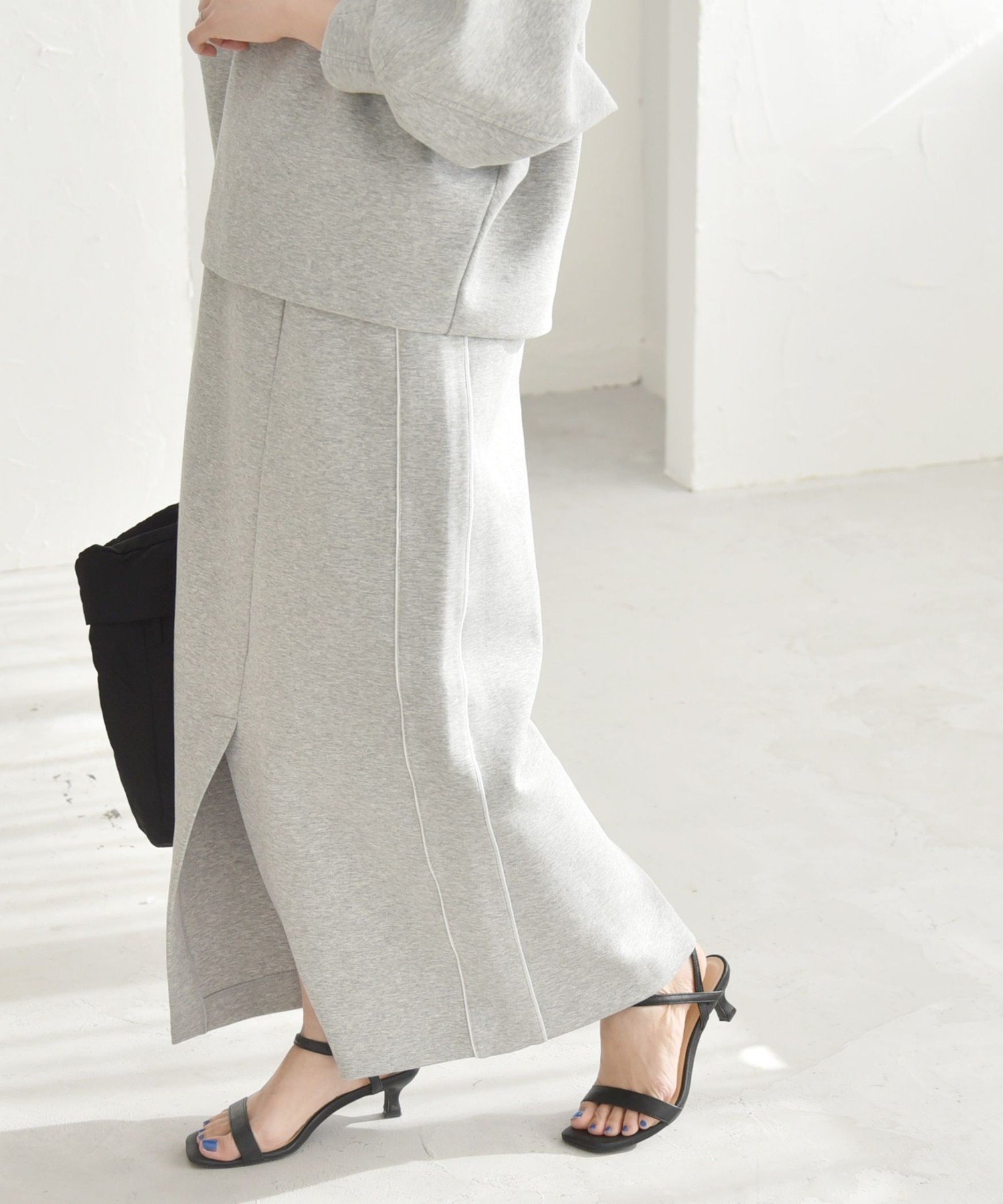 quaranciel quaranciel:<洗濯機可能>ポンチ サイドライン スリット タイト スカート シップス スカート ロング・マキシスカート ネイビー グレー【送料無料】