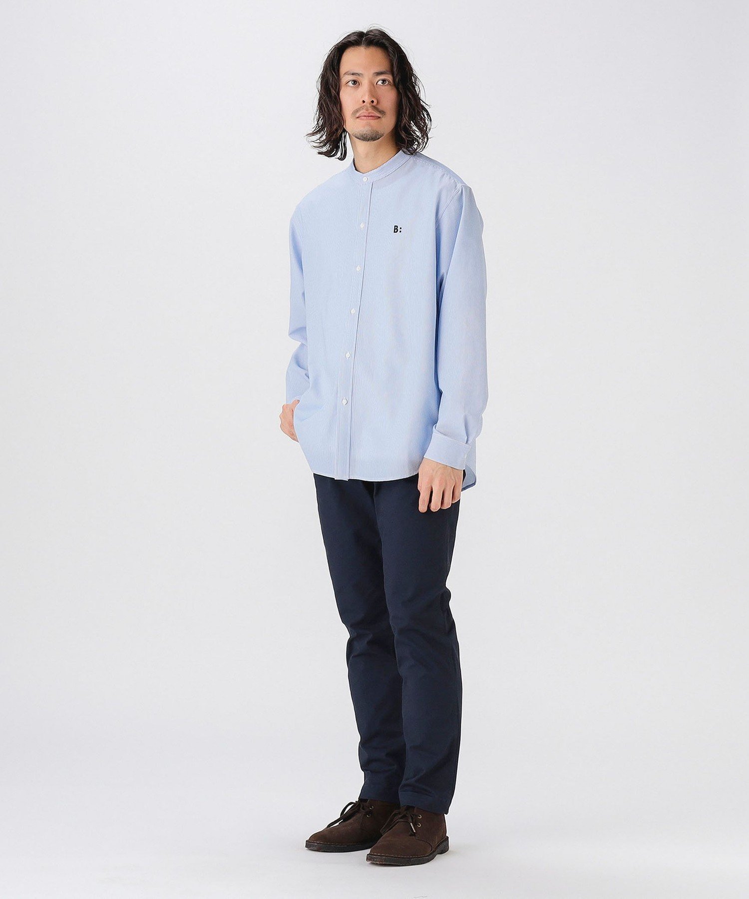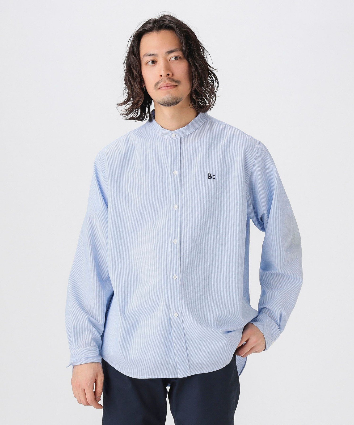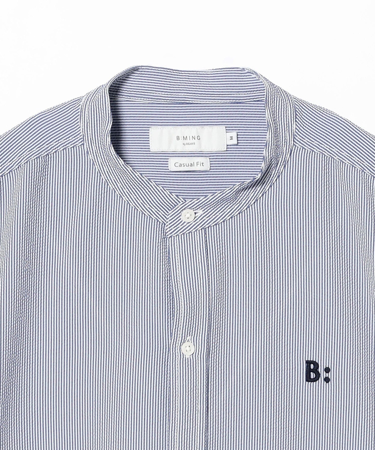 B:MING by BEAMS サッカー バンドカラー シャツ ビーミング ライフストア バイ ビームス トップス シャツ・ブラウス ブルー グレー ネイビー【送料無料】